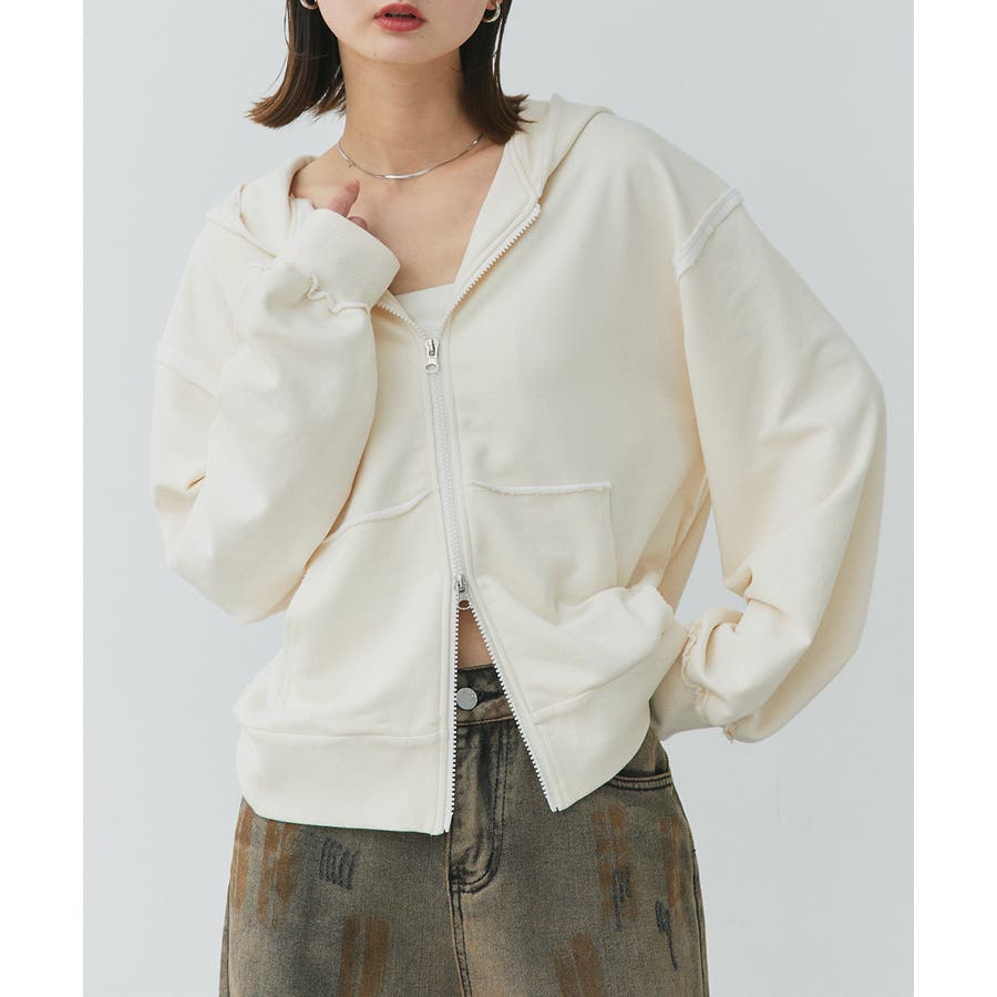 春 春コーデ 春ファッション 春服 夏 夏コーデ 夏ファッション 夏服 カジュアル カジュアルコーデ 大人 大人カジュアル オフィスカジュアル オフィス オフィスファッション オフィススタイル 韓国 韓国ファッション 韓国コーデ プチプラ プチプラファッション レディース Y2K 量産型 キレイめ 綺麗め きれい きちんと 長袖 長袖トップス パーカー トレーナー フーディ ジップパーカー 裏毛 アウトシーム 羽織 羽織り ライトアウター 重ね着 レイヤードコーデ デザイン ゆったり 楽ちん オーバーサイズ 大きめ 部屋着 ダブルジップ ポケット付き 切りっぱなし 加工 アイボリー チャコール ブラック 黒