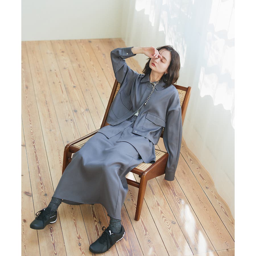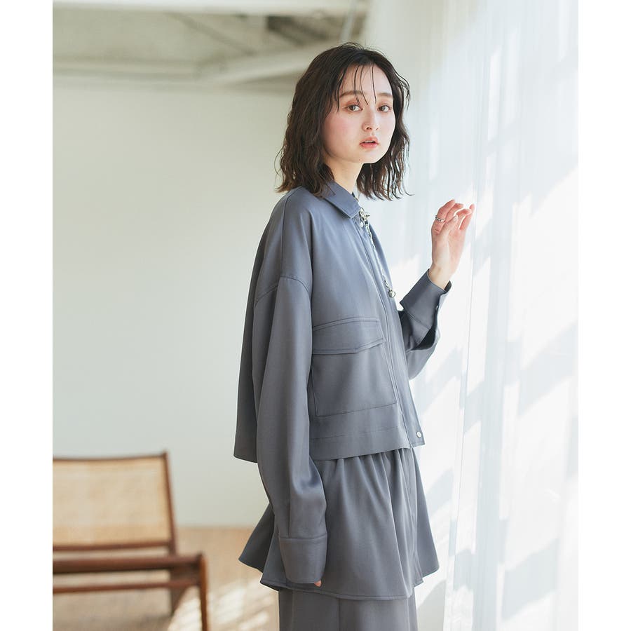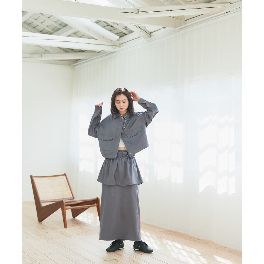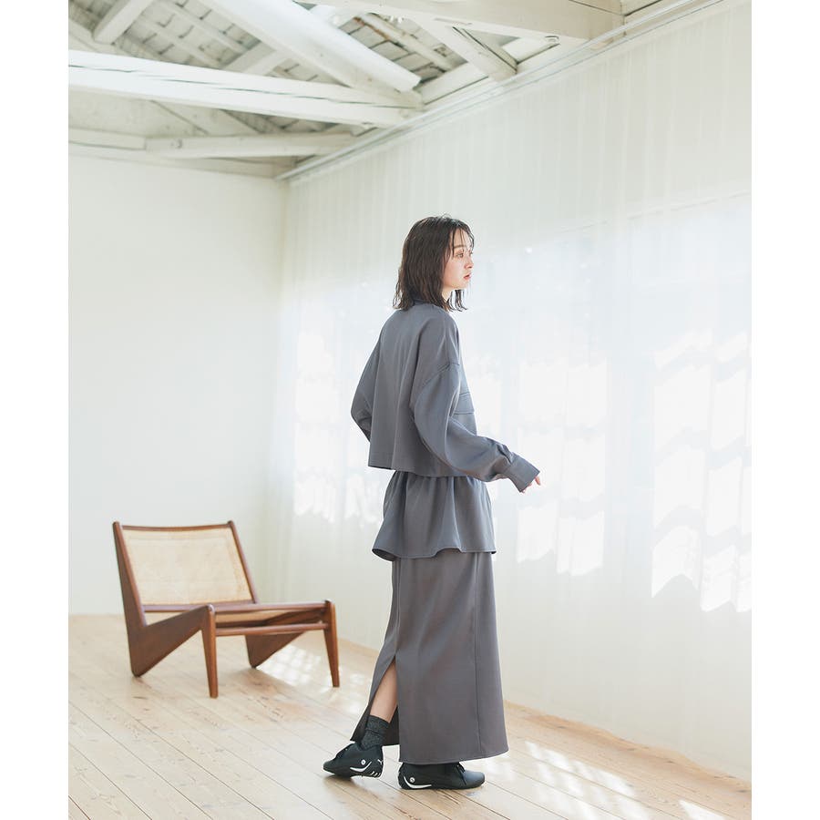 同生地のスカートと合わせてセットアップスタイルを楽しむのも◎