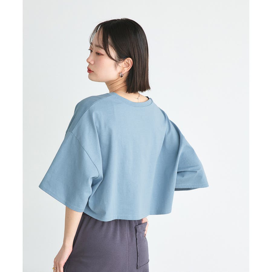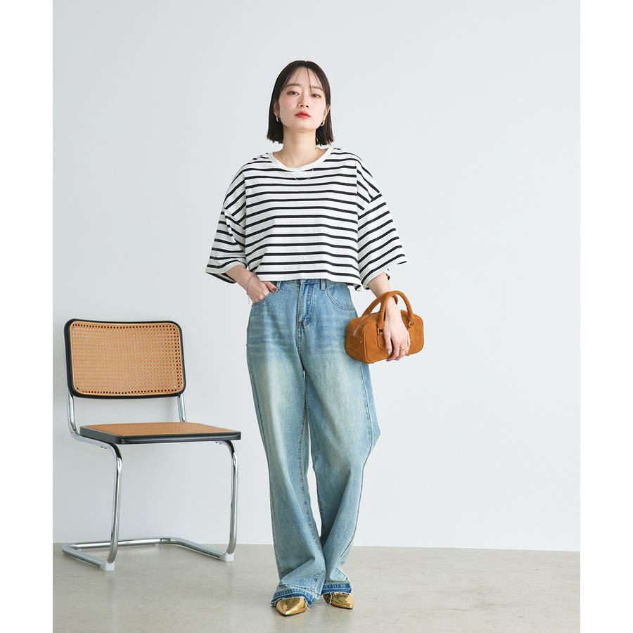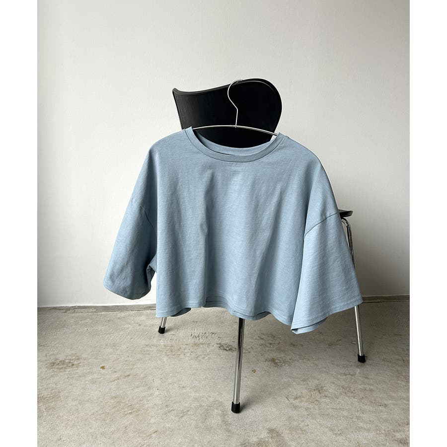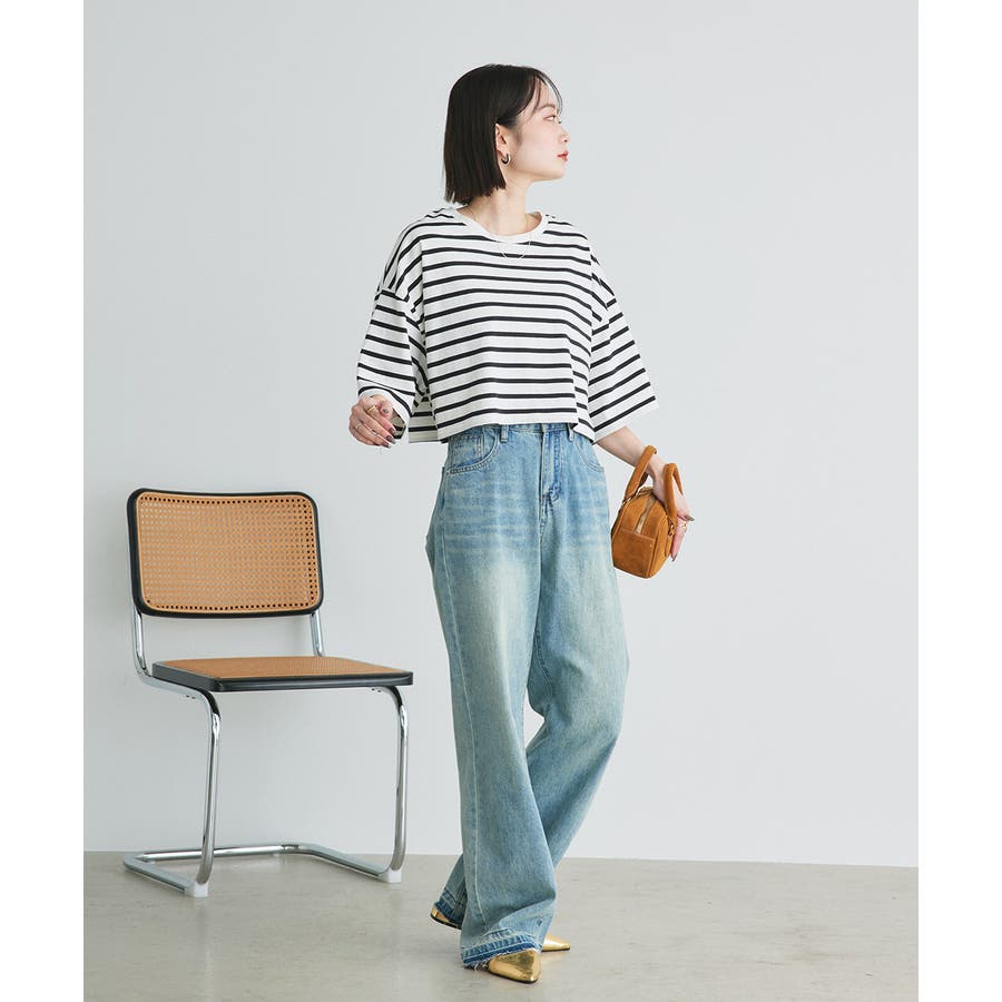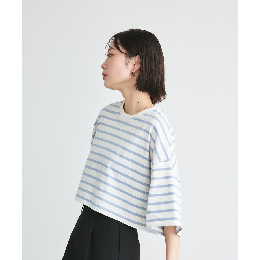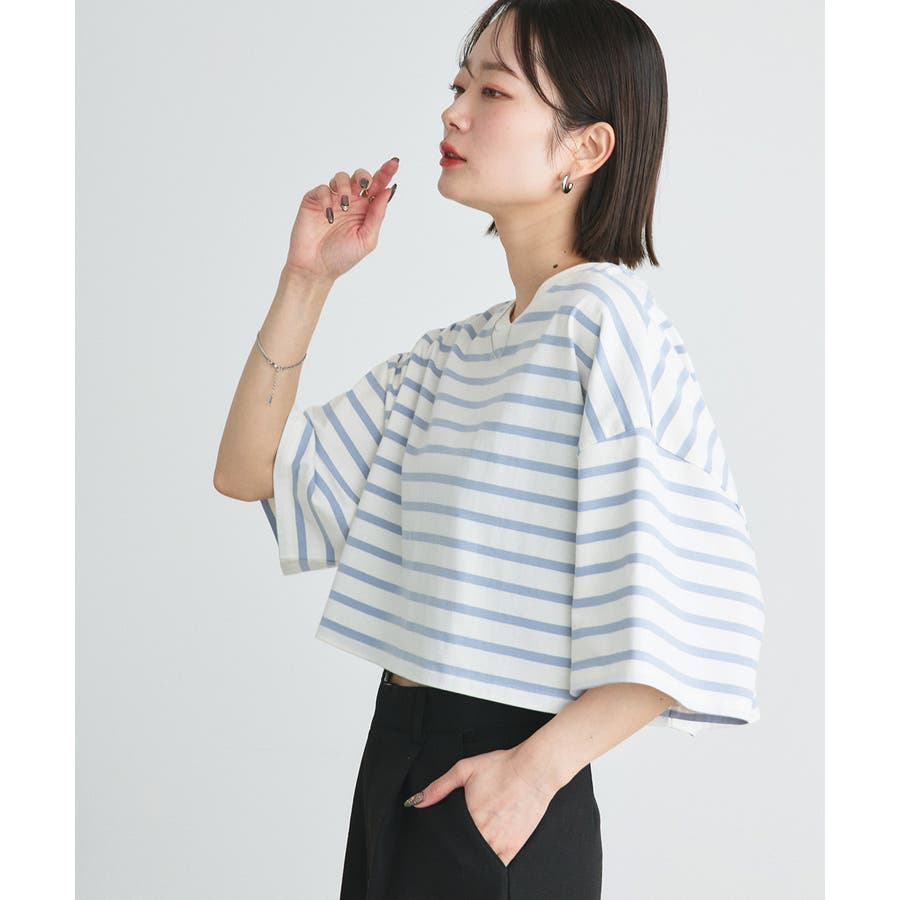 【ボーダー×ライトブルー】ベーシックショート丈Tシャツ