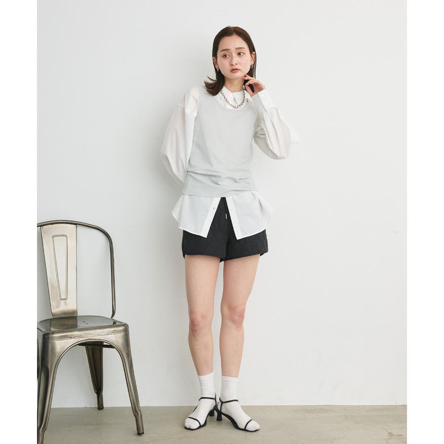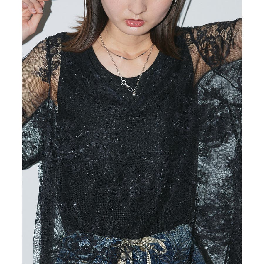 キャミワンピースにインナー使いすれば、ラメ感がポイントになりトレンドライクに仕上がります。