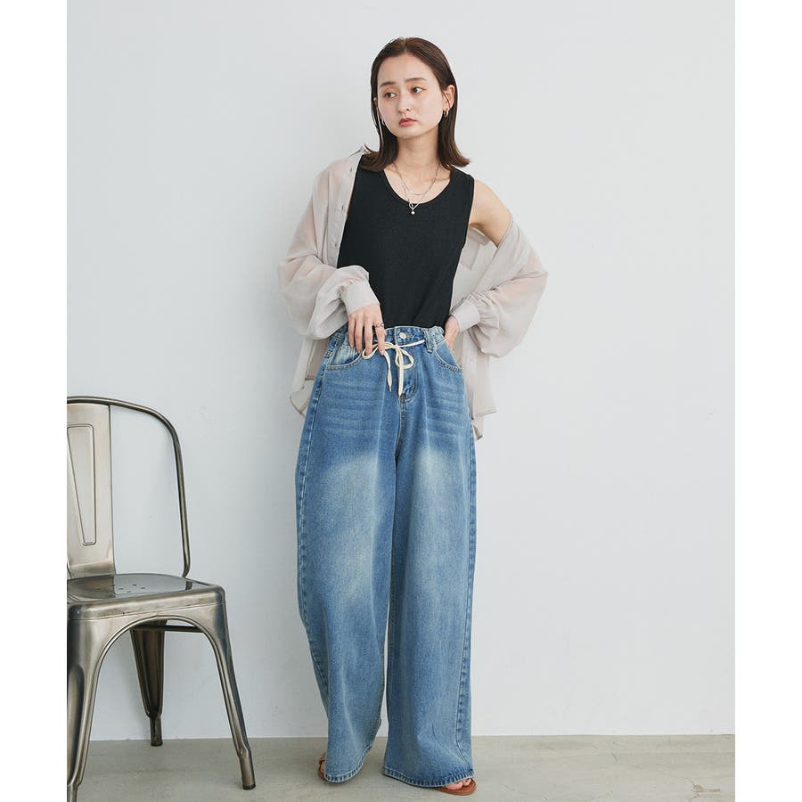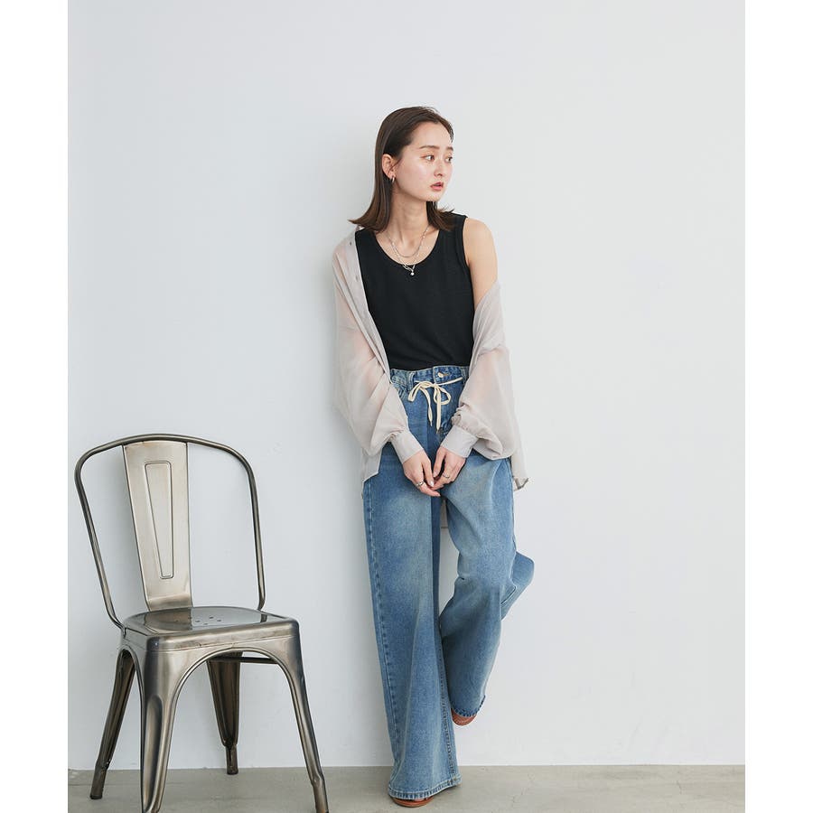 夏は1枚着としてデニムに合わせればヘルシーな着こなしが完成。