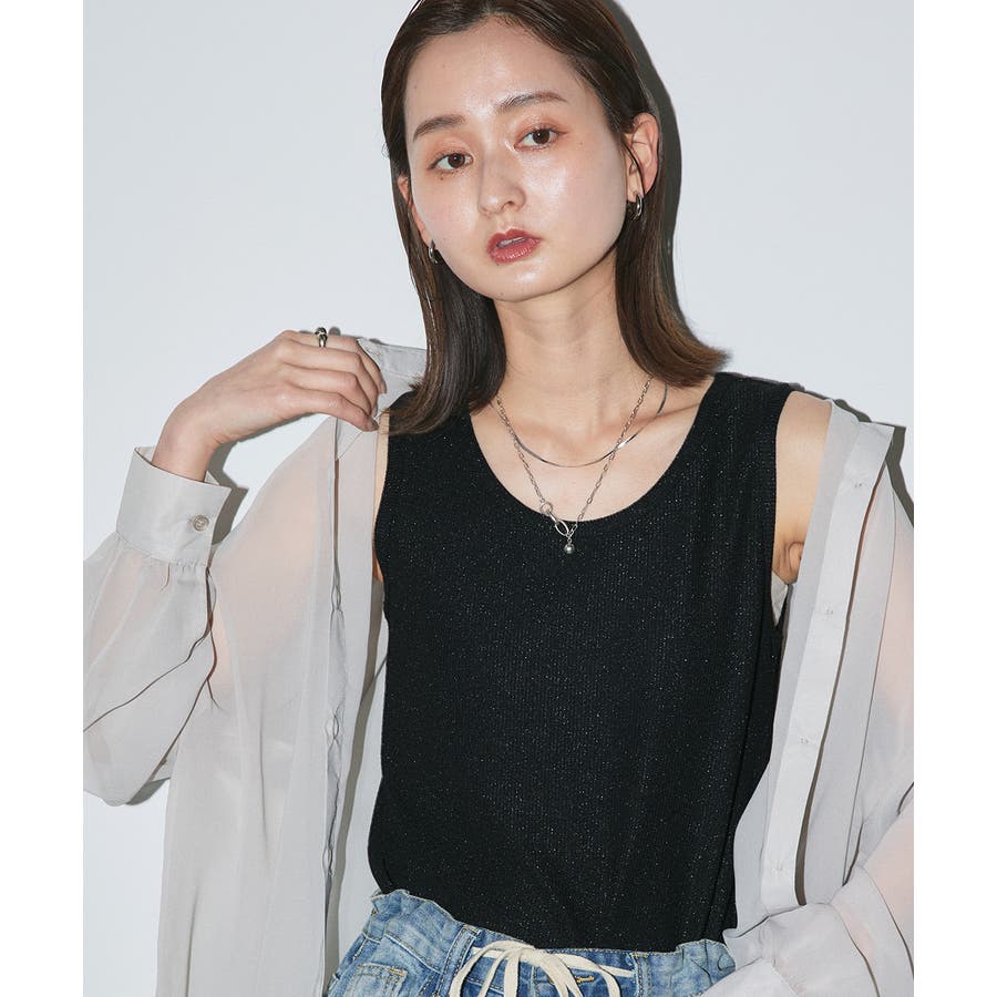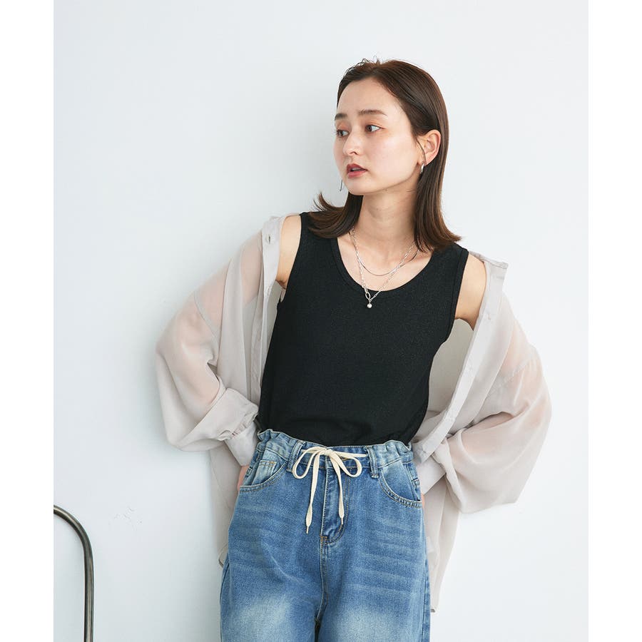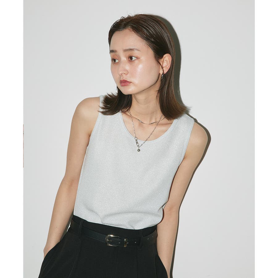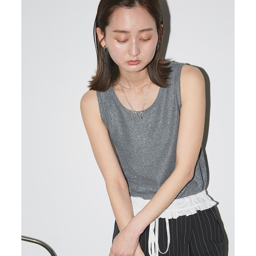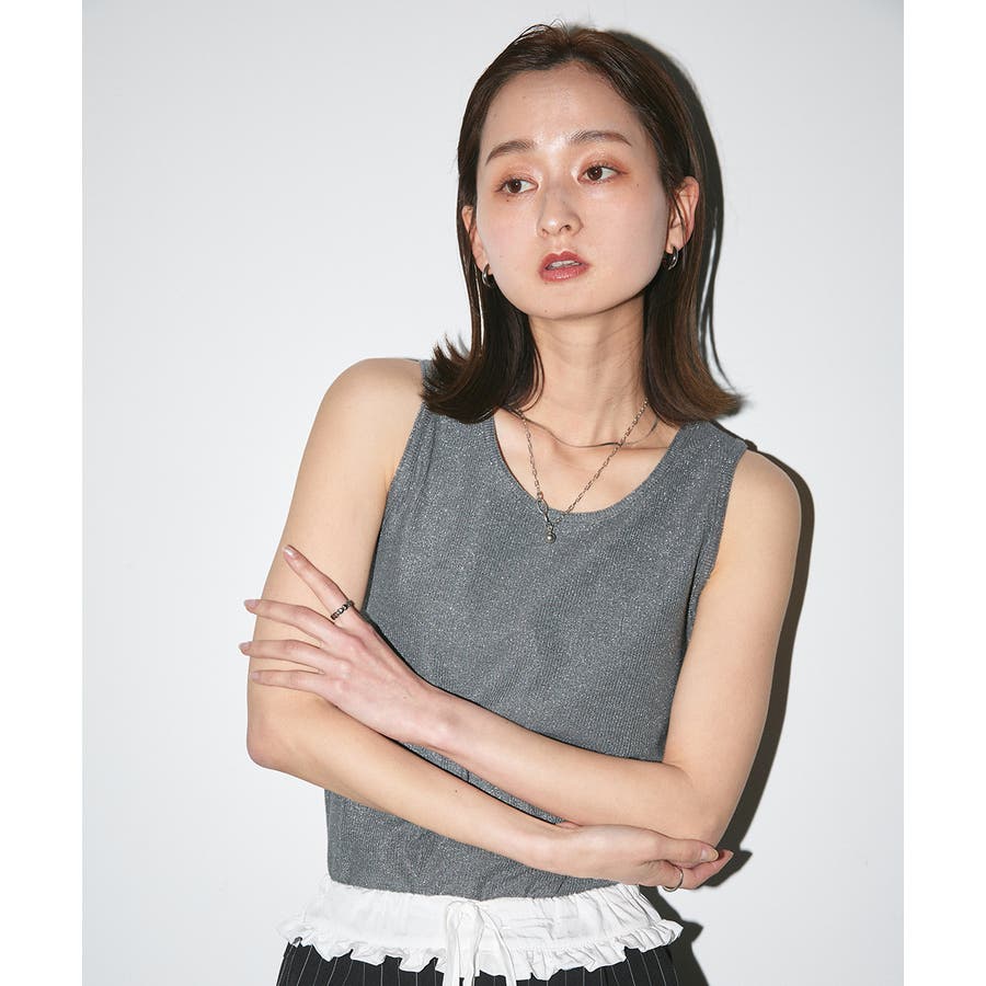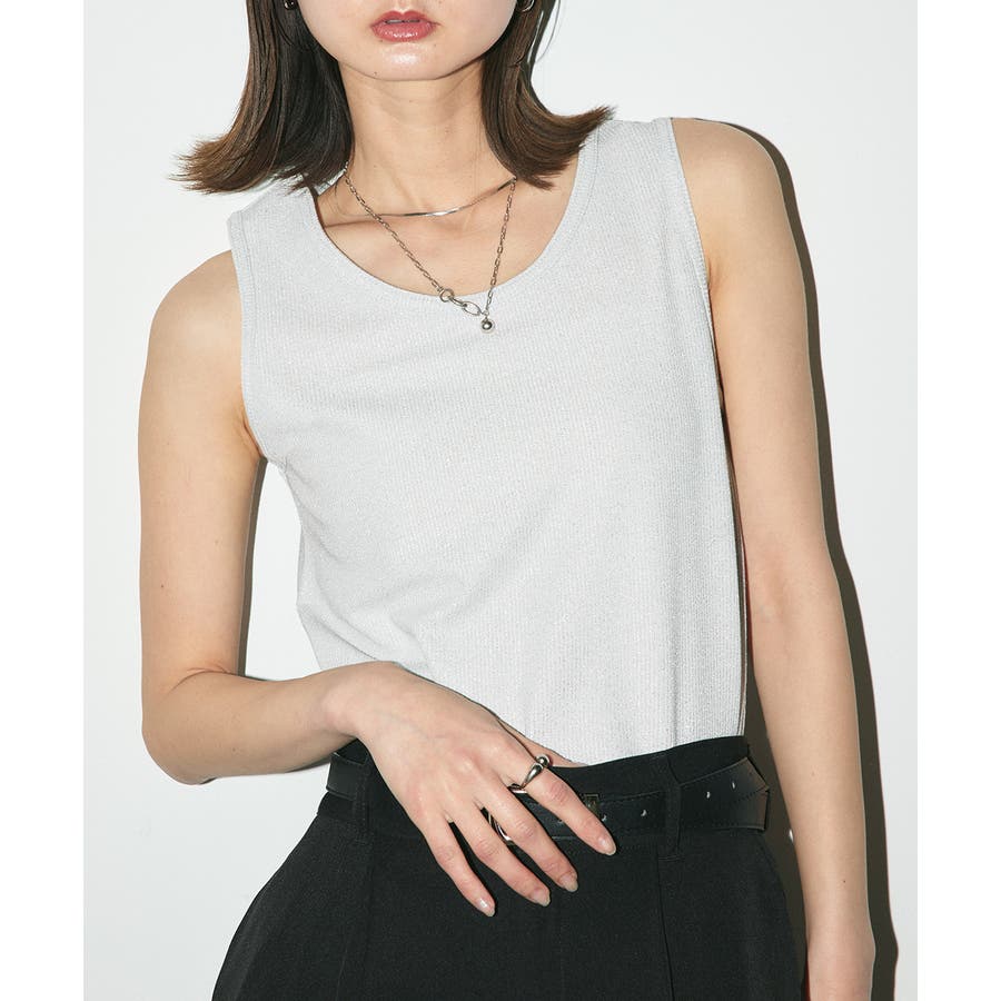 ラメを編み込んだリブ素材のタンクトップで新鮮なコーデが楽しめます。