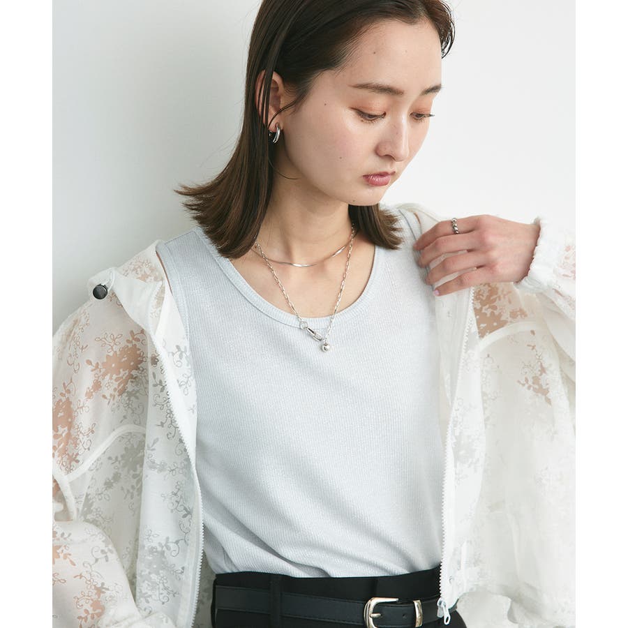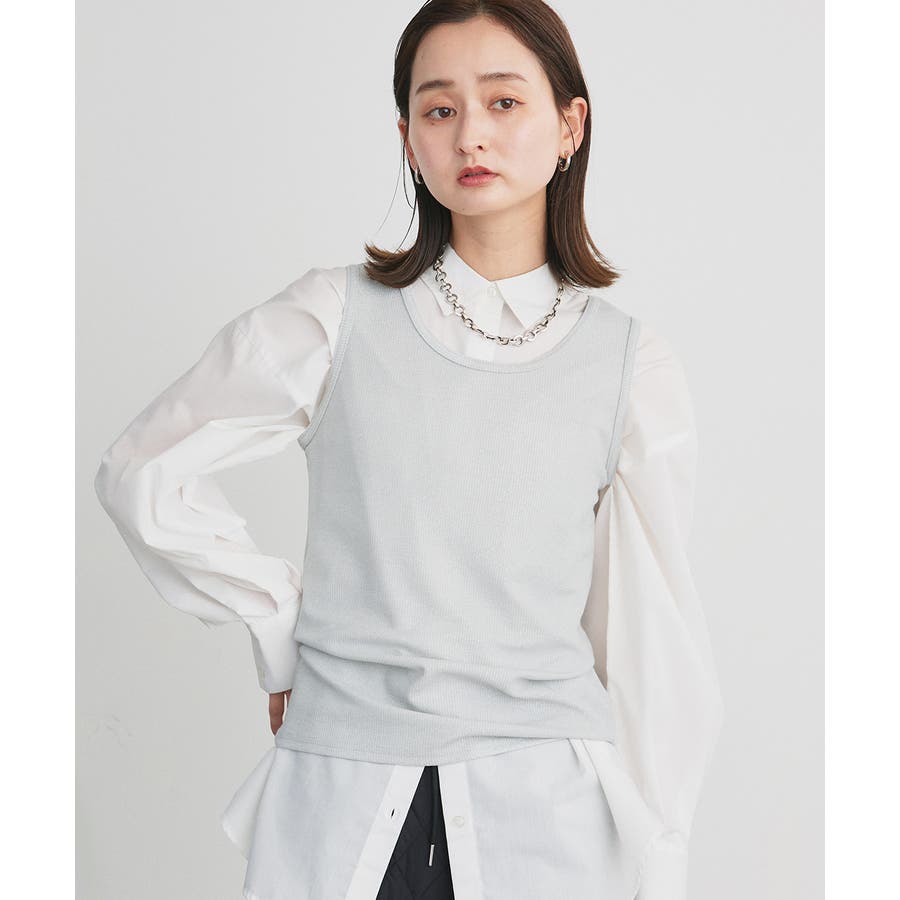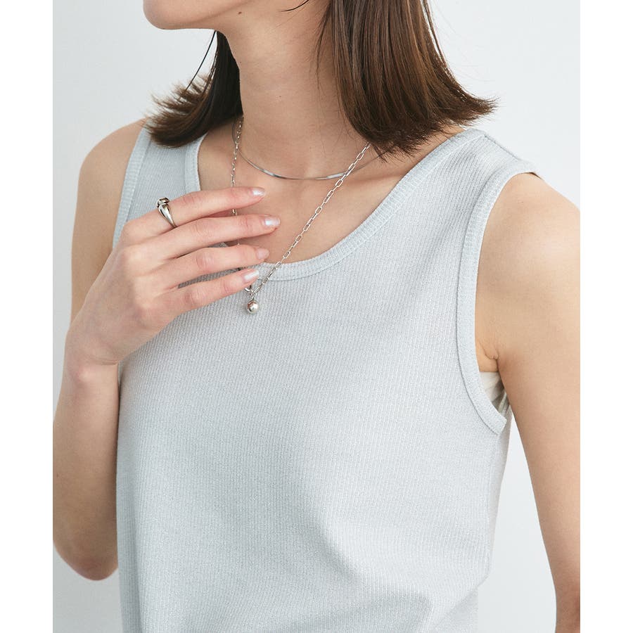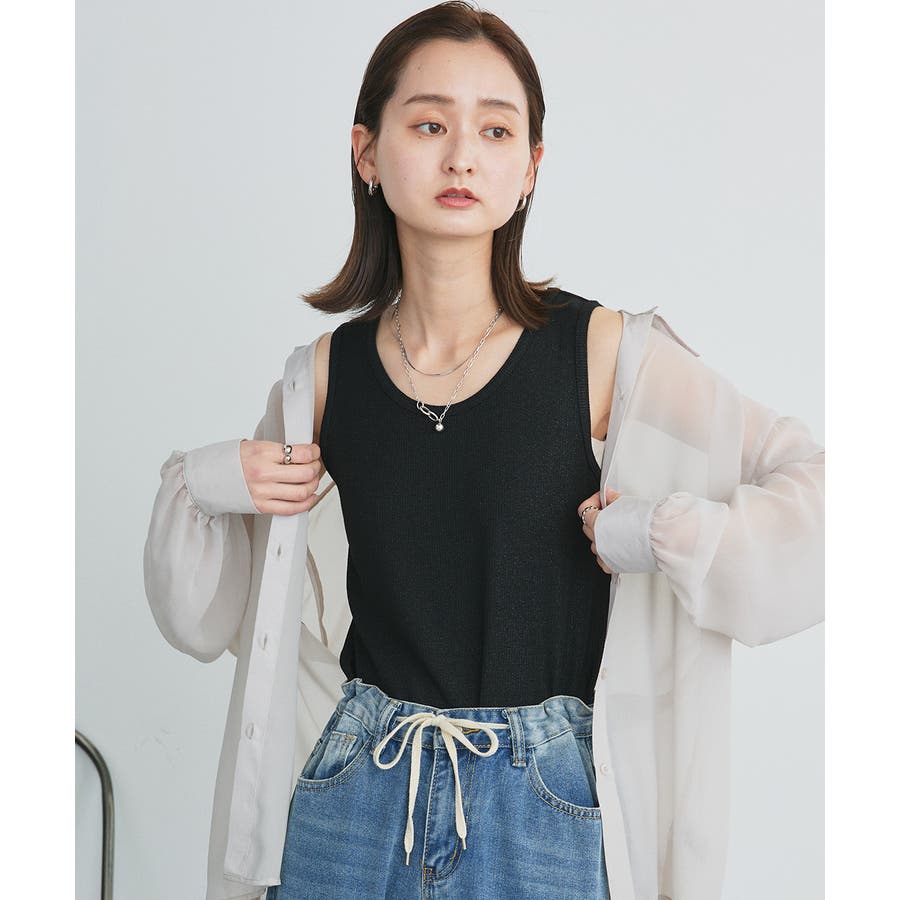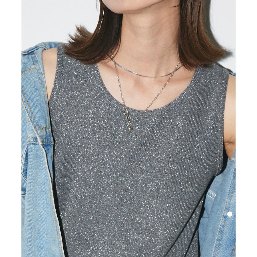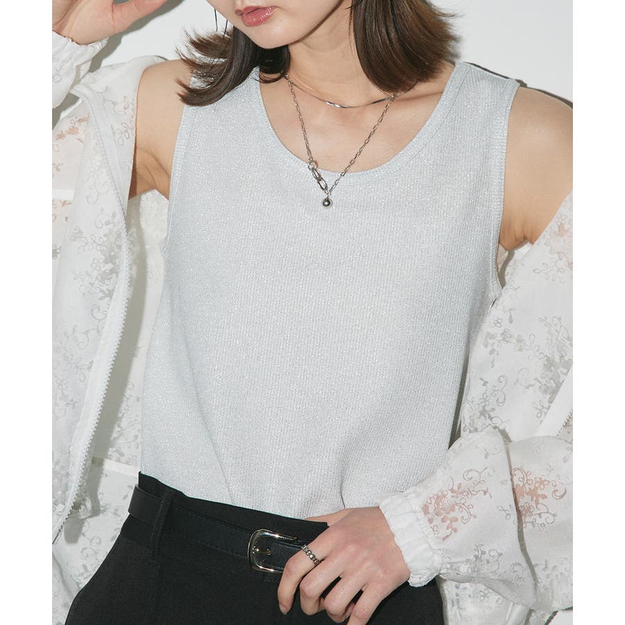 ラメを編み込んだリブ素材のタンクトップで新鮮なコーデが楽しめます。