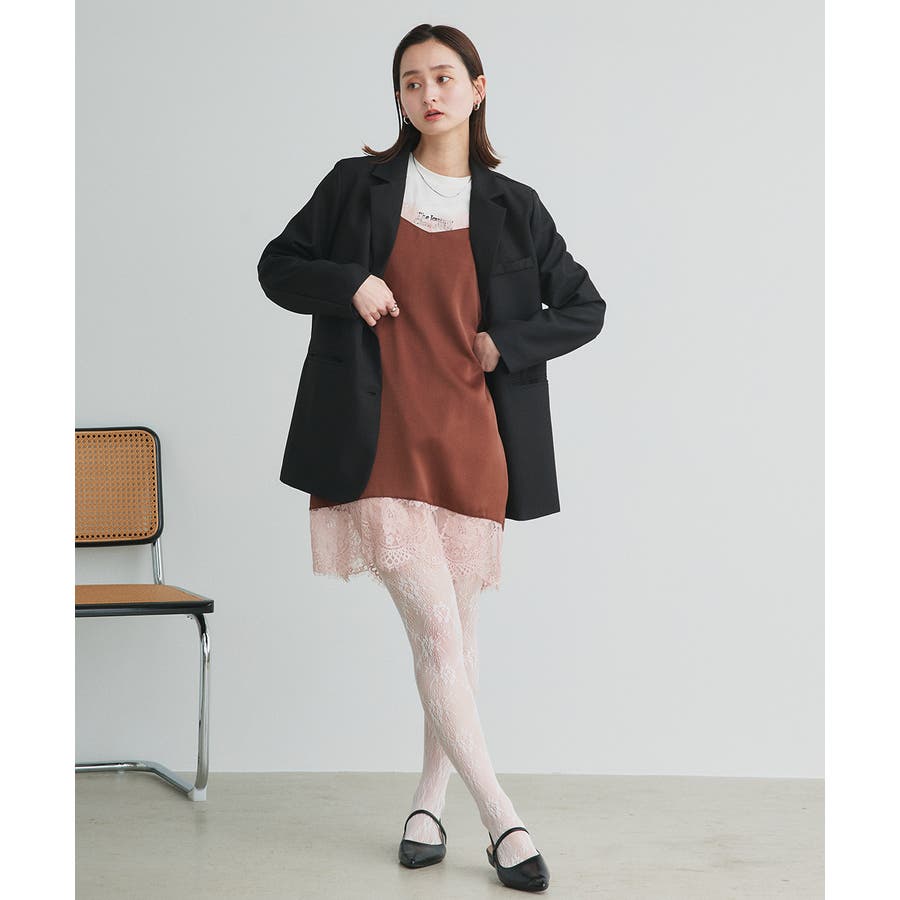 キャミワンピースやベストを重ねてもロゴがチラっと見えてアクセントに。