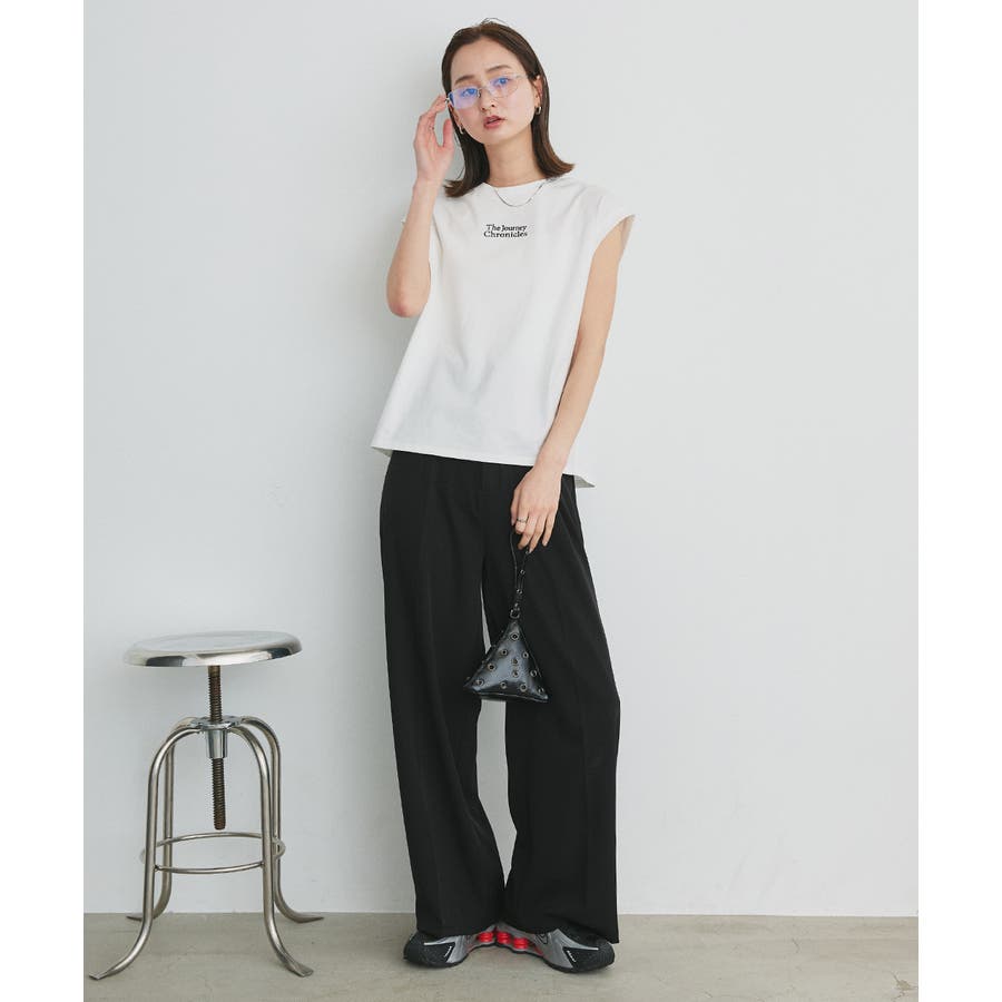 ミニマルな刺繍ロゴはコーデに取り入れやすく、抜け感のあるスタイリングに。