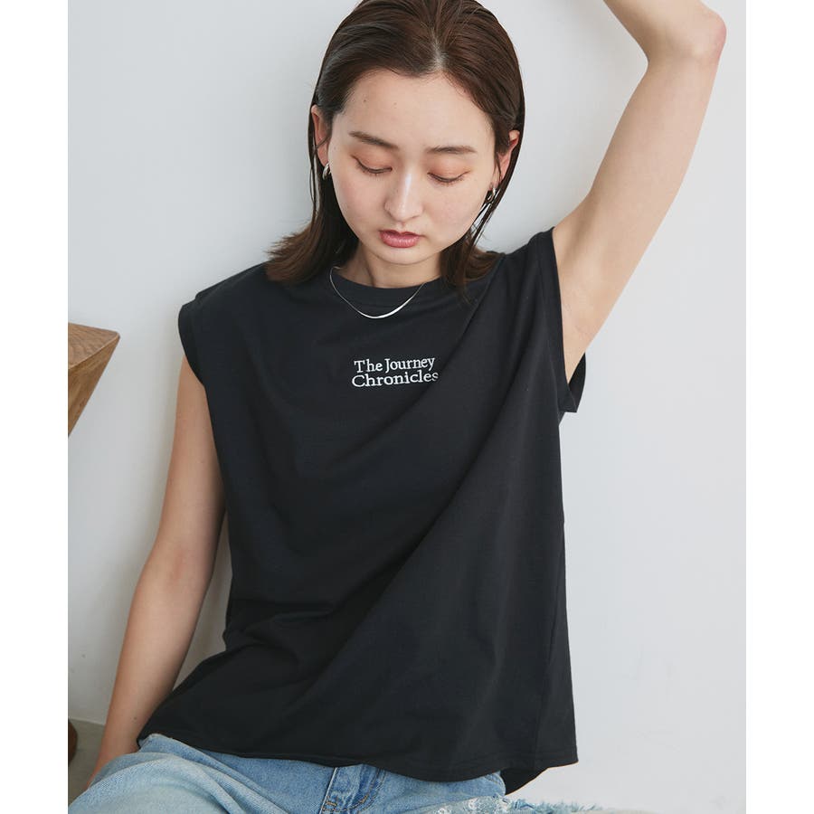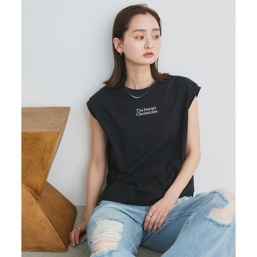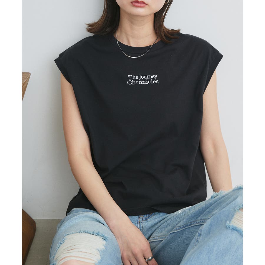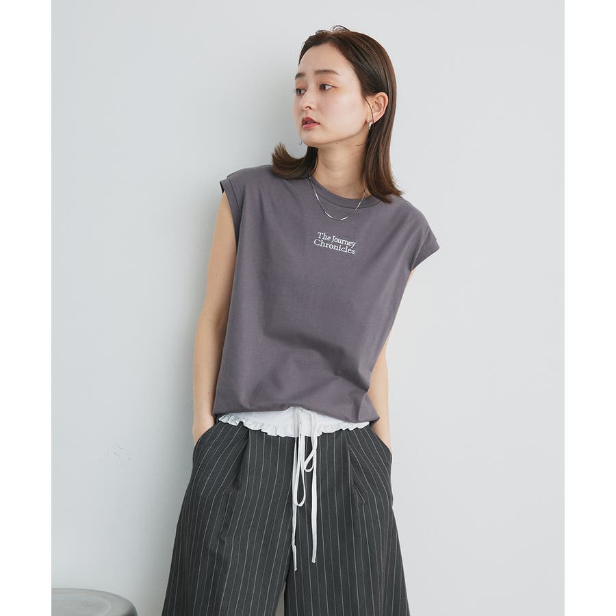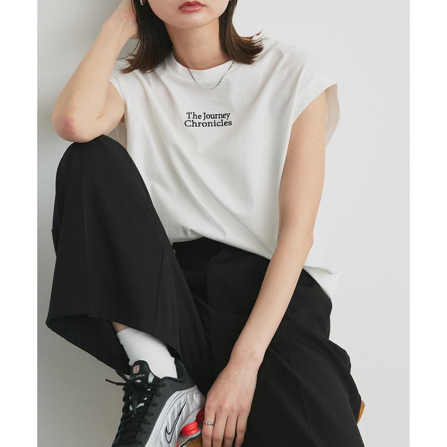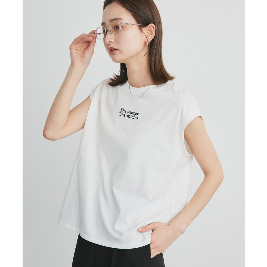 大人女性が着たい綺麗めフレンチスリーブロゴT