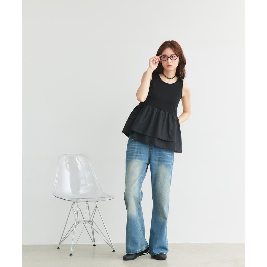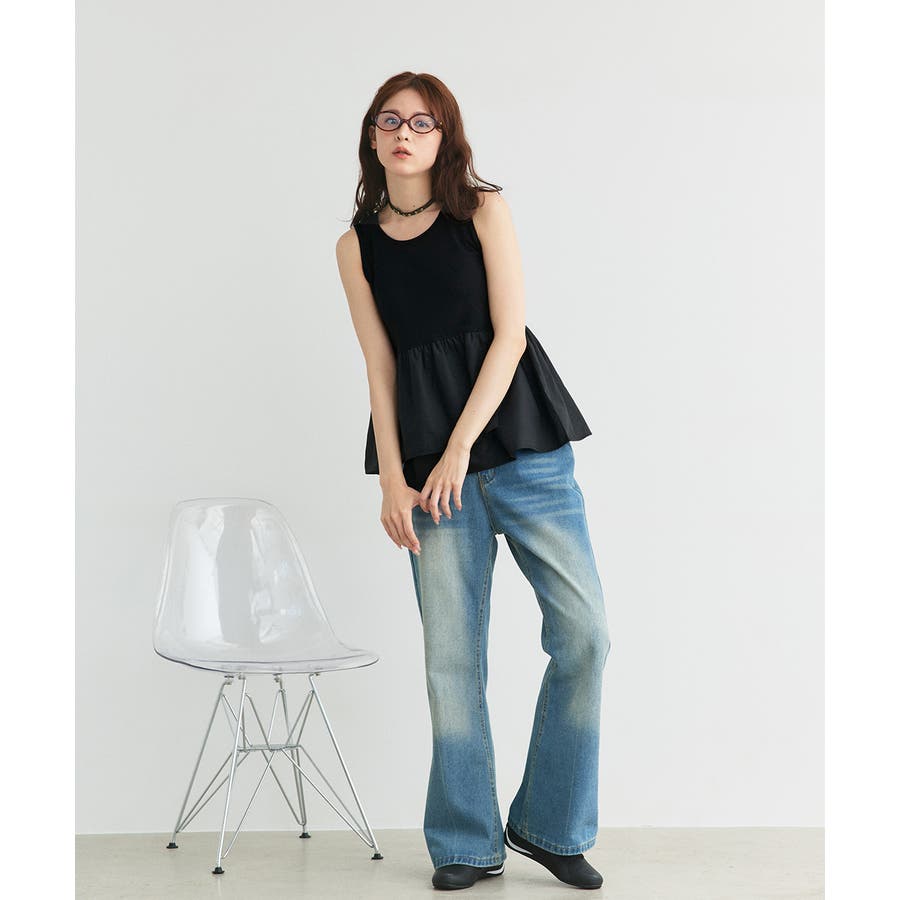 デニムパンツと合わせて、バランスの良い甘カジュアルスタイルもおススメ。