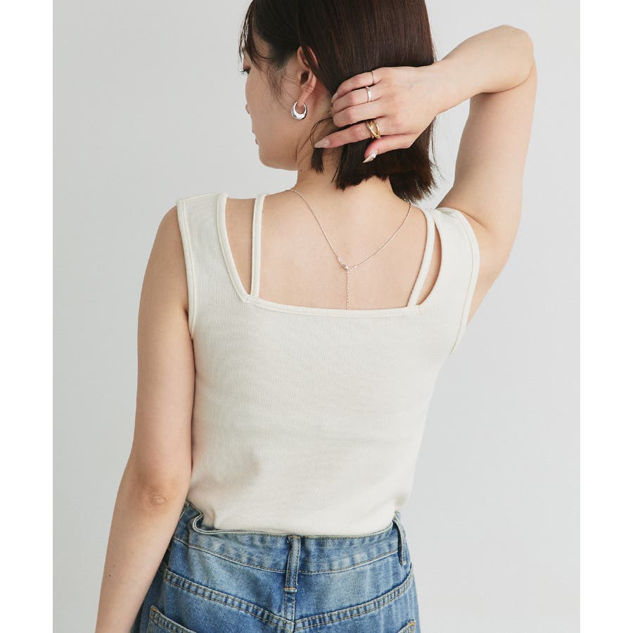 前後着用可能なホルターネック×スクエアネックタンクトップです。