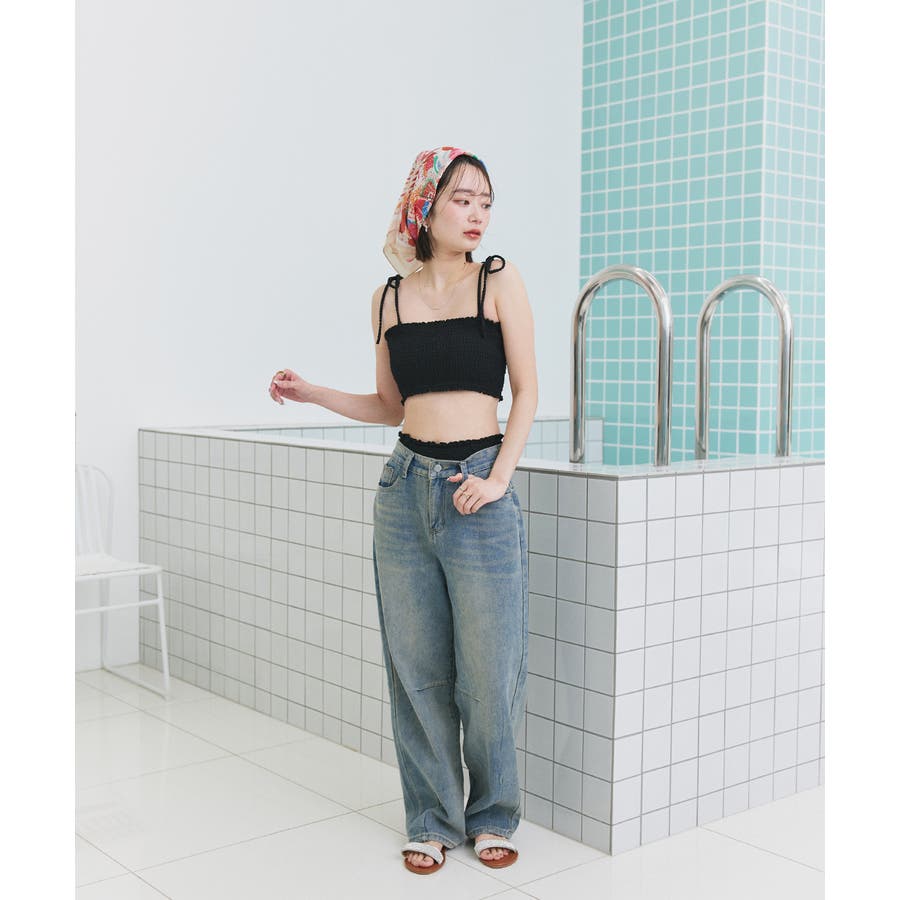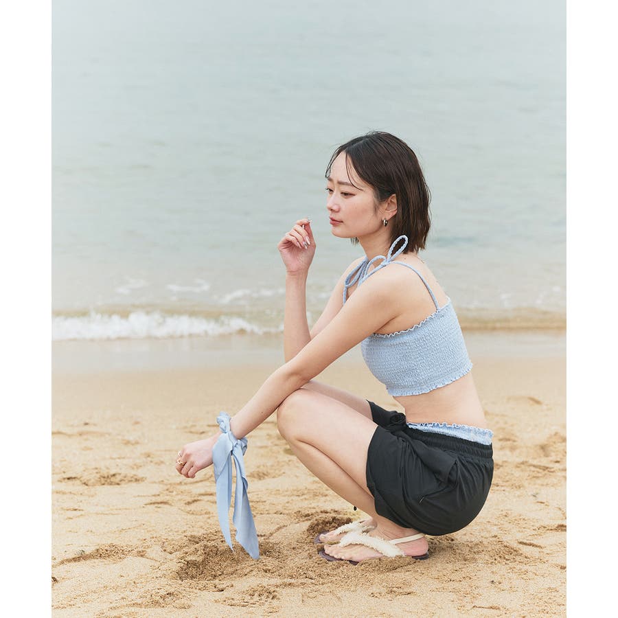 シャーリングリボンキャミソール スイムウェア