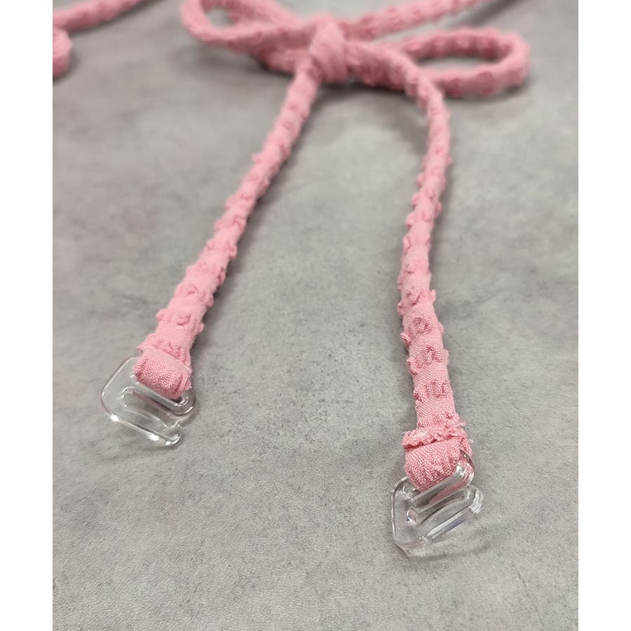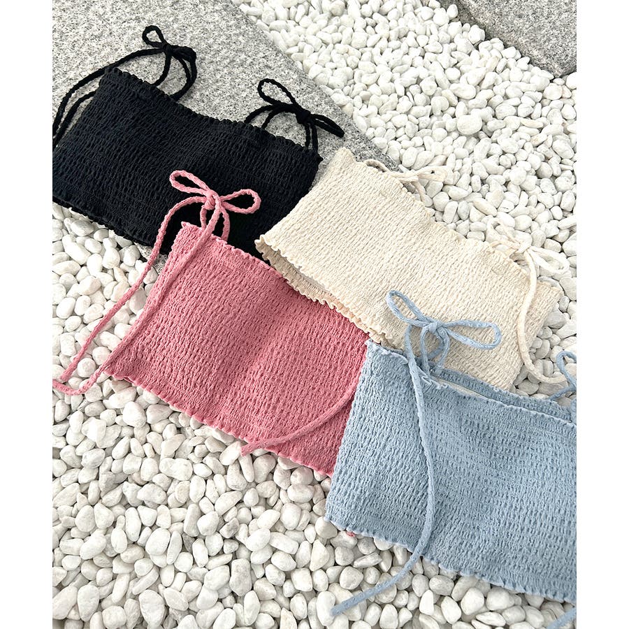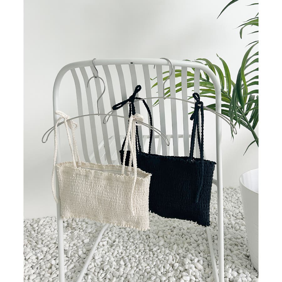 表面感のあるシャーリングとリボンストラップがちょっとしたアクセントに。