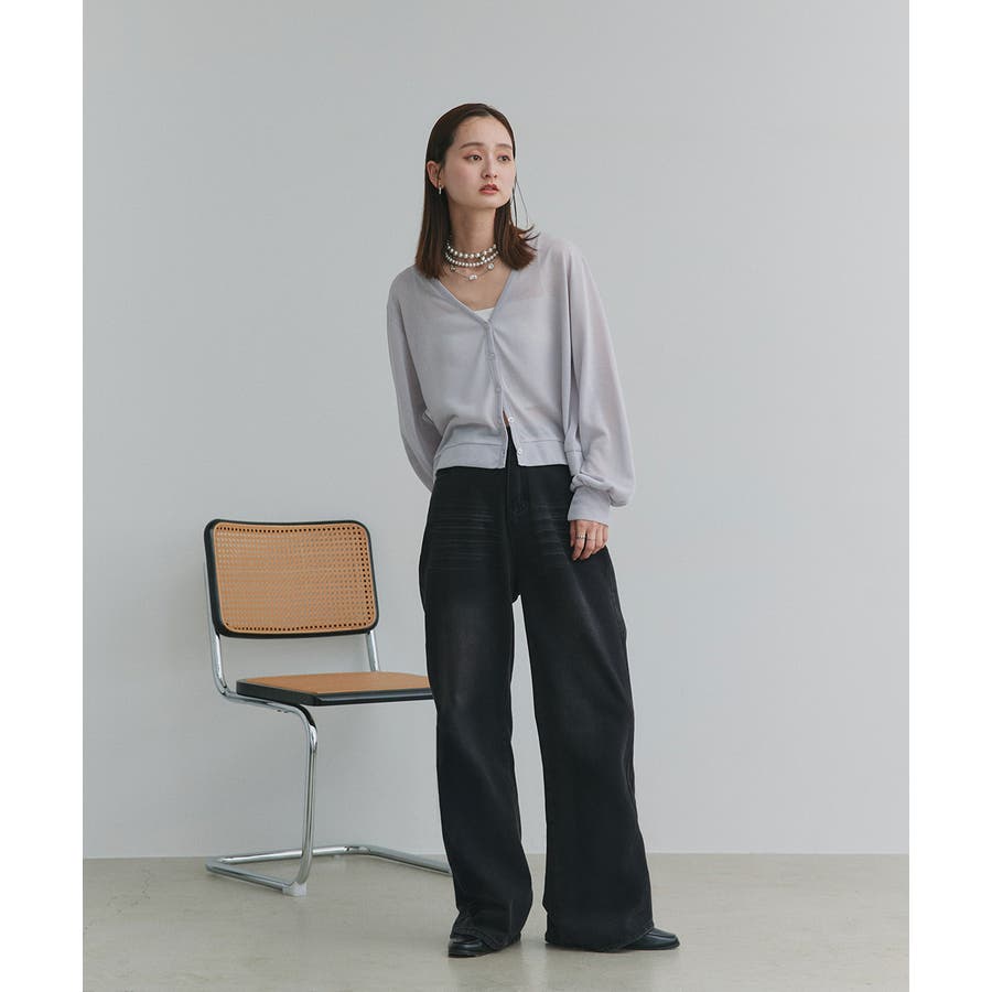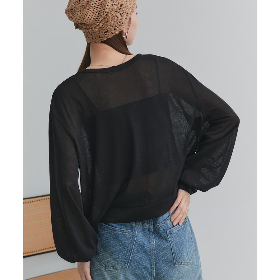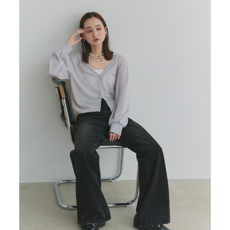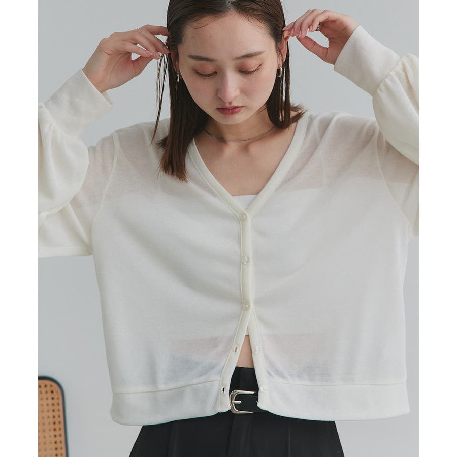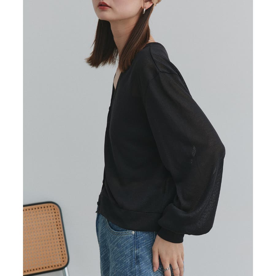 袖ボリュームVネックシアーカーディガン
