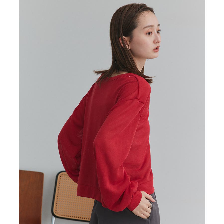 深めのVネックは顔周りをスッキリと見せてくれる効果も。