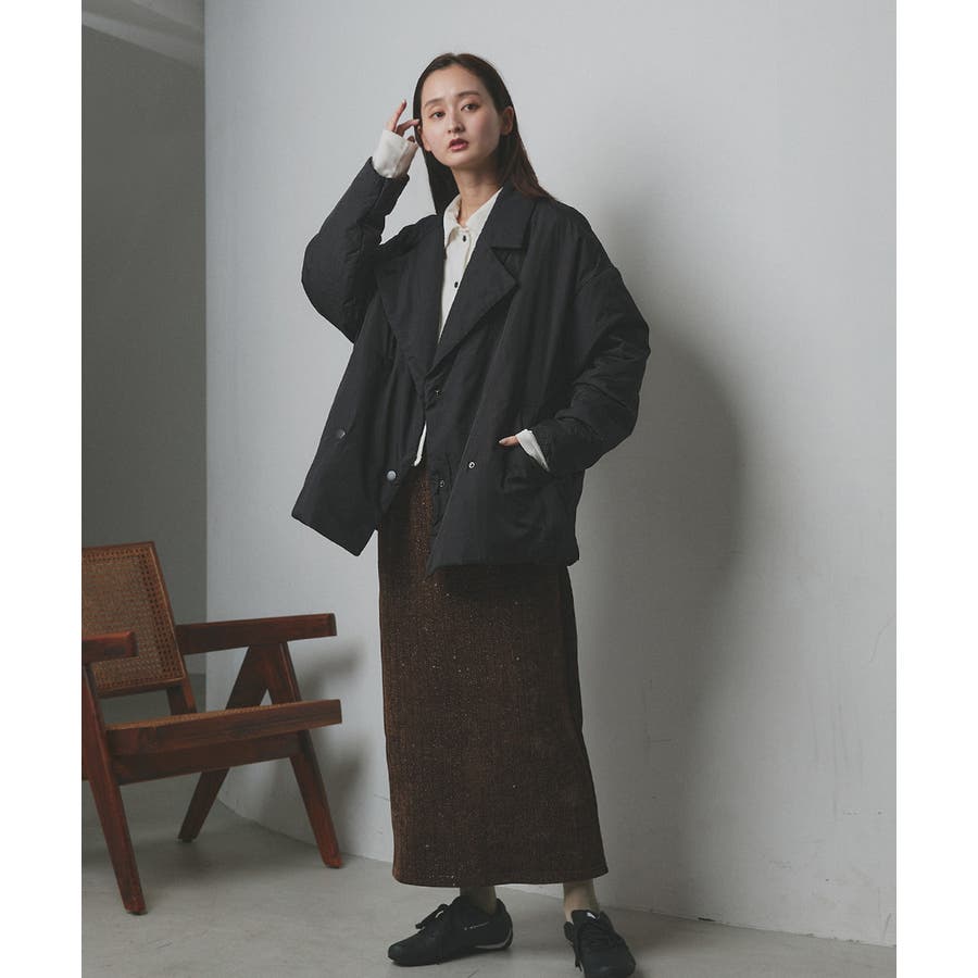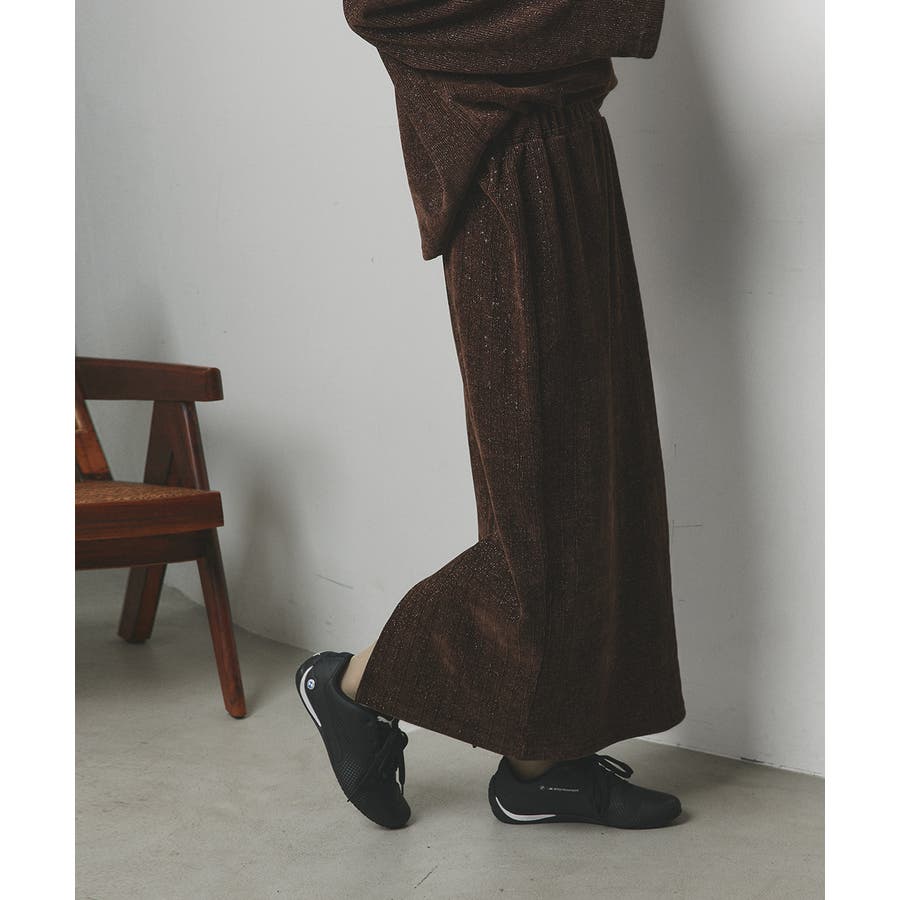 同素材のトップスを合わせてセットアップで着こなすのもおススメ。