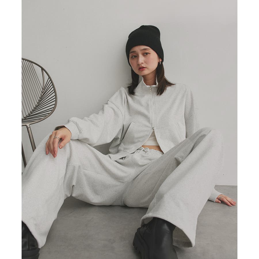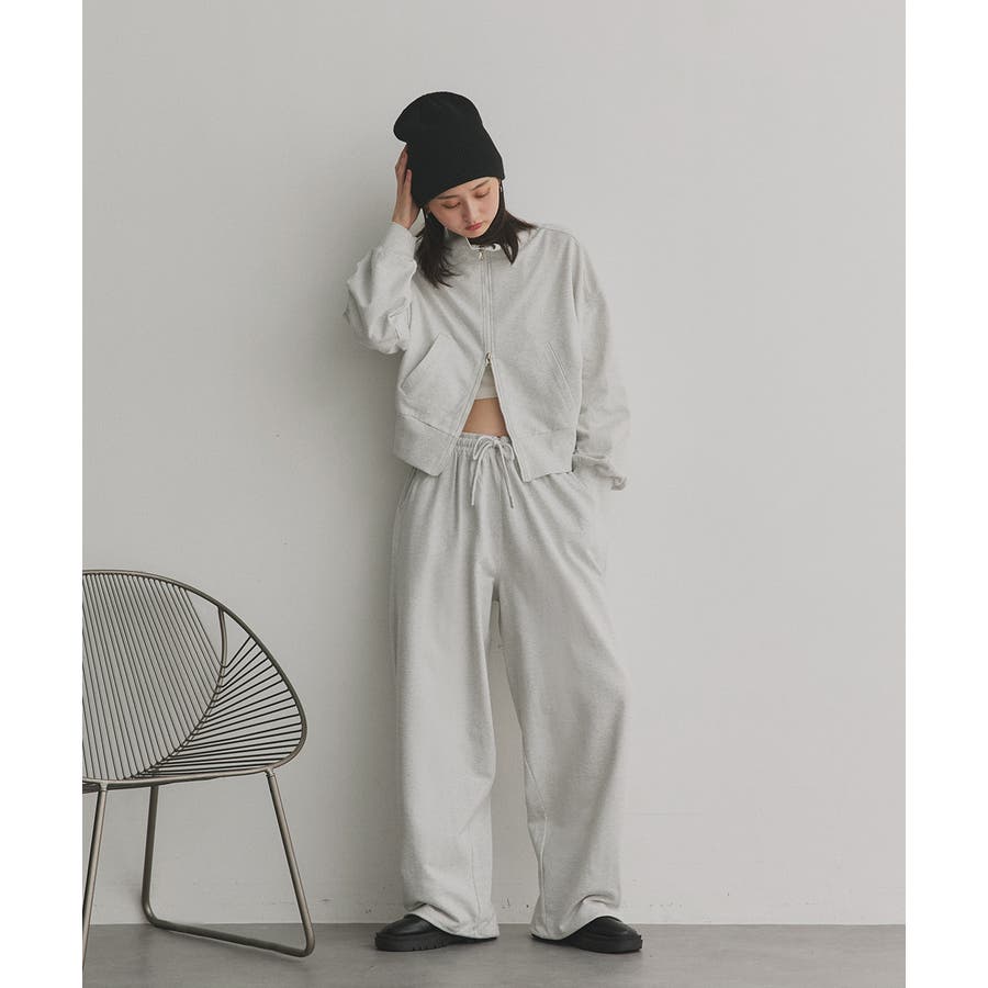 同素材シリーズのトップスとセットアップスタイルで着こなすのもおススメです。