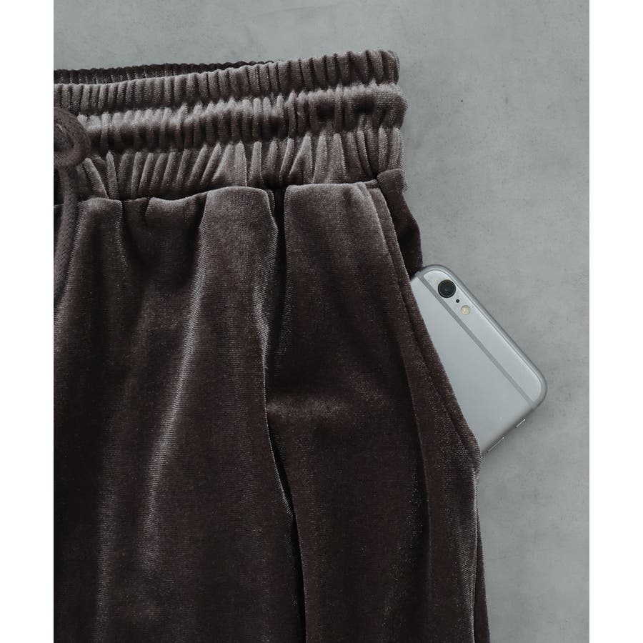 ベロアの生地も安っぽくなくて、履き心地もいいです。合わせるトップスによってはちょっとパジャマっぽさも出るかもですが、可愛いです。