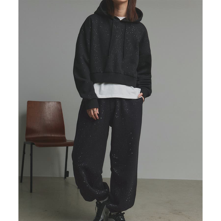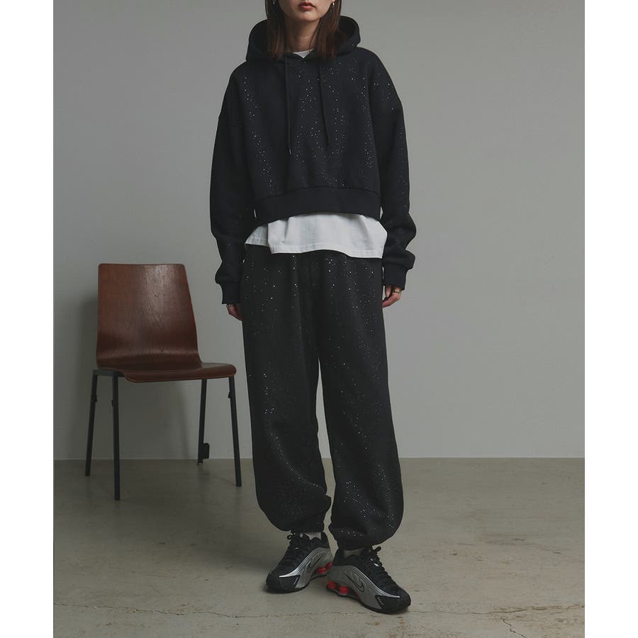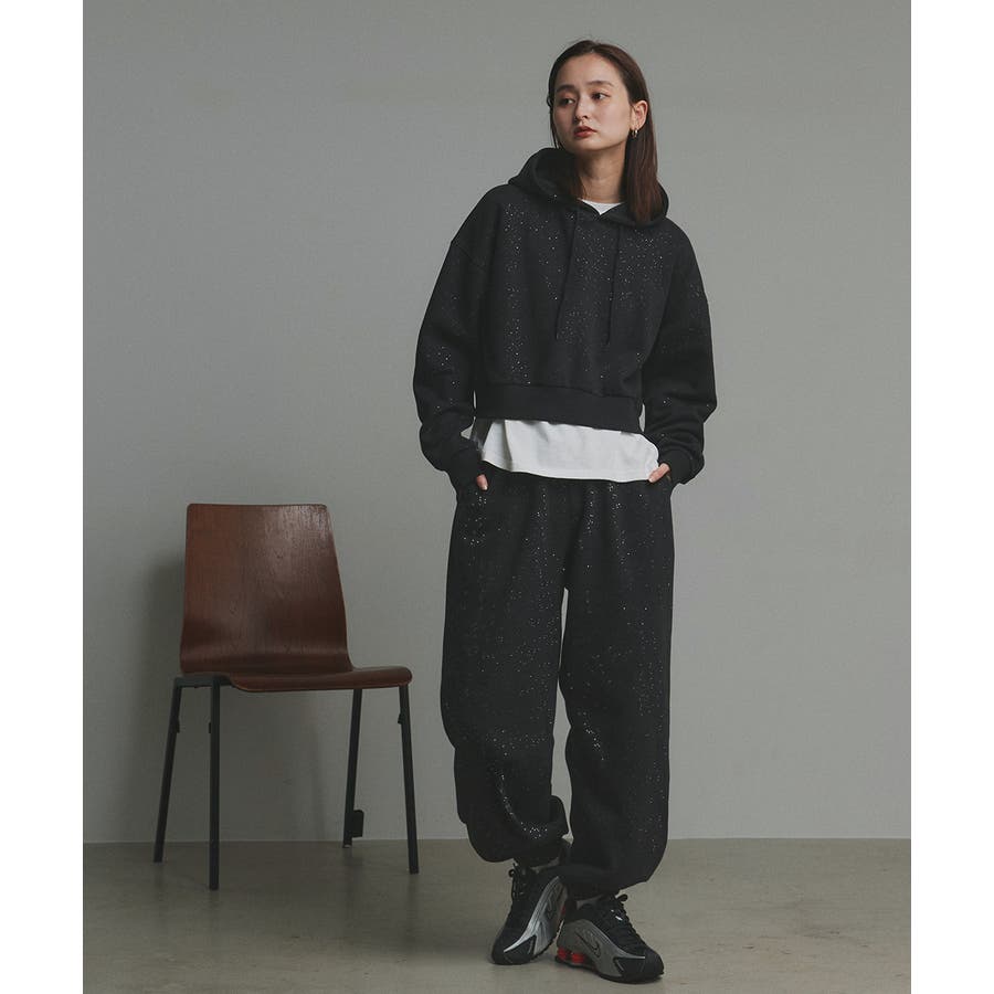 裏起毛ショート丈グリッタープルパーカー/品番:15504013