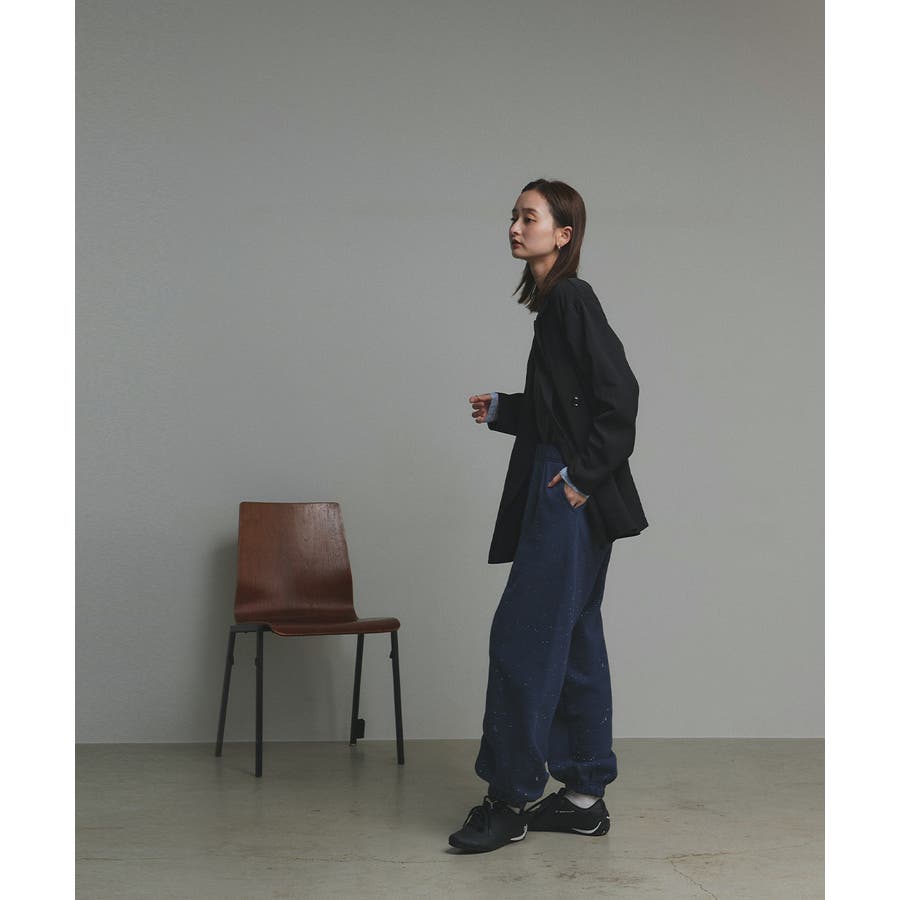 同素材のトップスと合わせてリラクシーなセットアップスタイルもおススメです。