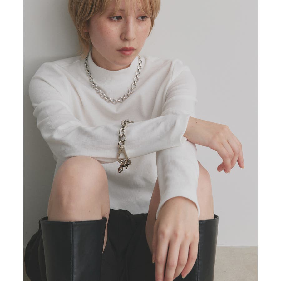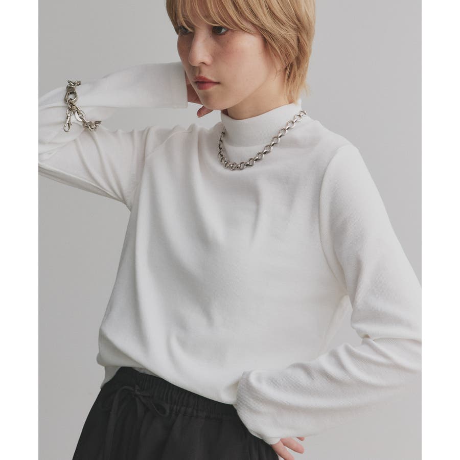 ハイネックでカジュアル過ぎず、上品な印象も。
