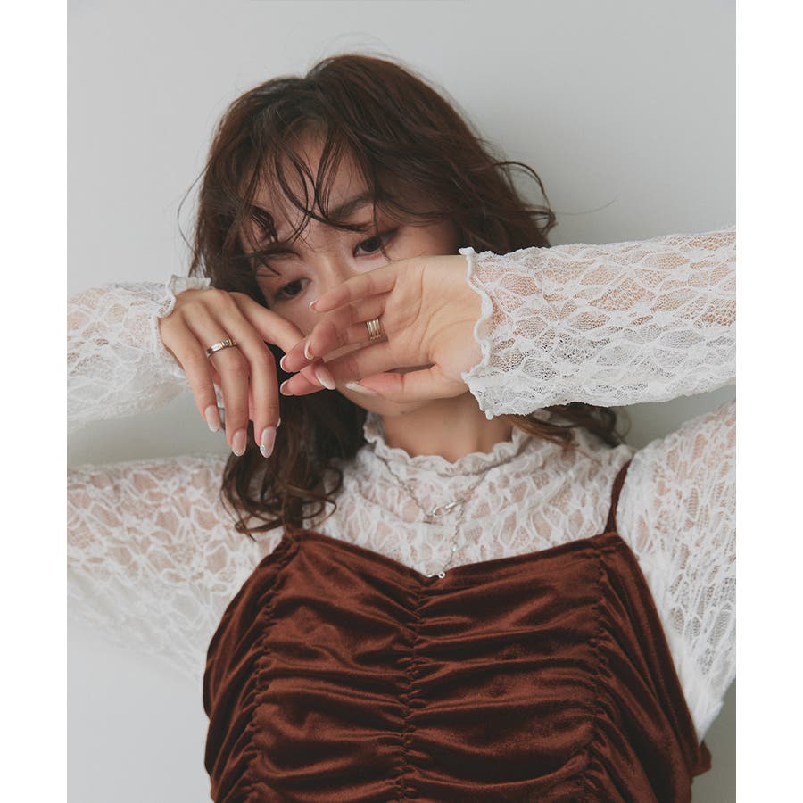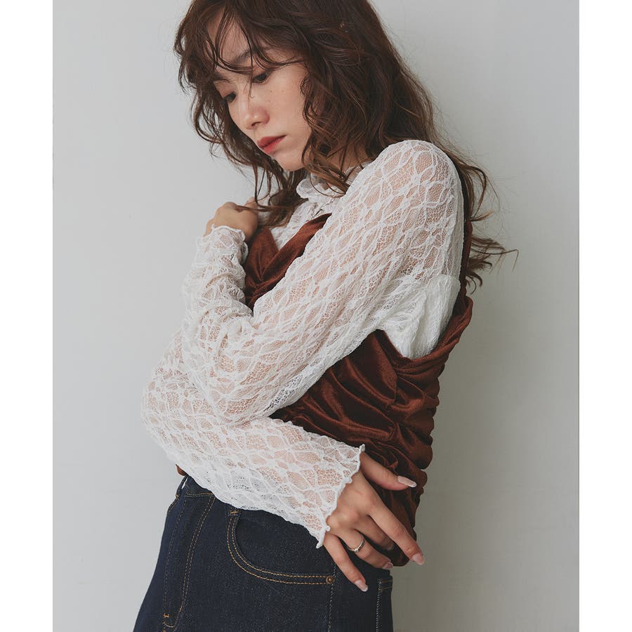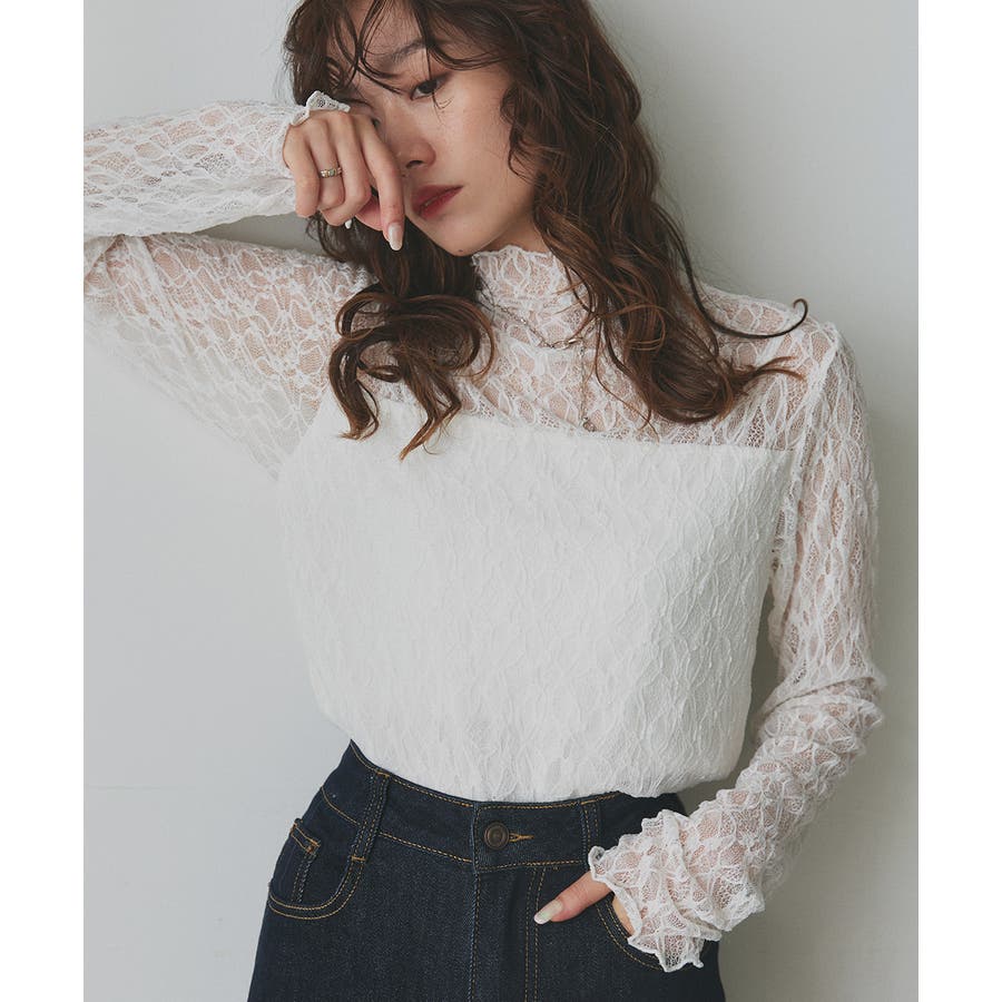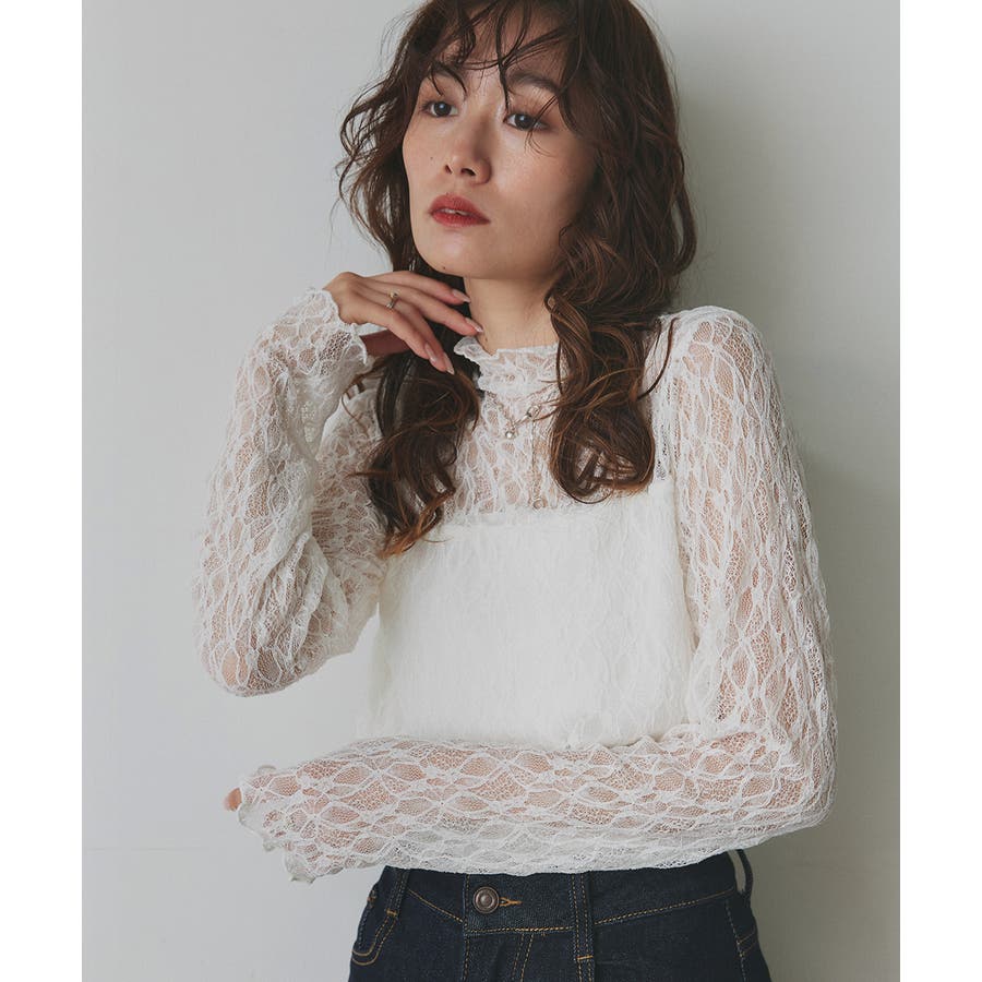 ジャケットやカーディガンのインナーとしてもレースが映え、上品なレイヤードが楽しめます。