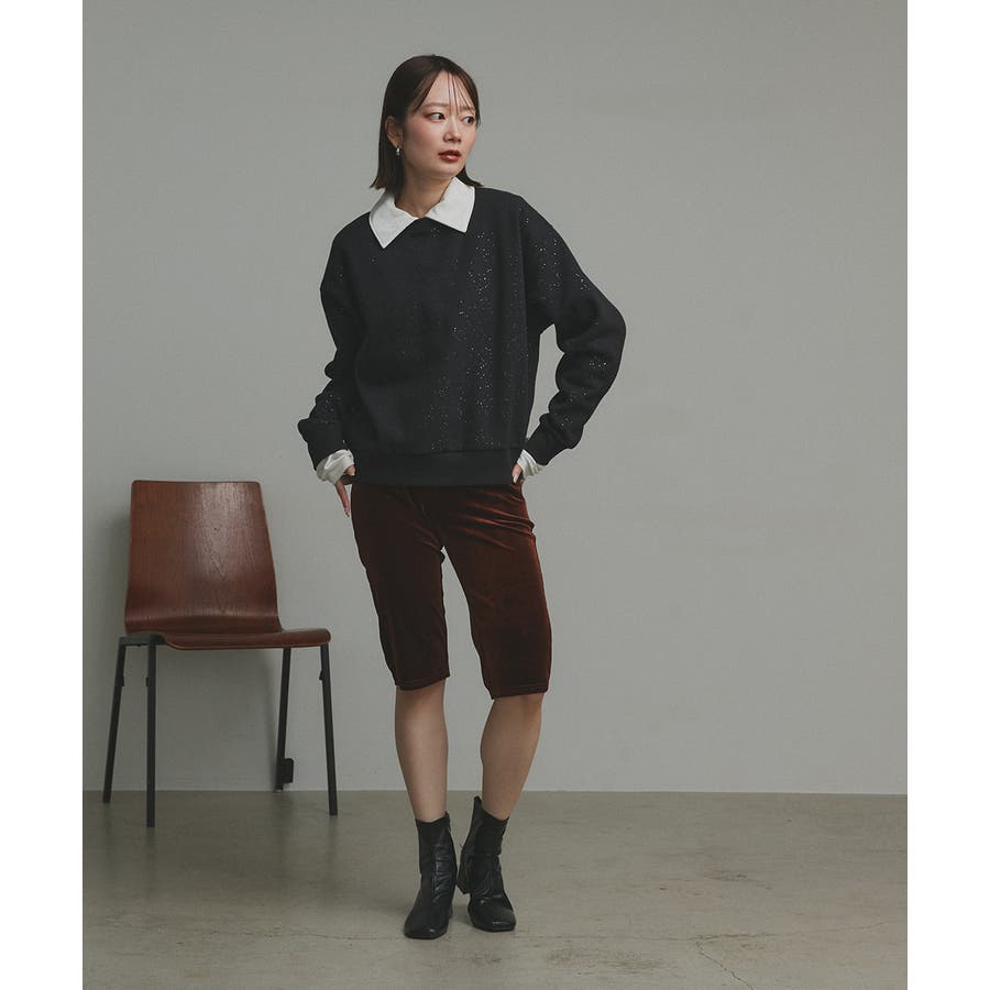 華やかさのあるラメ混素材が、カジュアルスタイルに洗練された印象を与え、遊び心のある1着に。