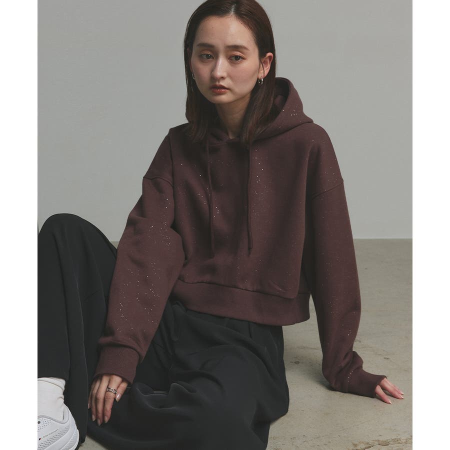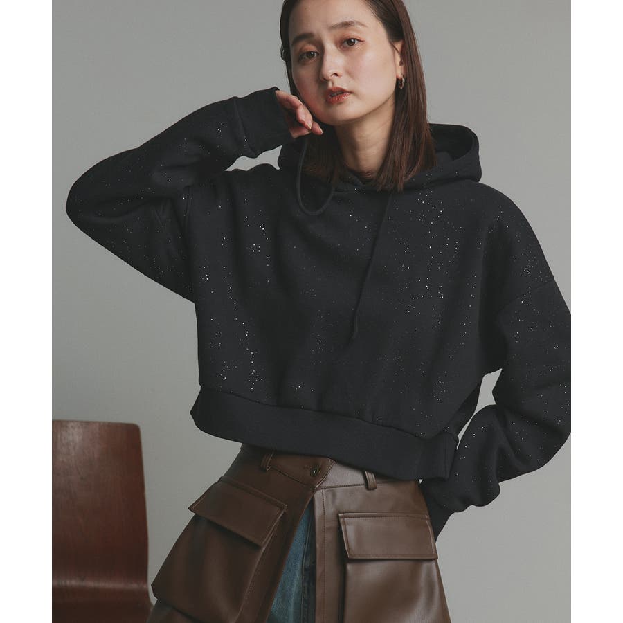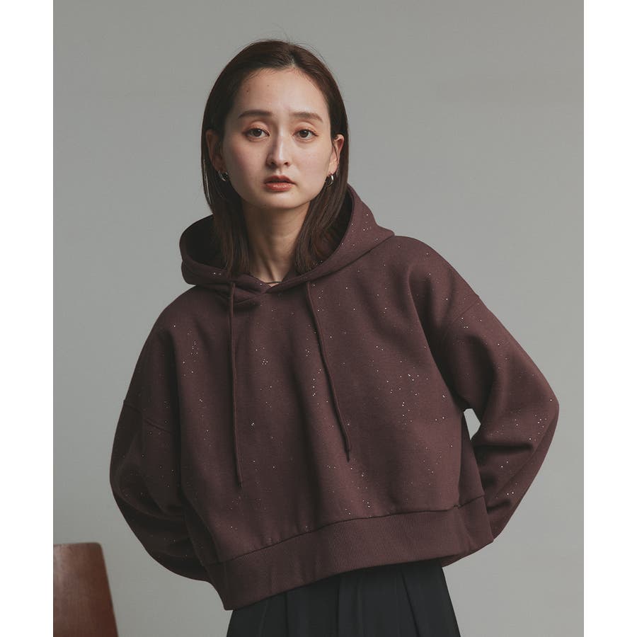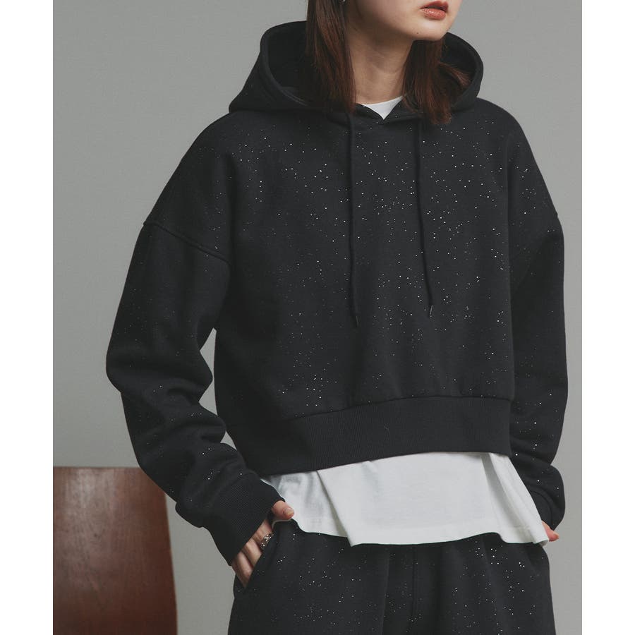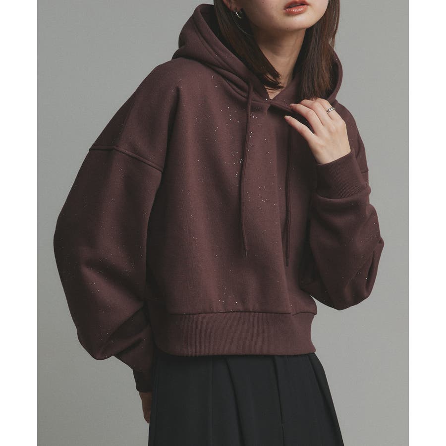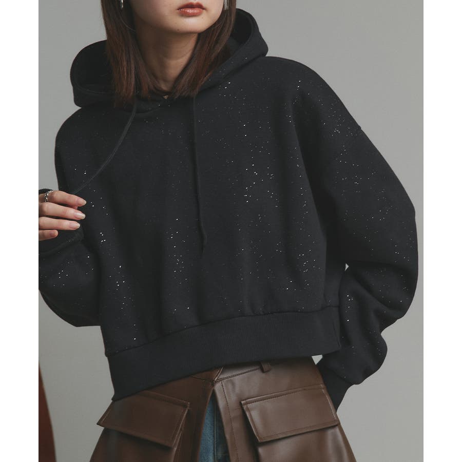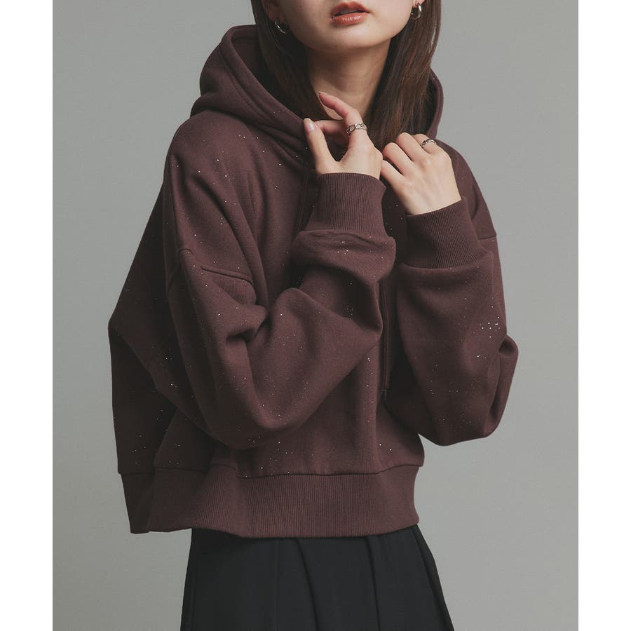 【2025AW新作】裏起毛ショート丈ラメフーディーパーカー