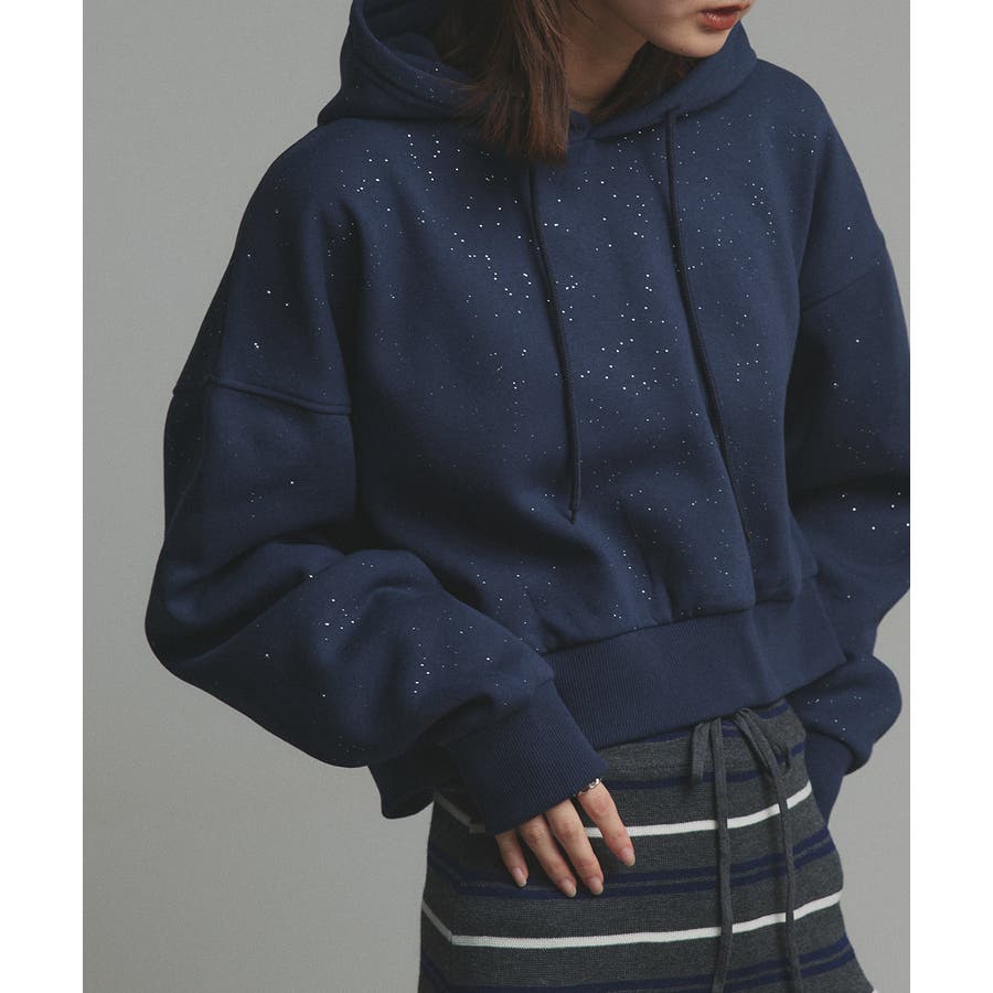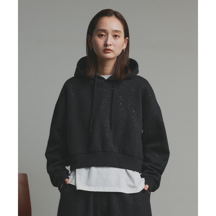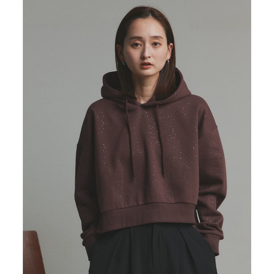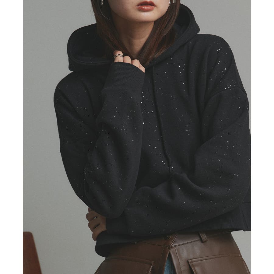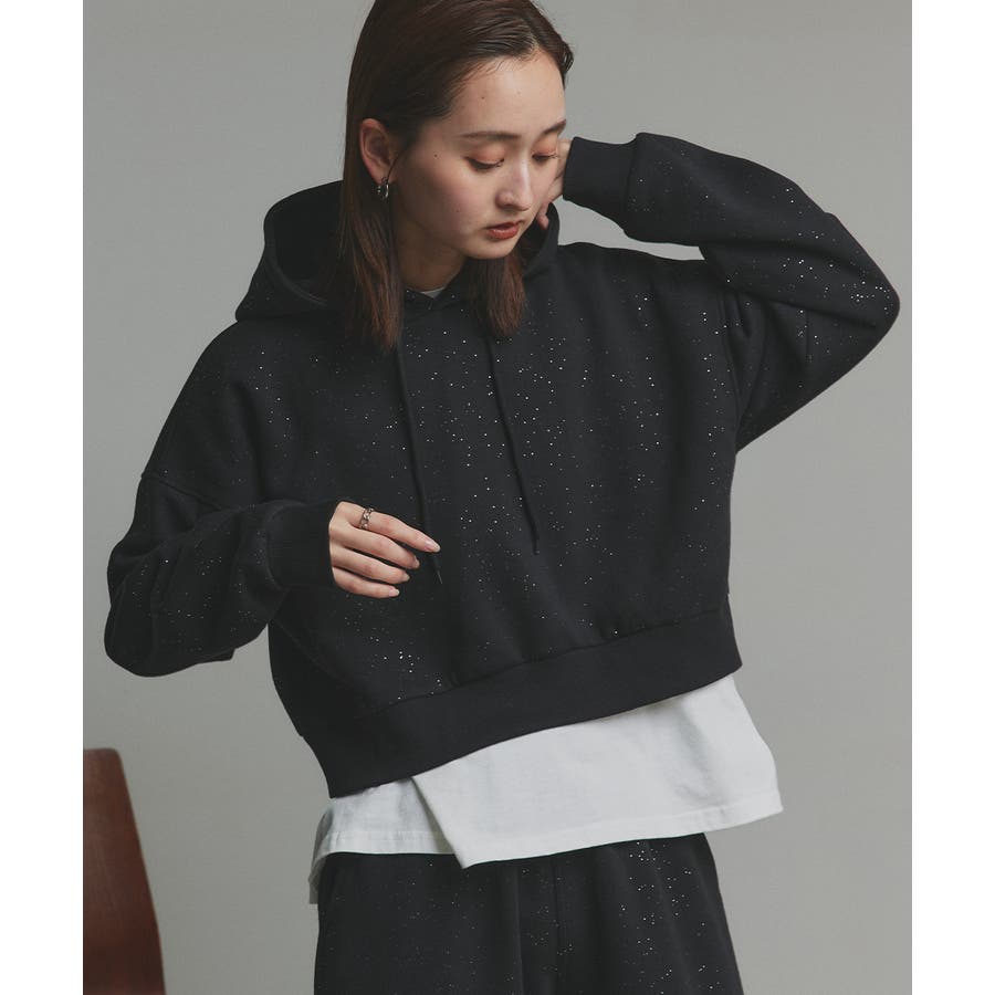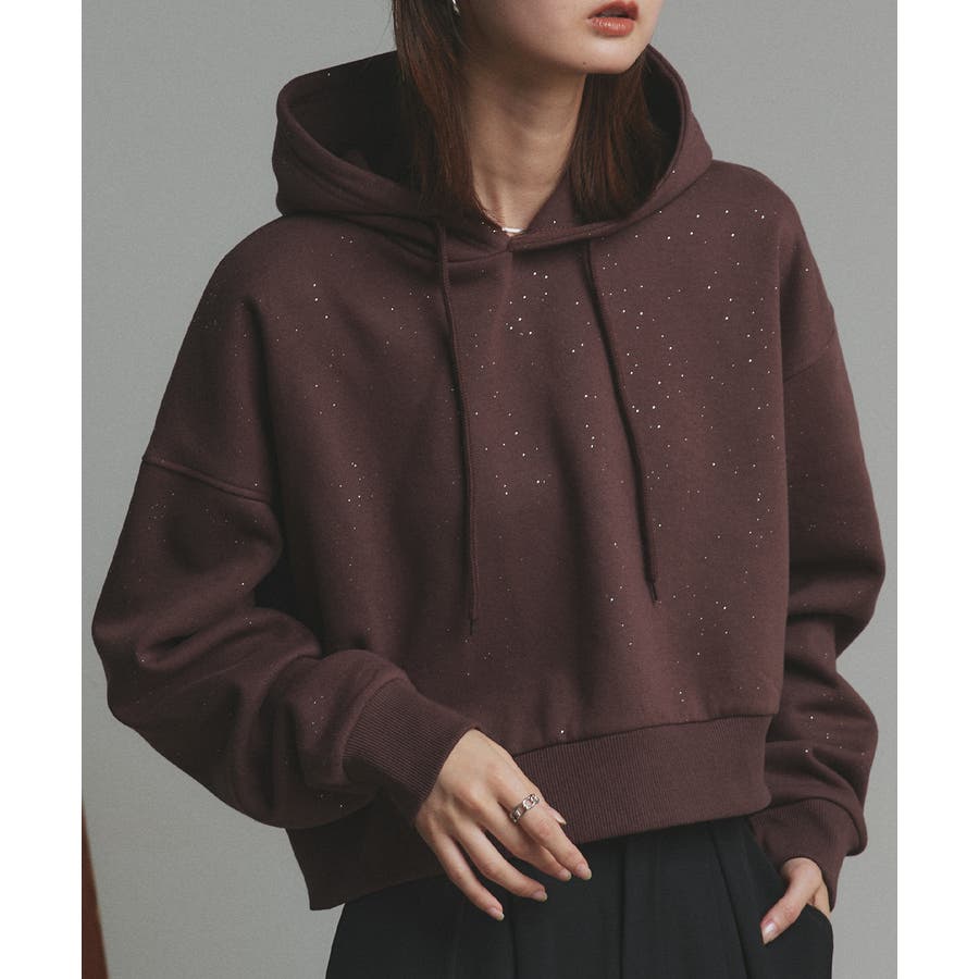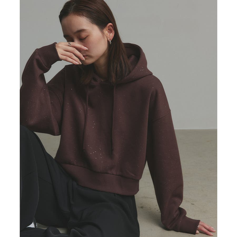 【2025AW新作】裏起毛ショート丈ラメフーディーパーカー