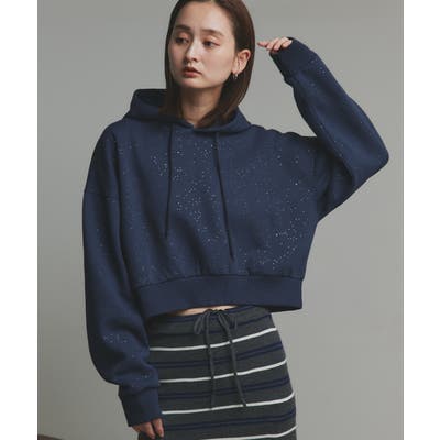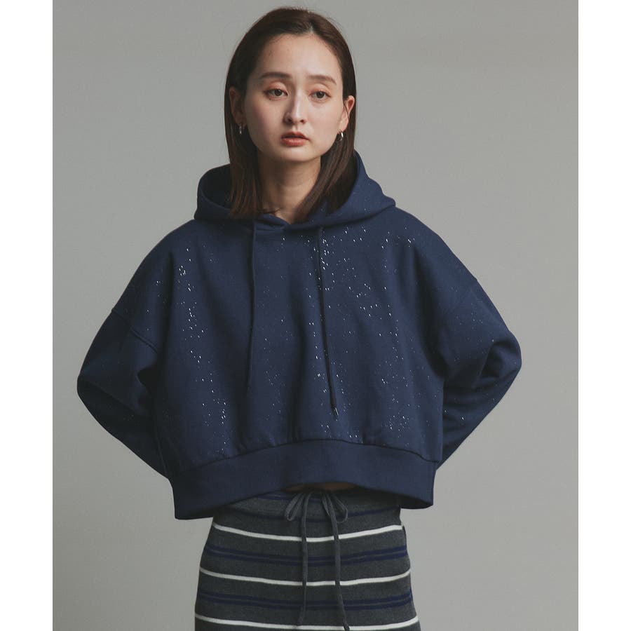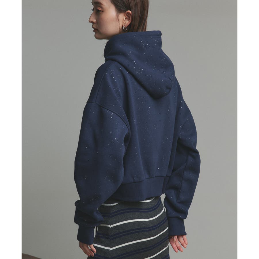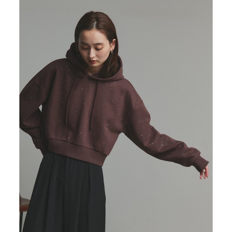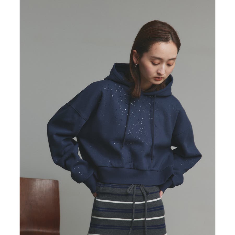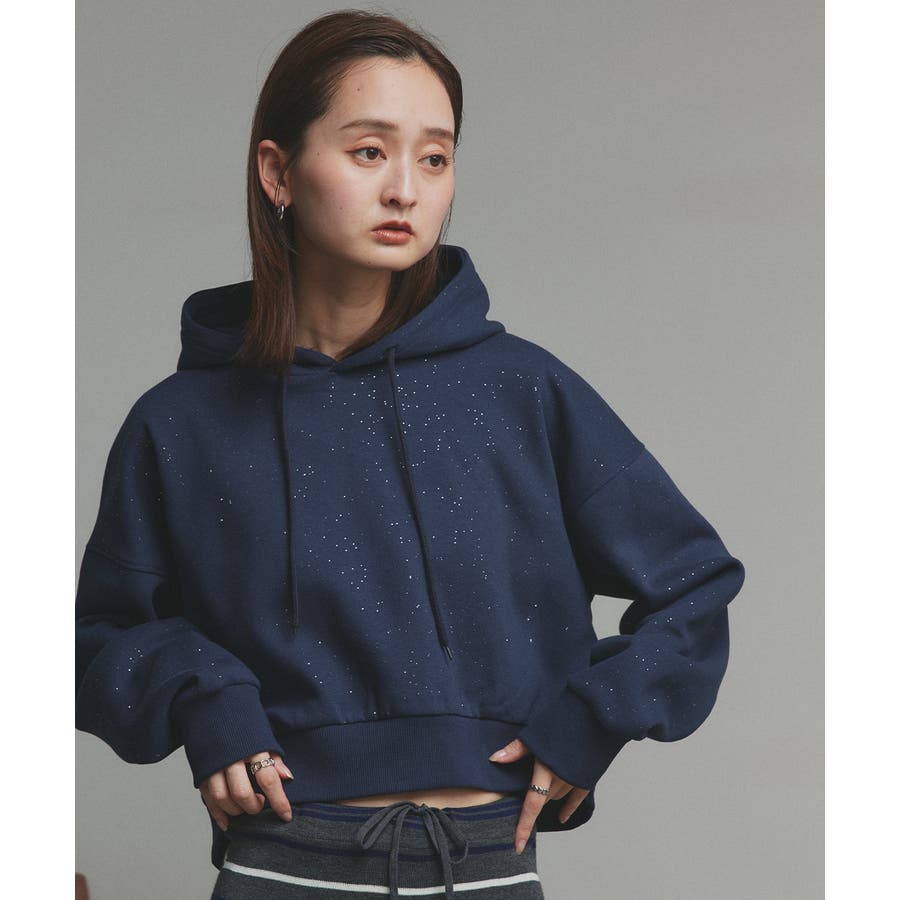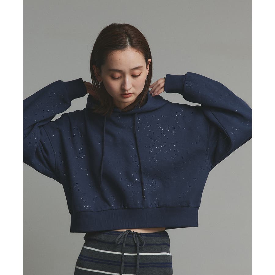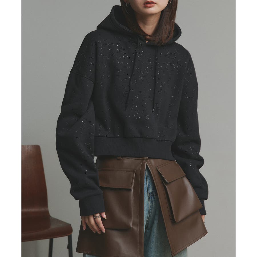 【2025AW新作】裏起毛ショート丈ラメフーディーパーカー