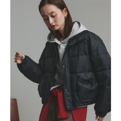 さり気ないレザーパッチが映える中綿ダウンジャケット