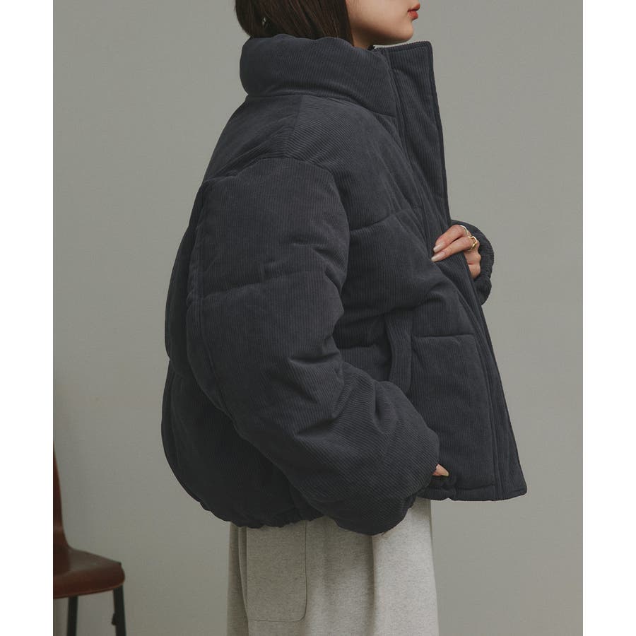 表情豊かなコーデュロイ素材にたっぷりの中綿をプラスしたブルゾンです。