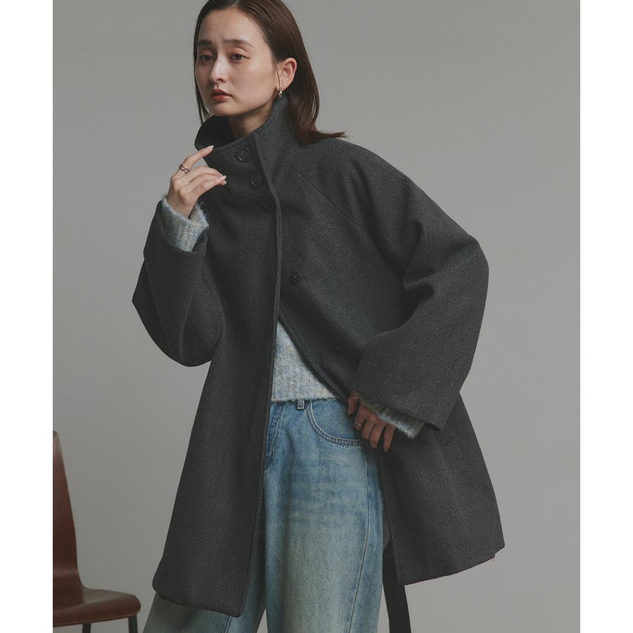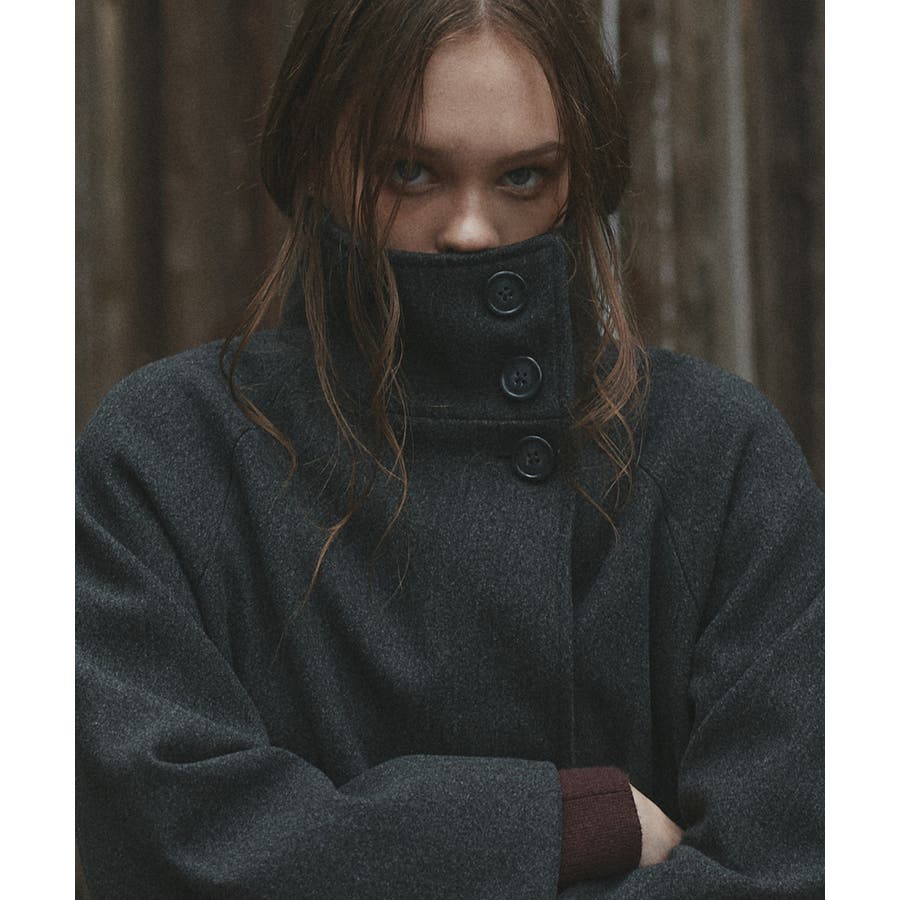 スタンドカラーは折り返して着ると柔らかな印象に、立てて着るとモードな雰囲気に。