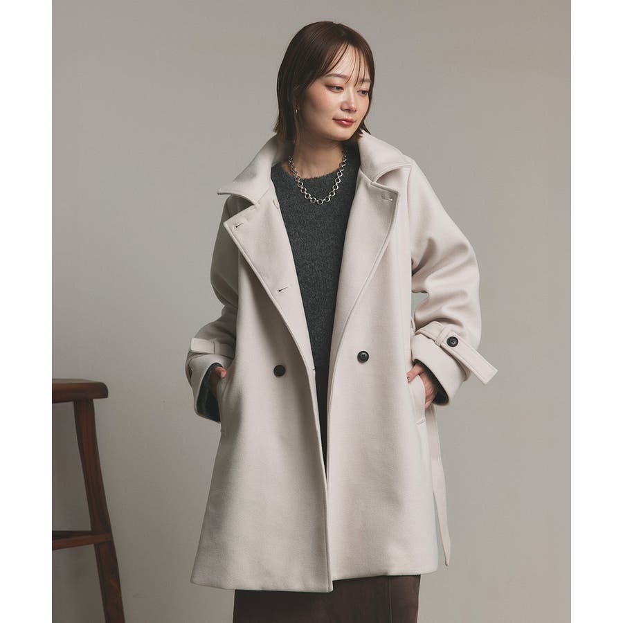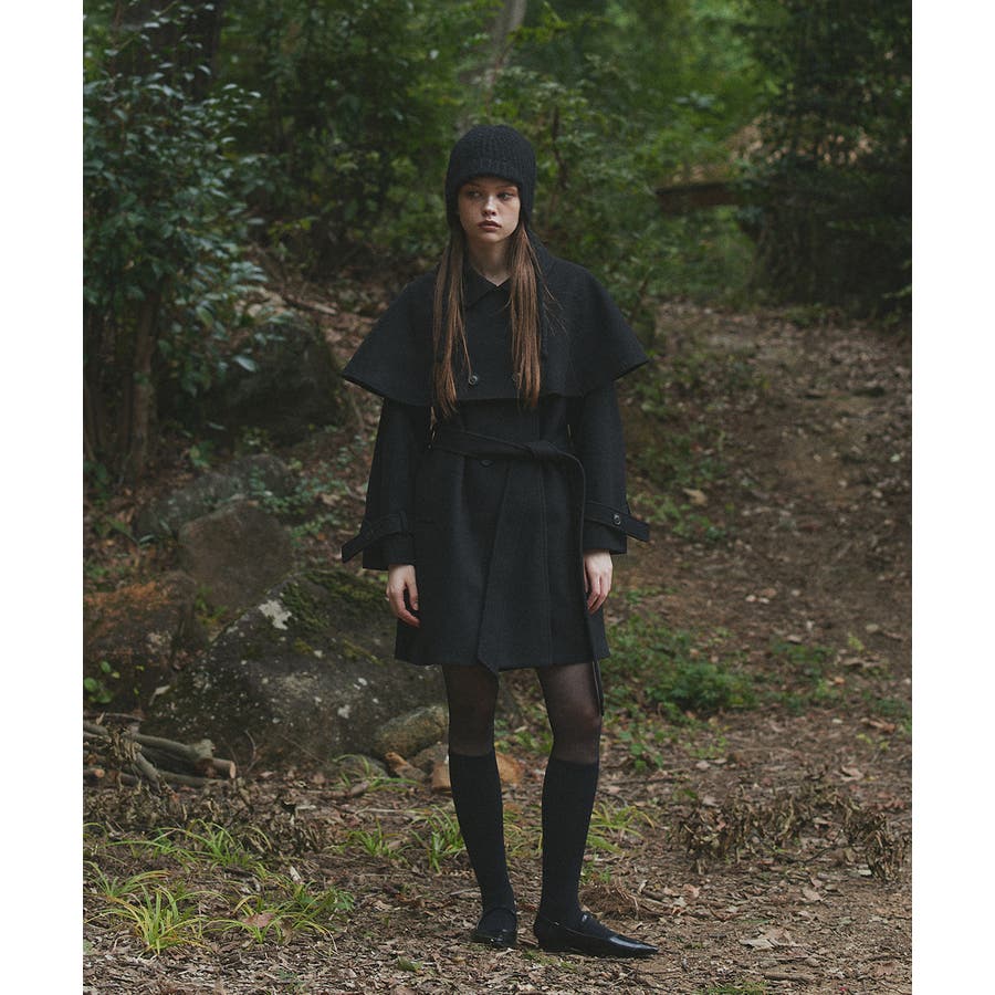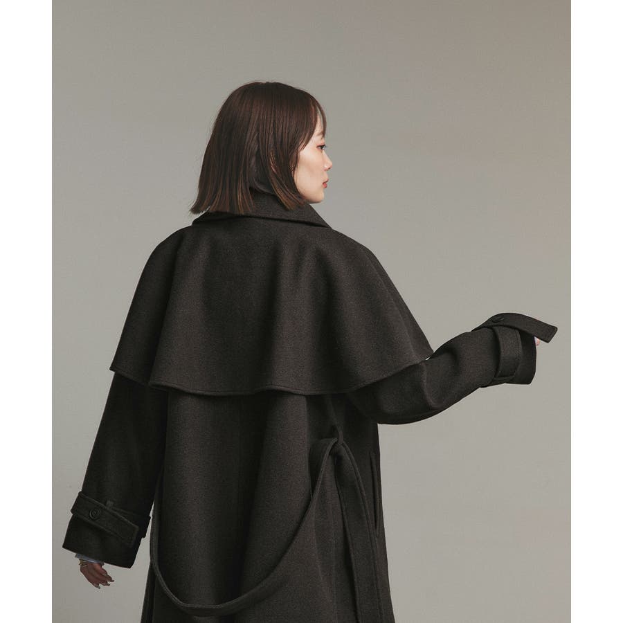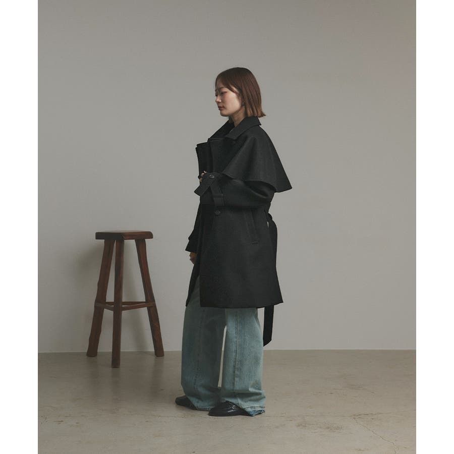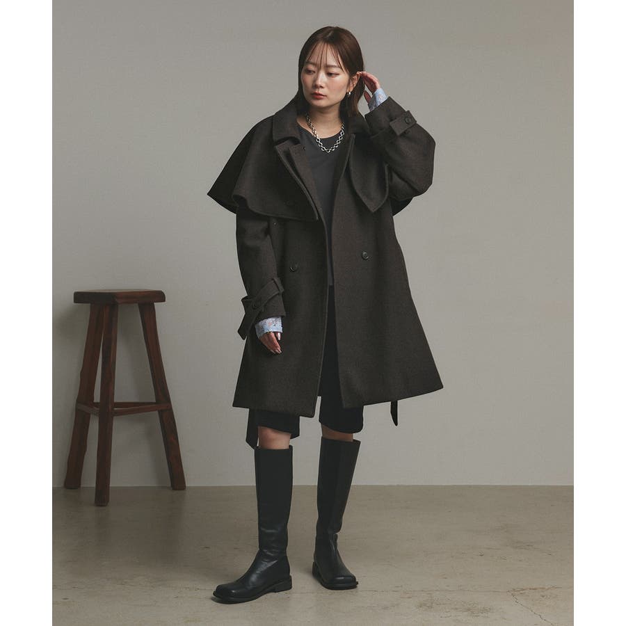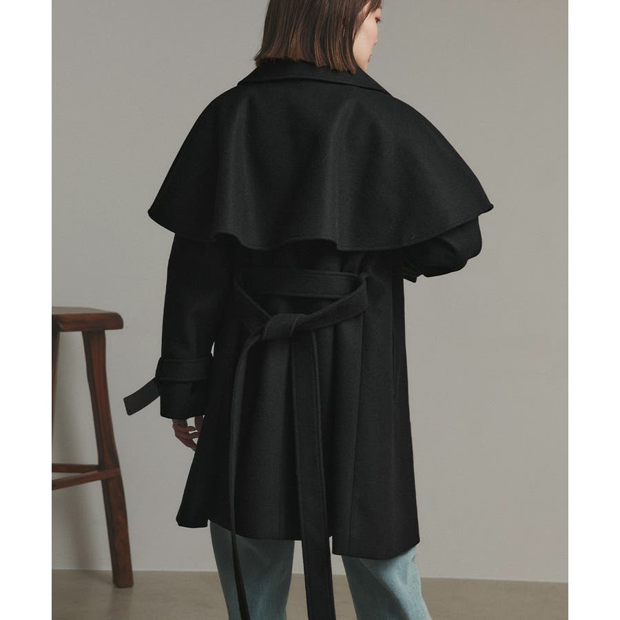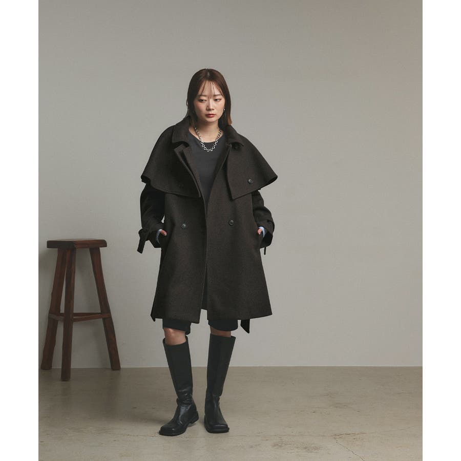 ケープを外せばシンプルなダブルコートに変身し、スッキリとした印象で着こなせます。