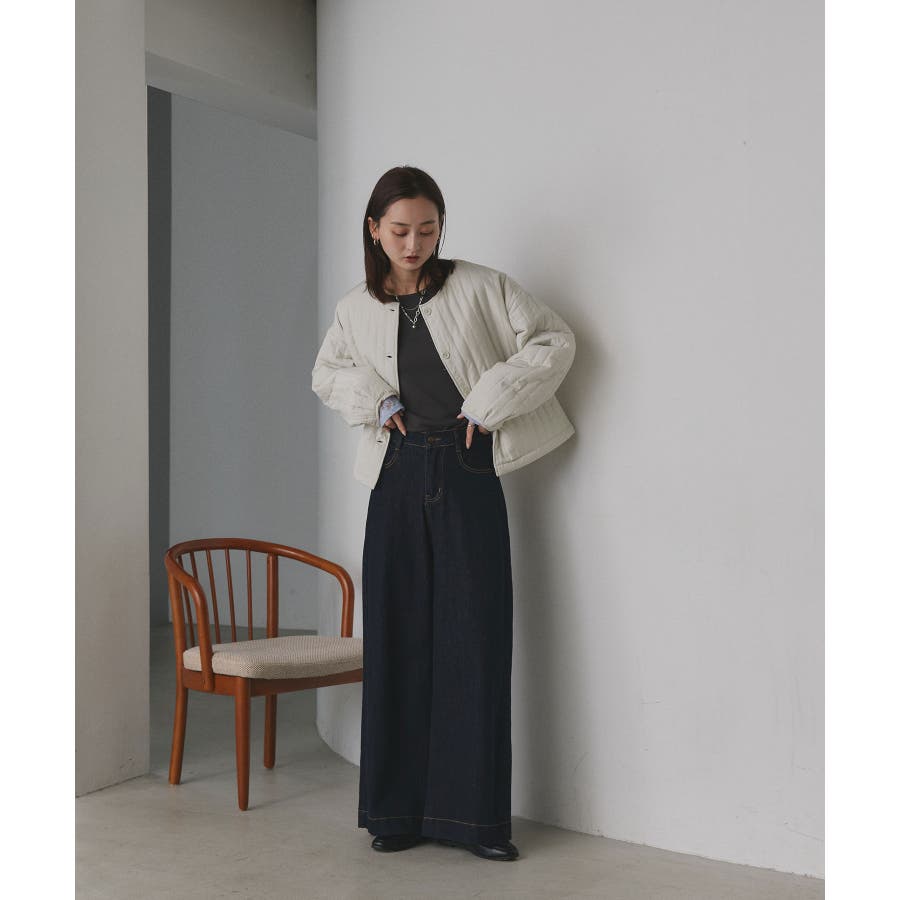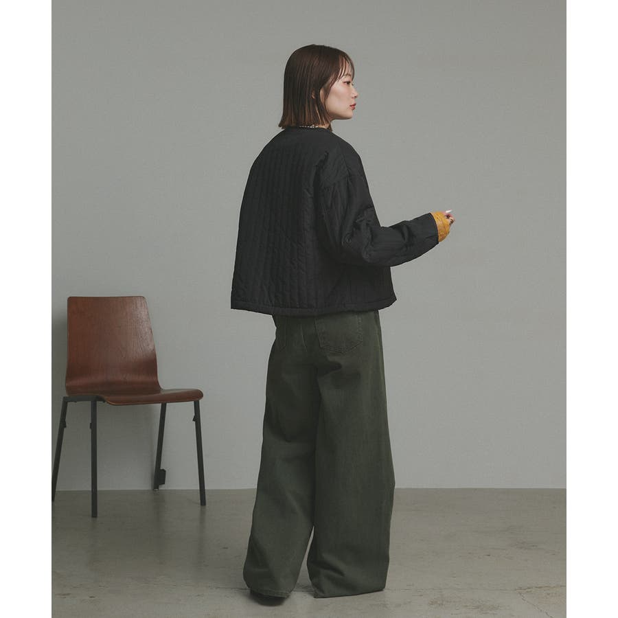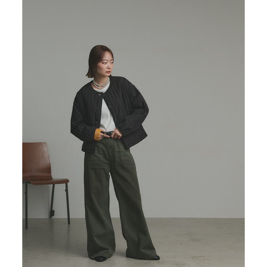 襟を抜いて着るとぐっとこなれ感が出て、様々なコーデが楽しめるブルゾンです。