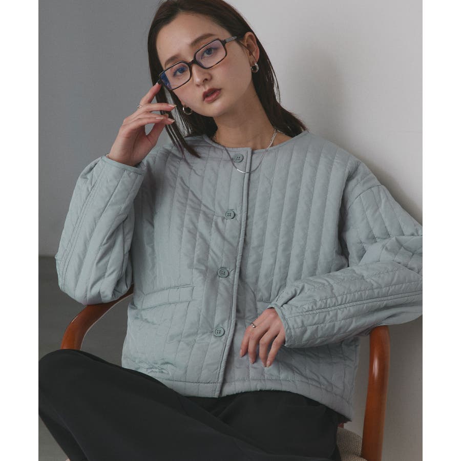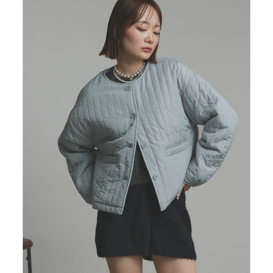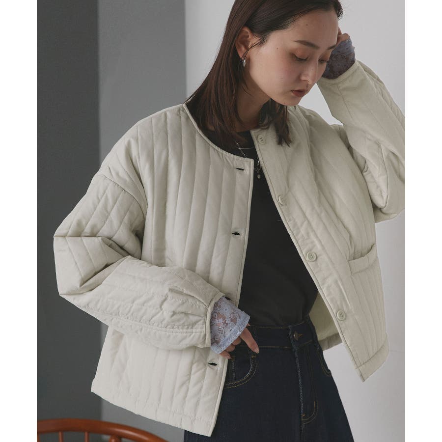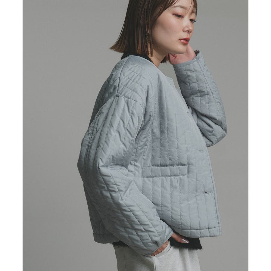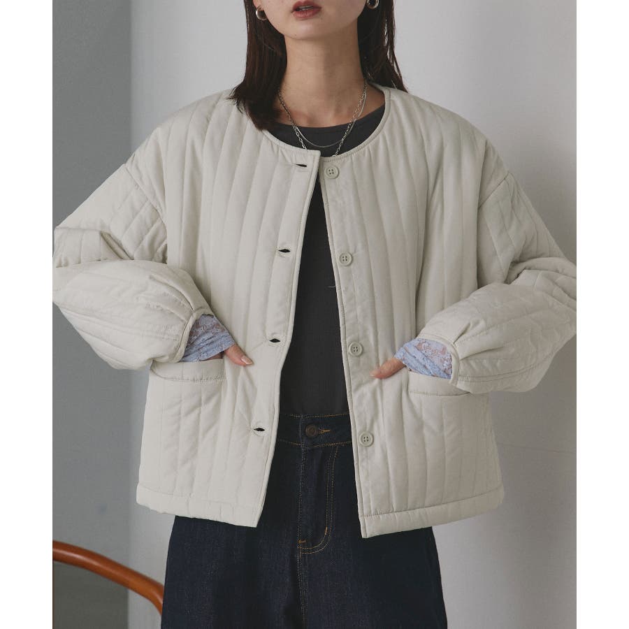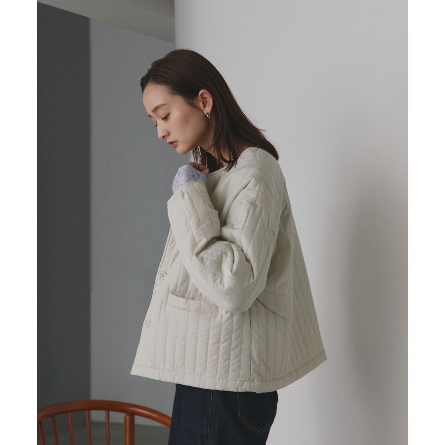 【2025AW新作】ストライプキルティングノーカラーブルゾン
