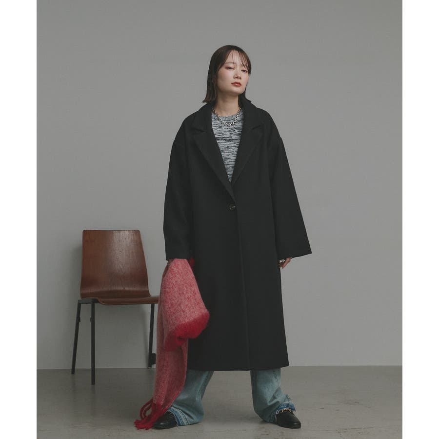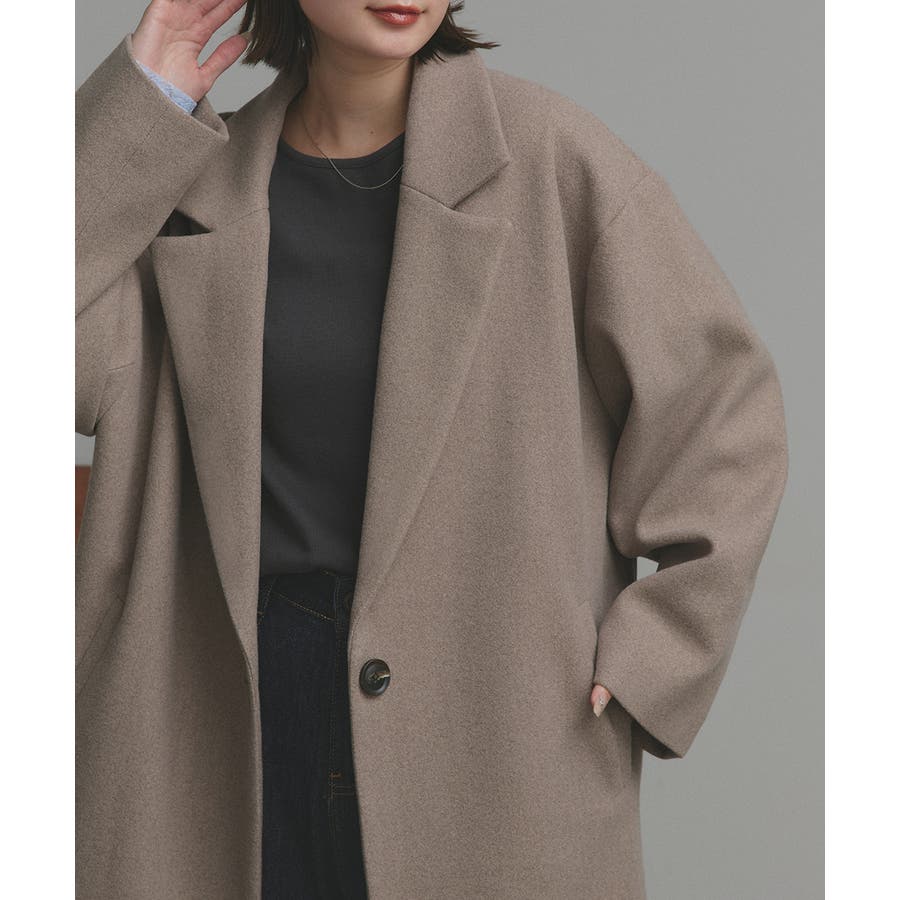 フェイクウールで軽やかで扱いやすく、オンオフ問わず着回せる万能な1枚です。