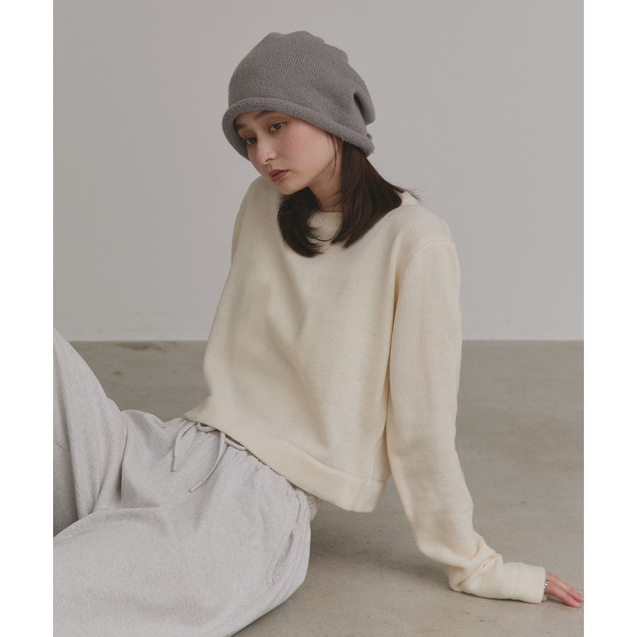 シンプルなデザインでどんなスタイリングにも溶け込むニットなので、
