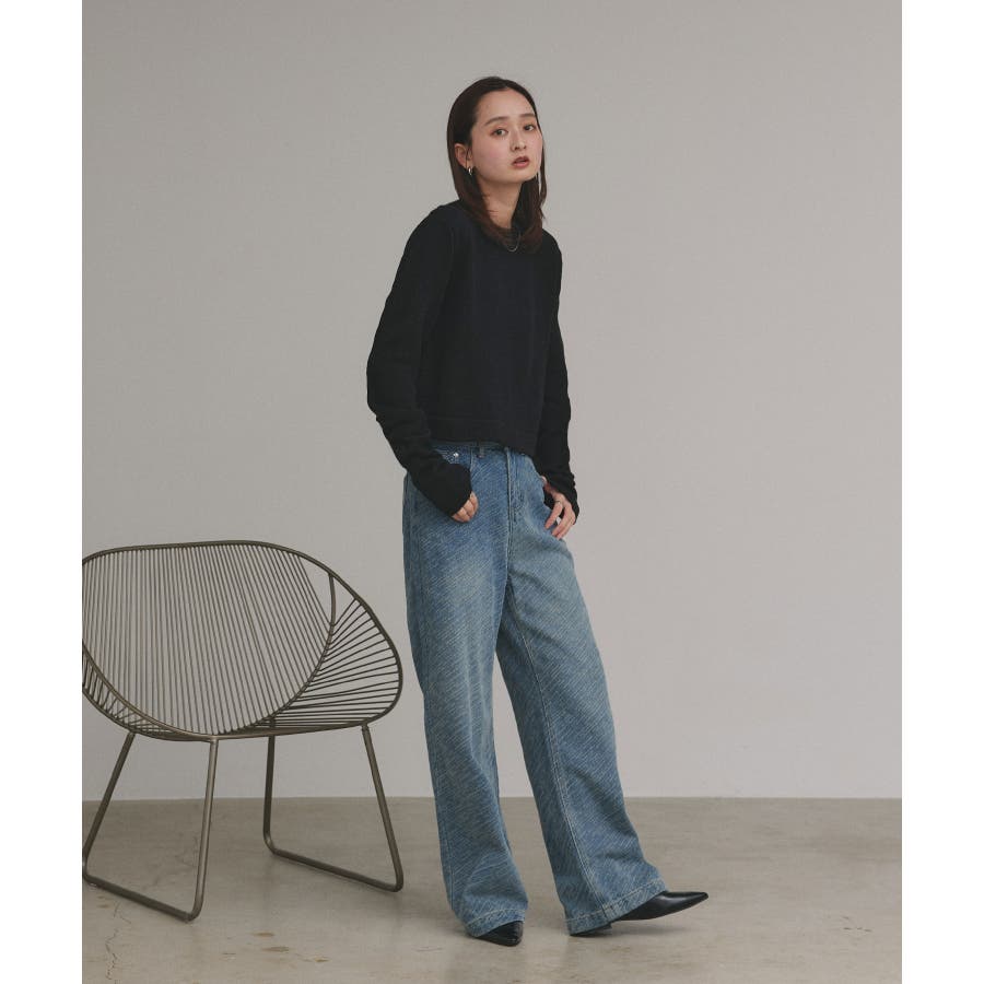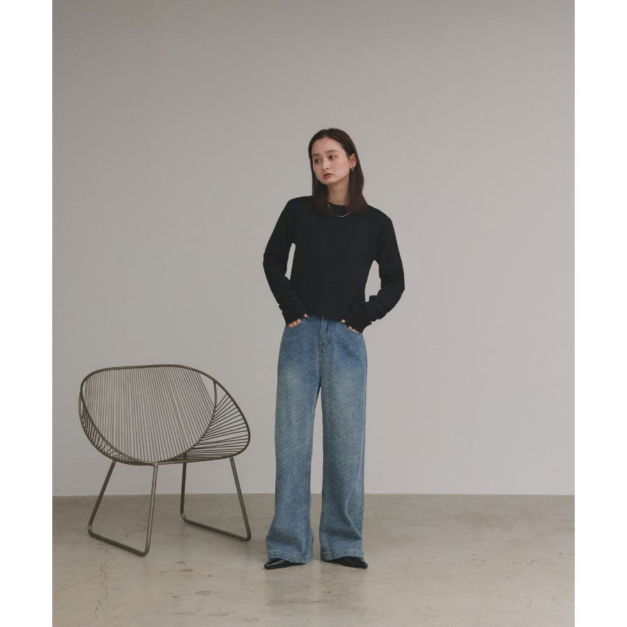 ショート丈なのでハイウエストボトムスと相性抜群。