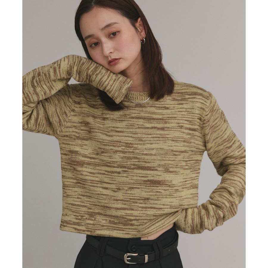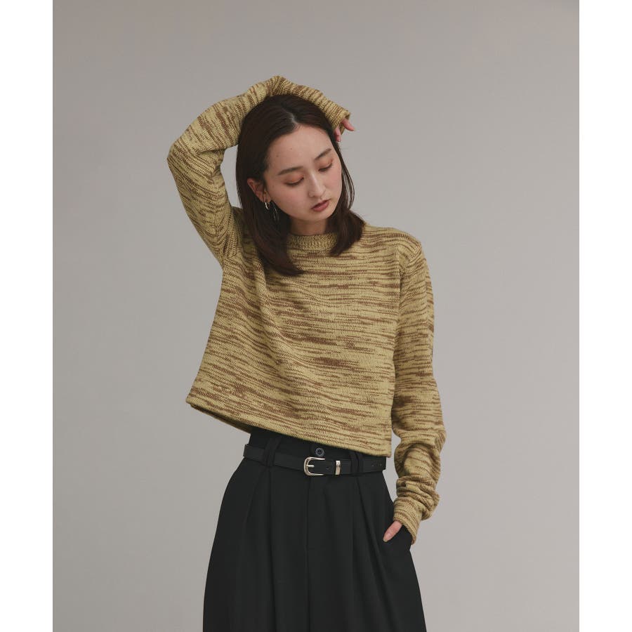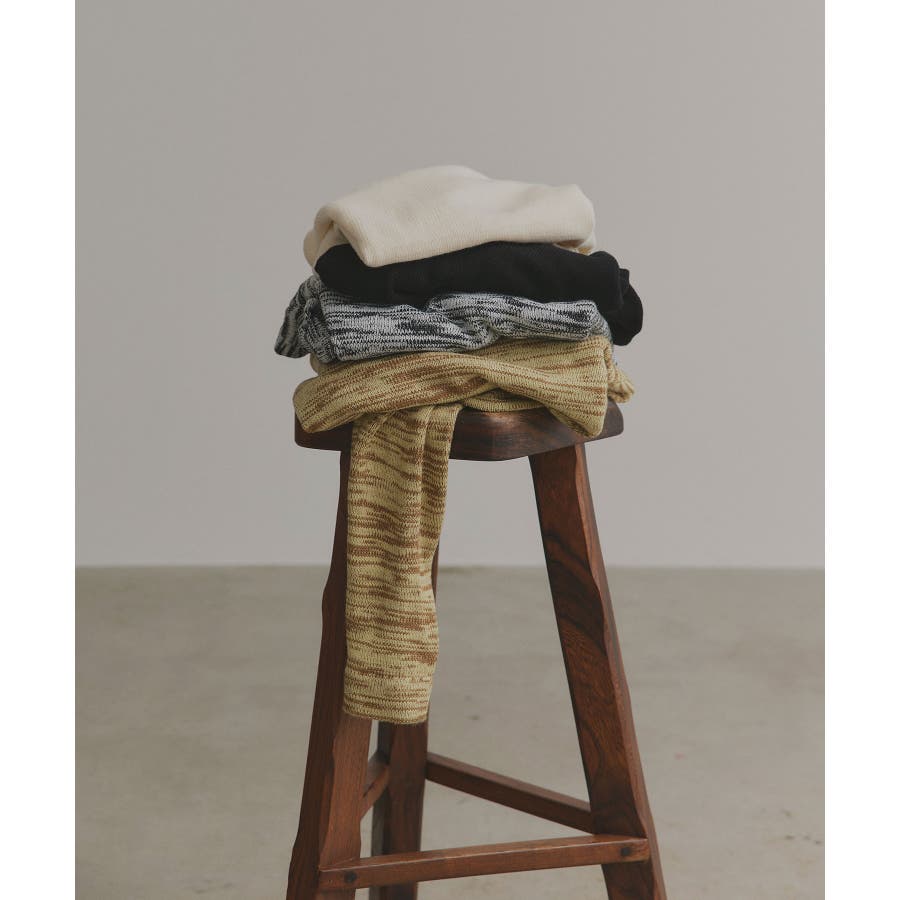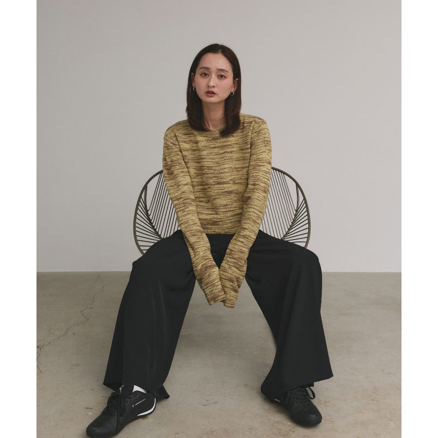 メランジニットはカジュアルに映える風合いで、デイリーのアクセントにぴったりです。
