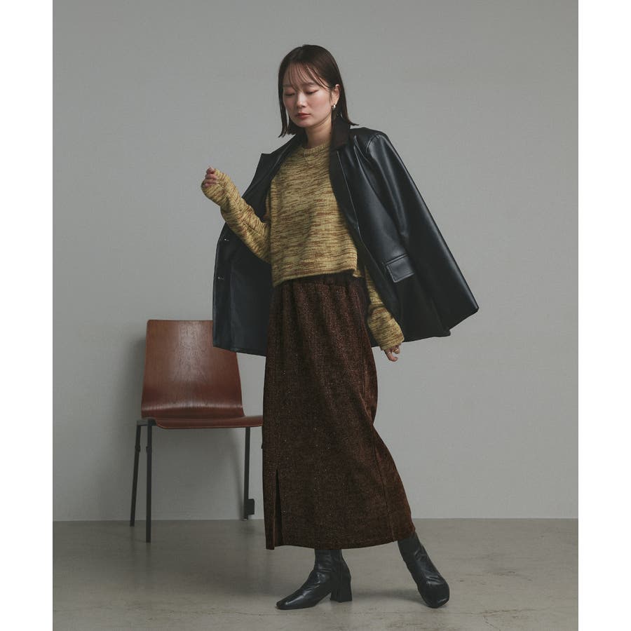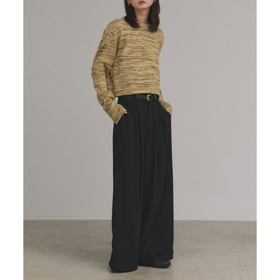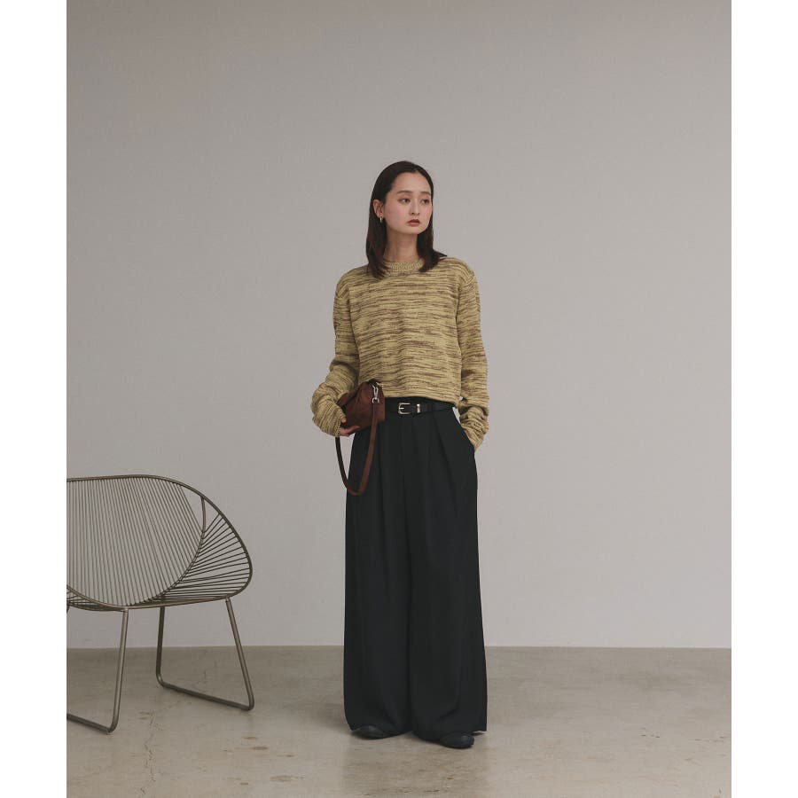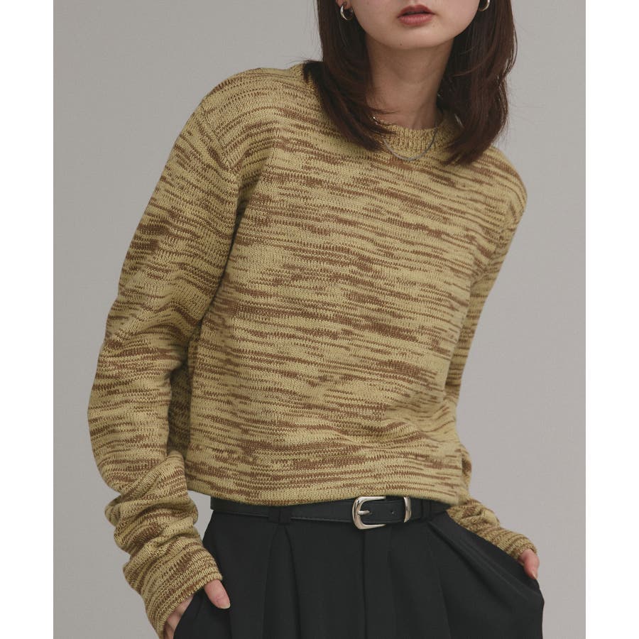 メランジニットはカジュアルに映える風合いで、デイリーのアクセントにぴったりです。