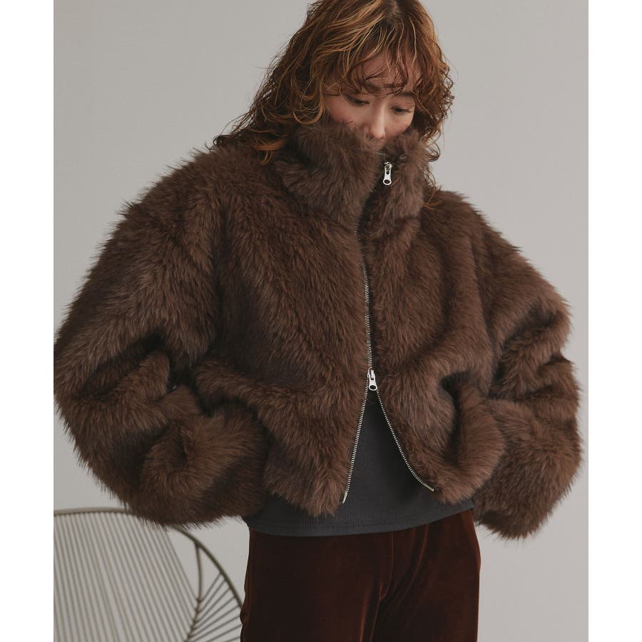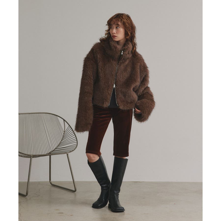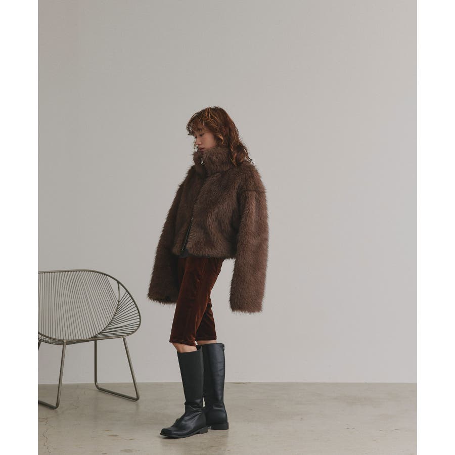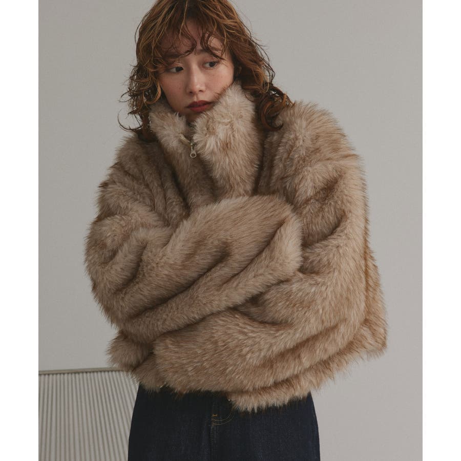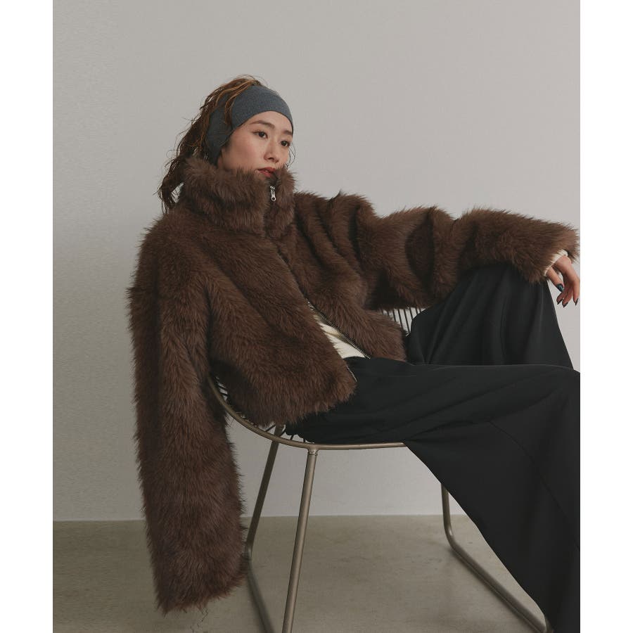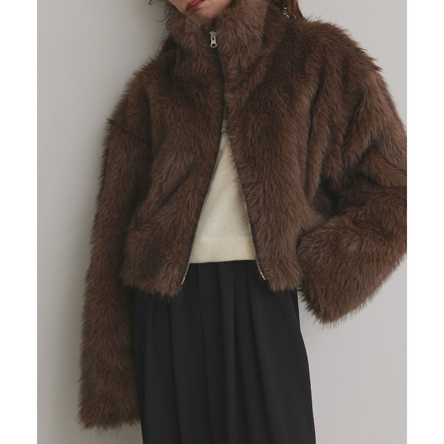 毛足の長いファーのボリュームとショート丈が好バランスな1着。