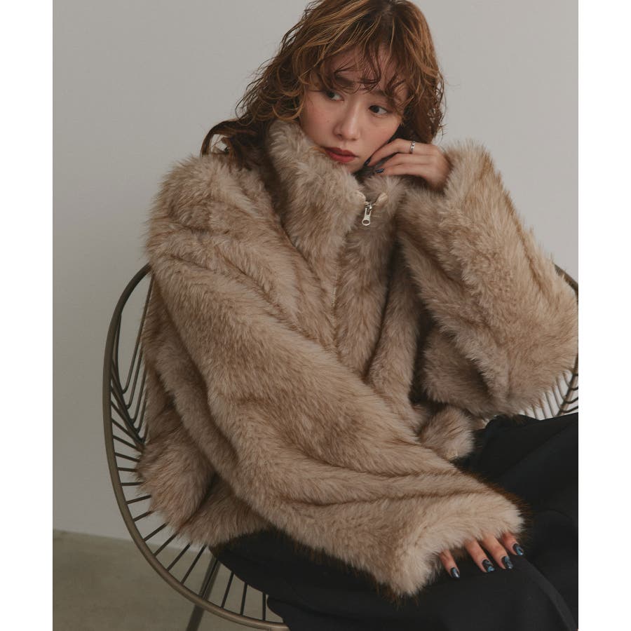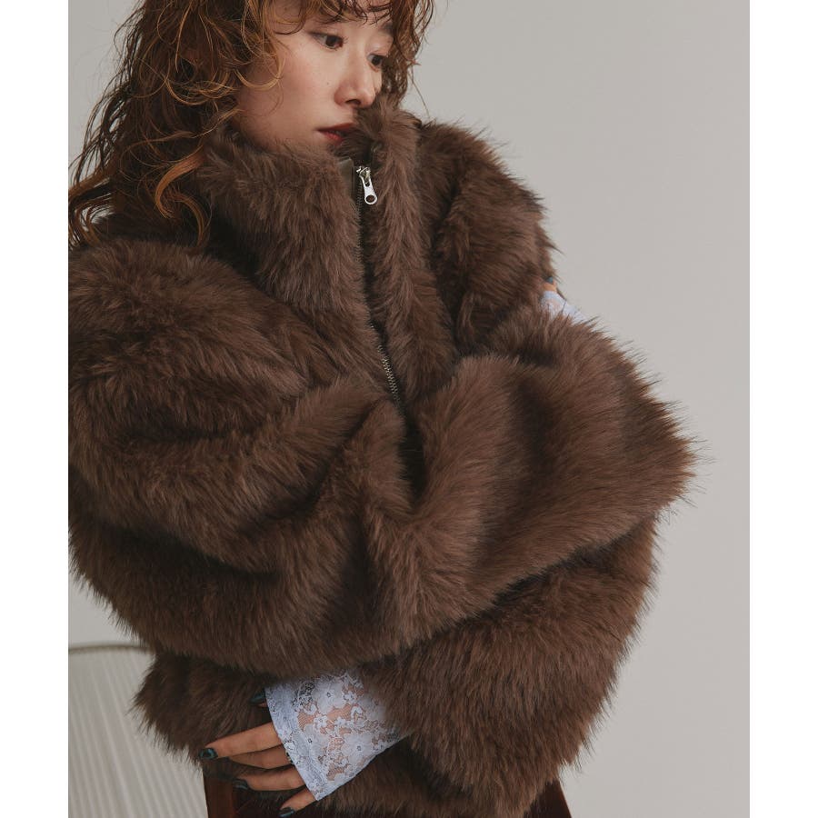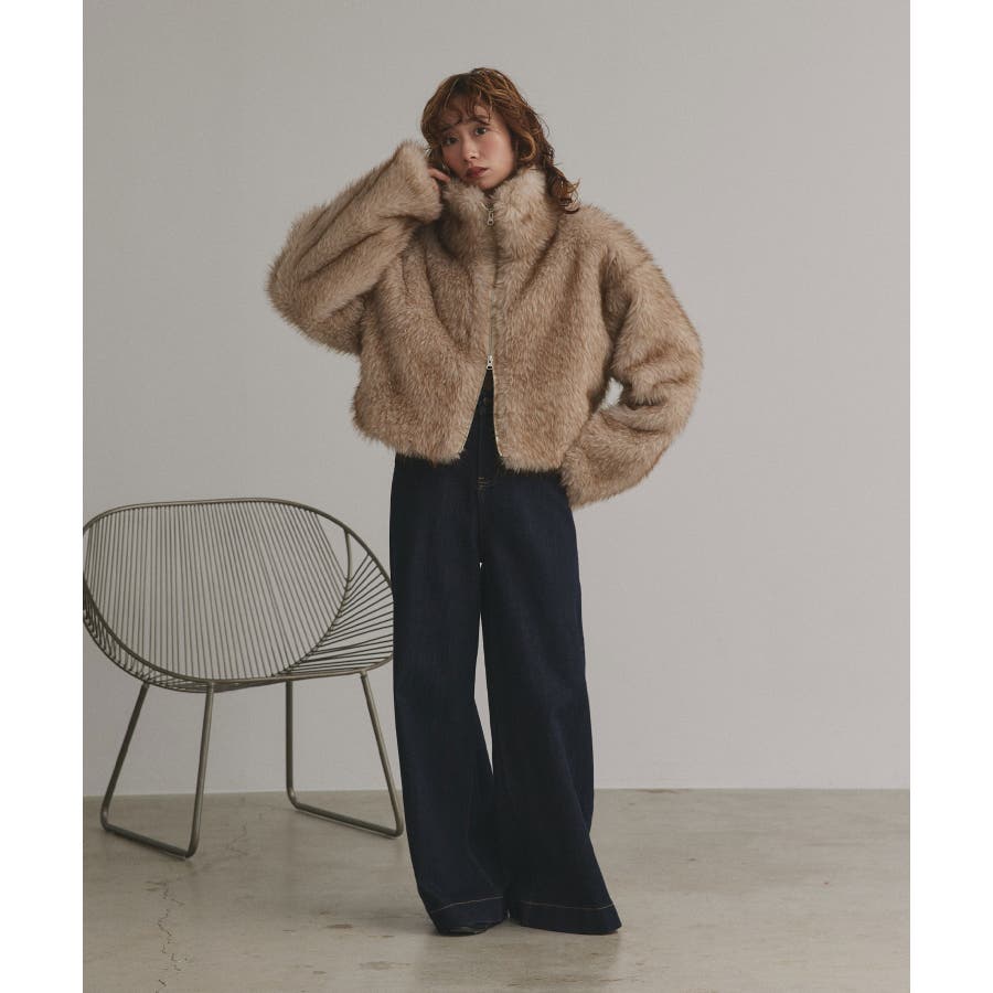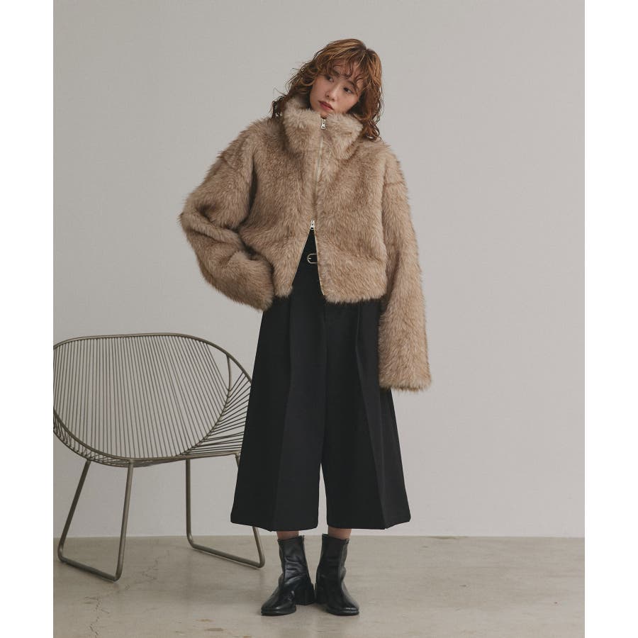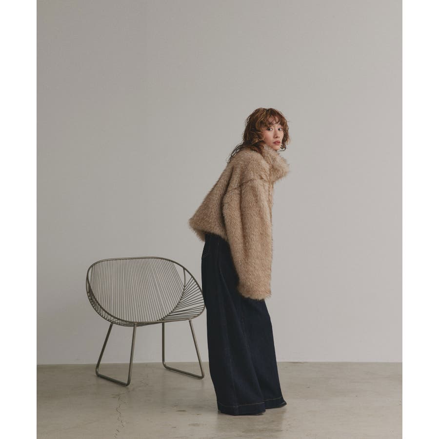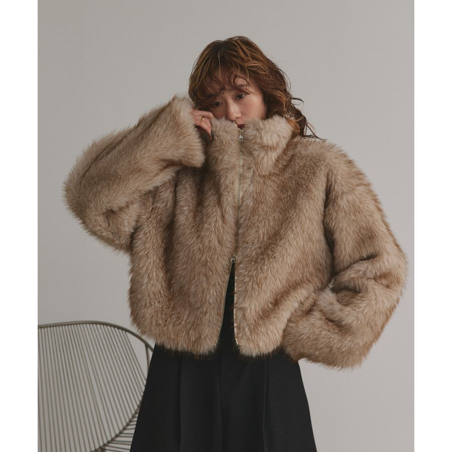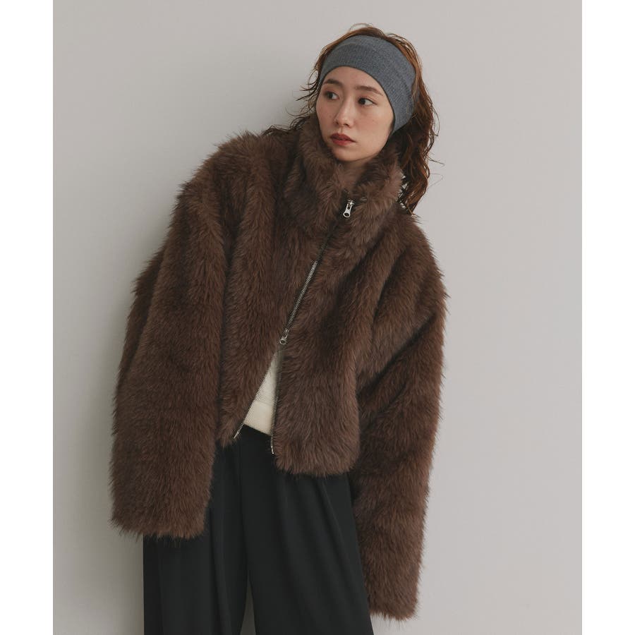 毛足の長いファーのボリュームとショート丈が好バランスな1着。