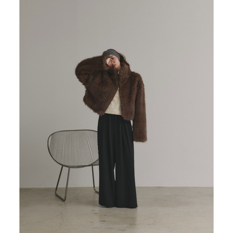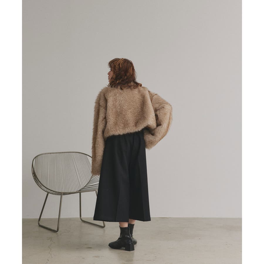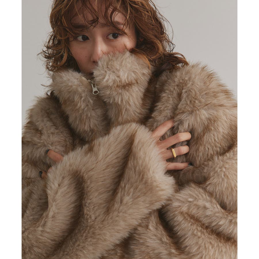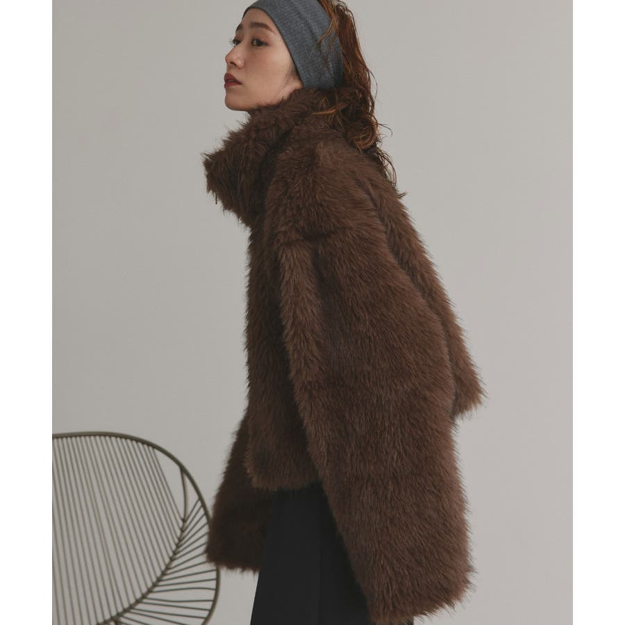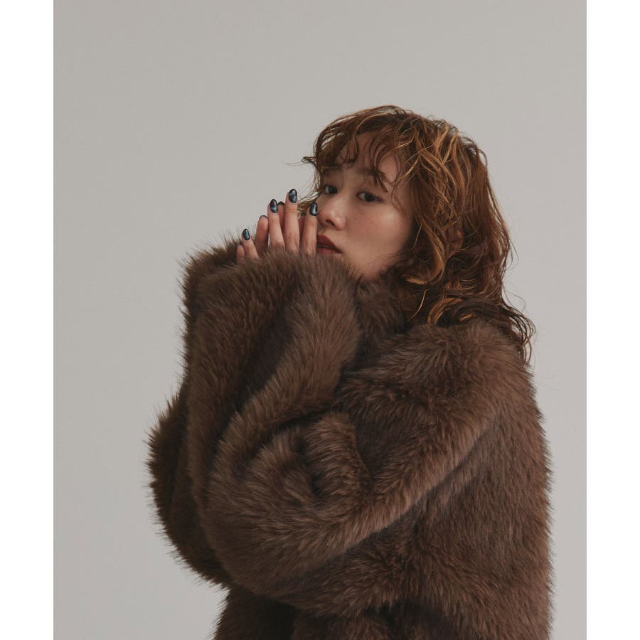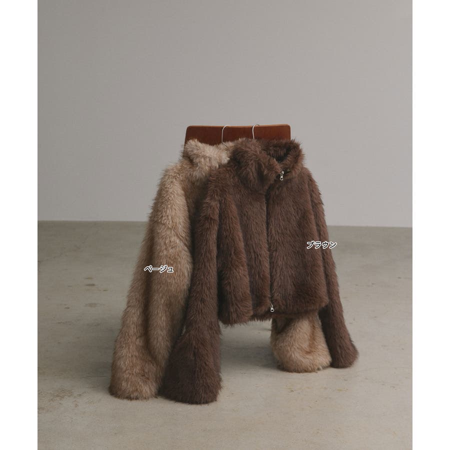 毛足の長いファーのボリュームとショート丈が好バランスな1着。