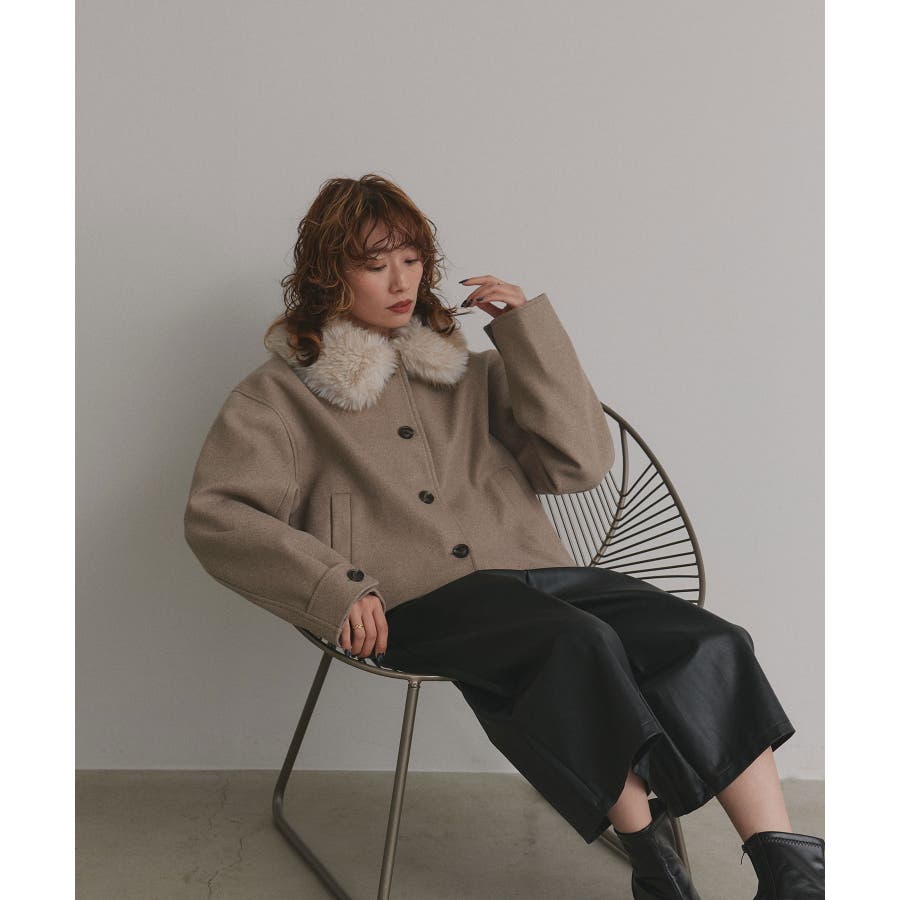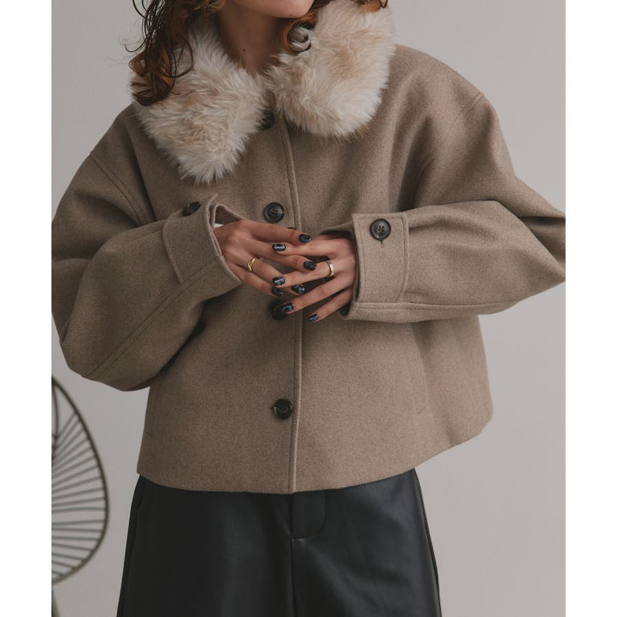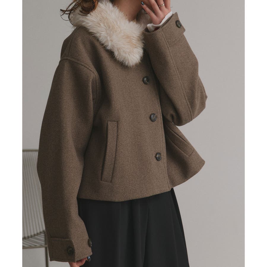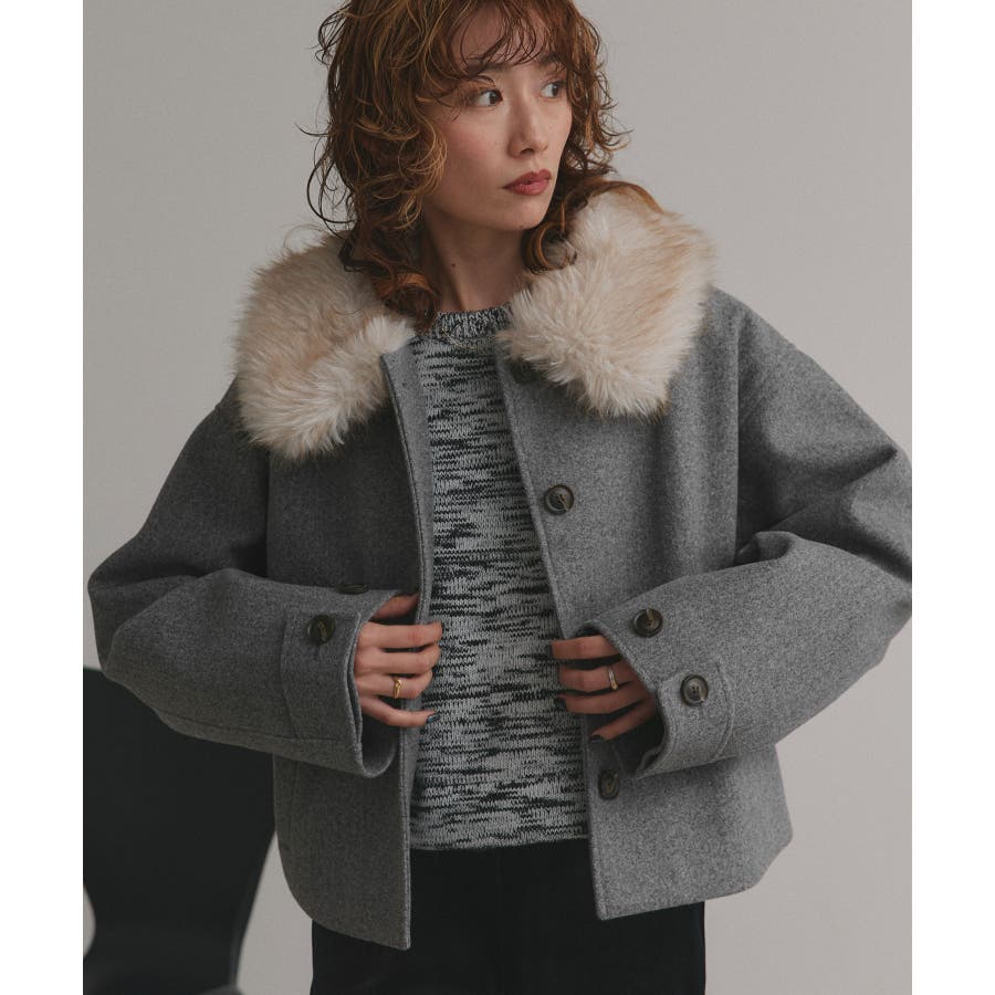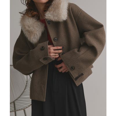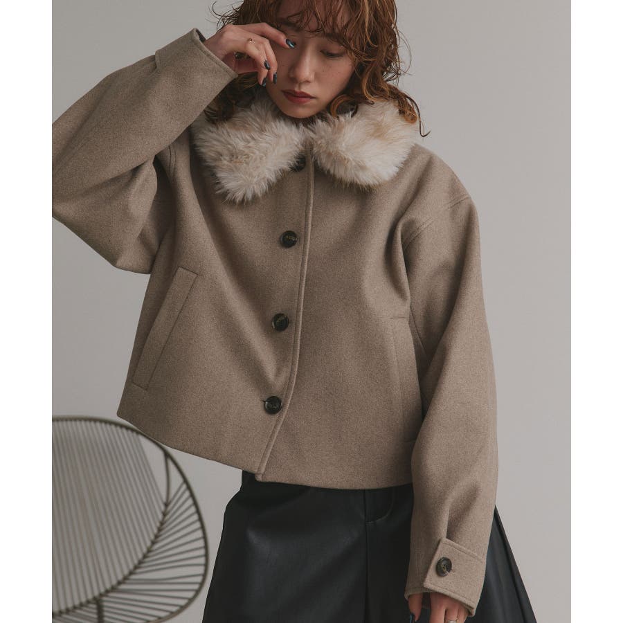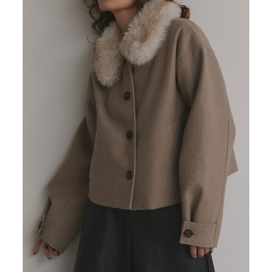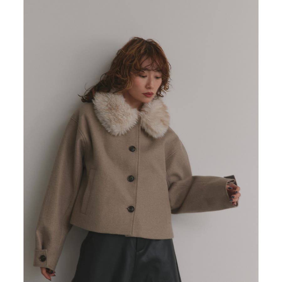 いつものトップスに羽織るだけでお洒落に決まるファーカラーフェイクウールジャケット。
