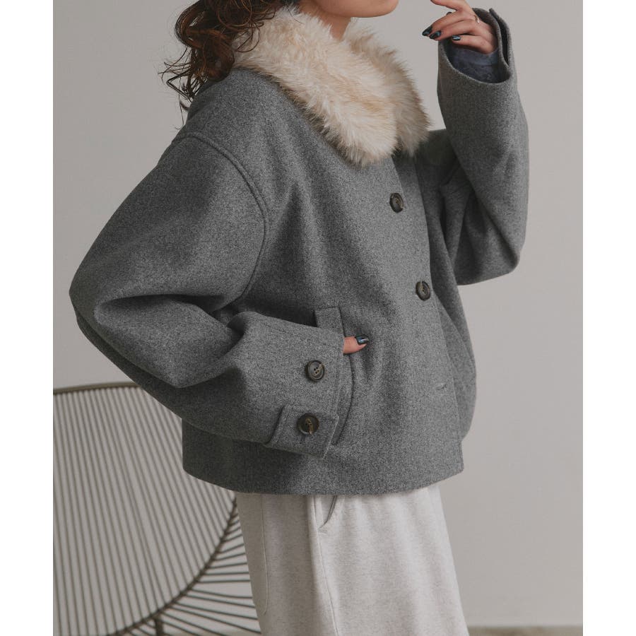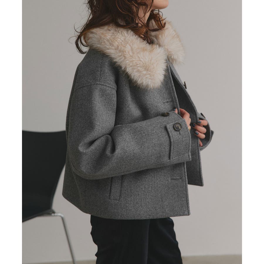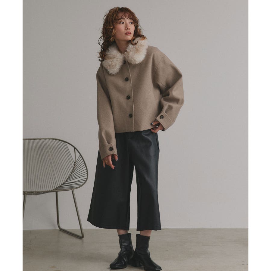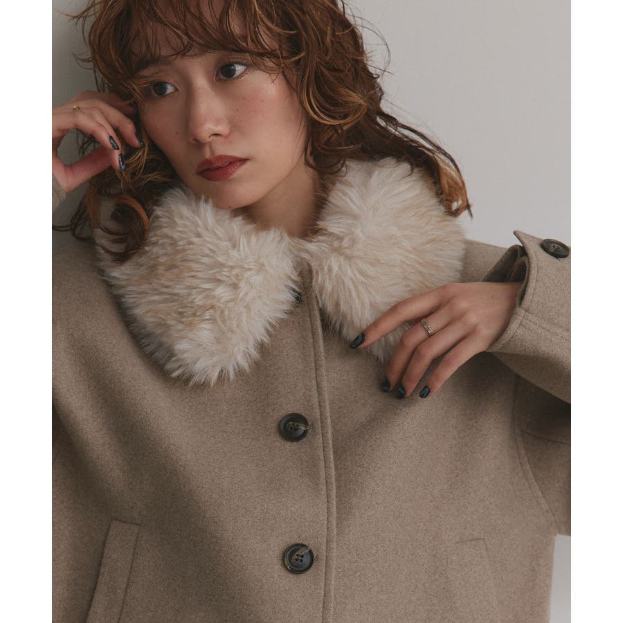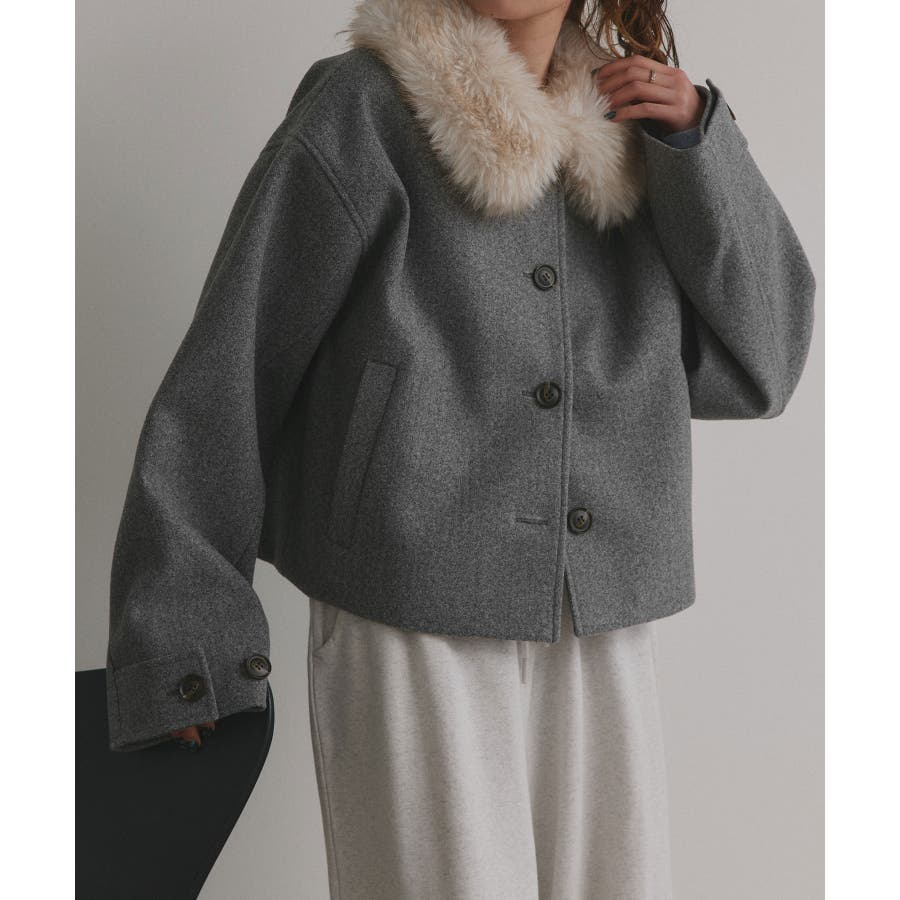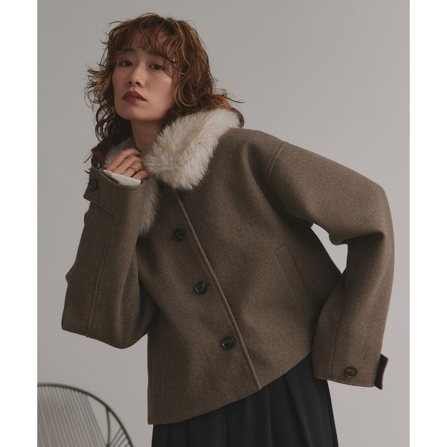 いつものトップスに羽織るだけでお洒落に決まるファーカラーフェイクウールジャケット。