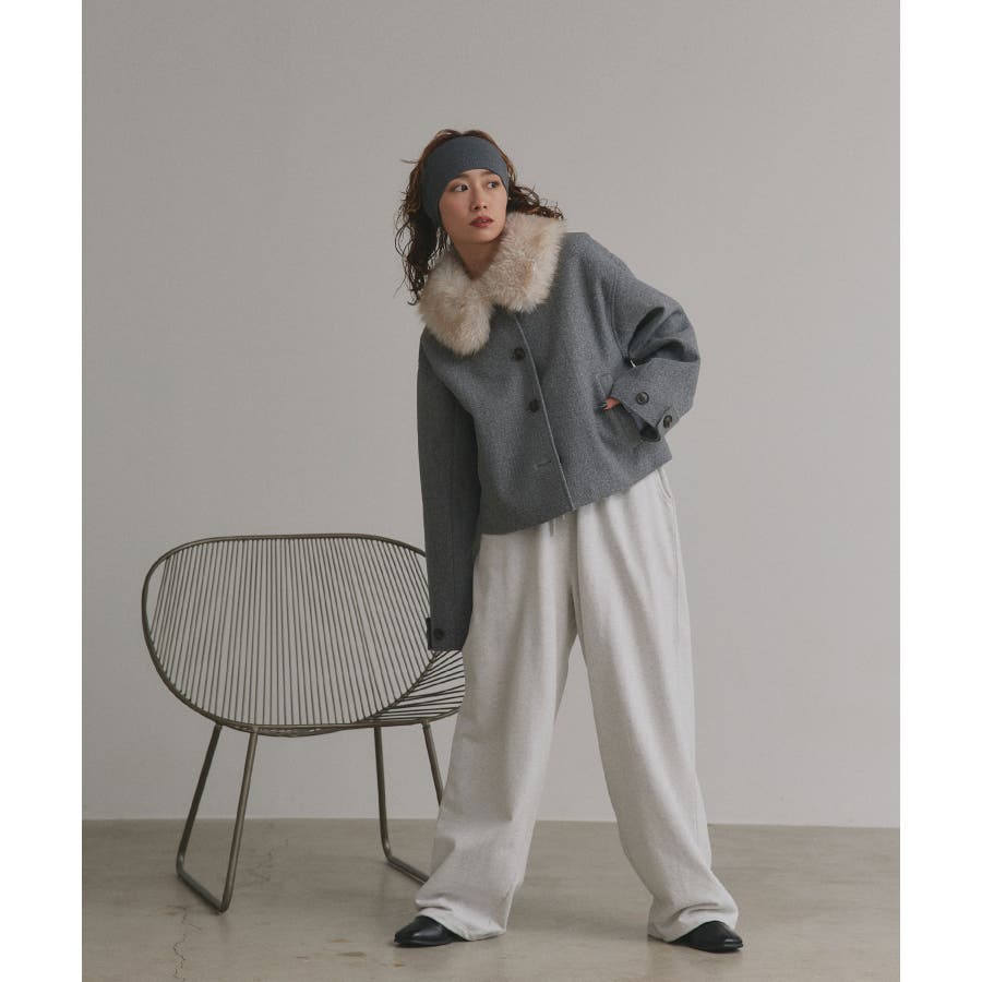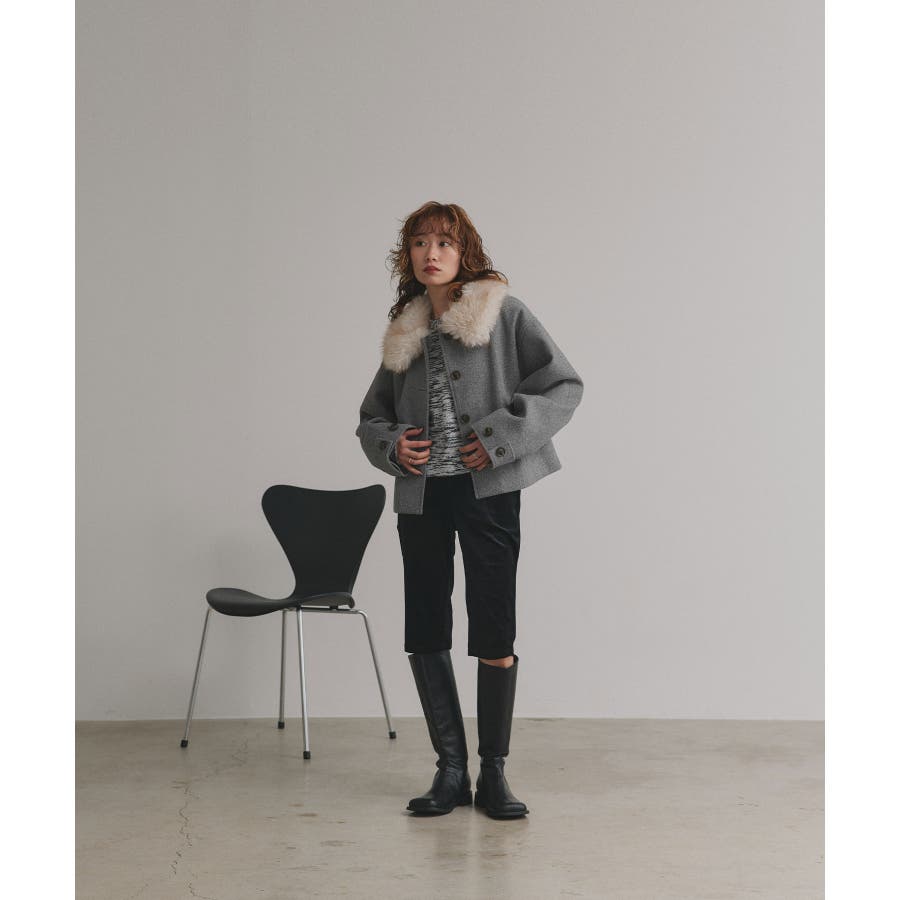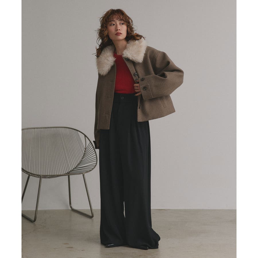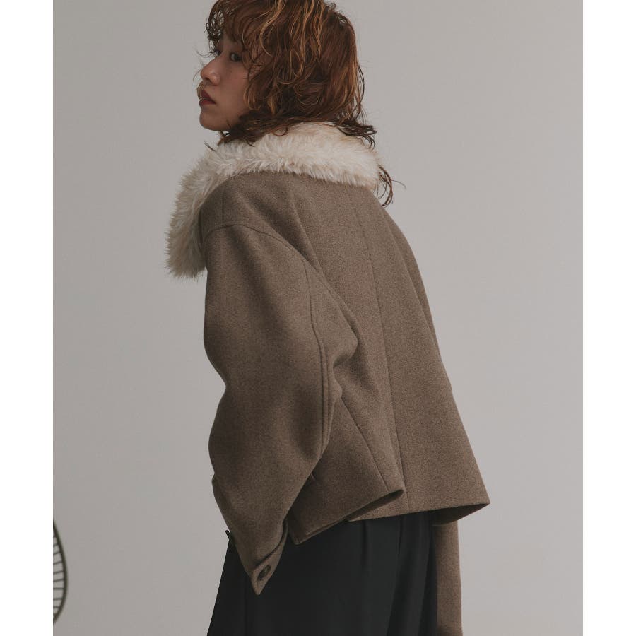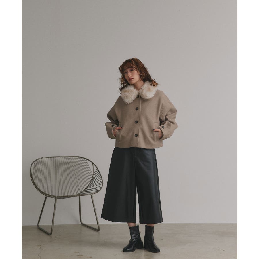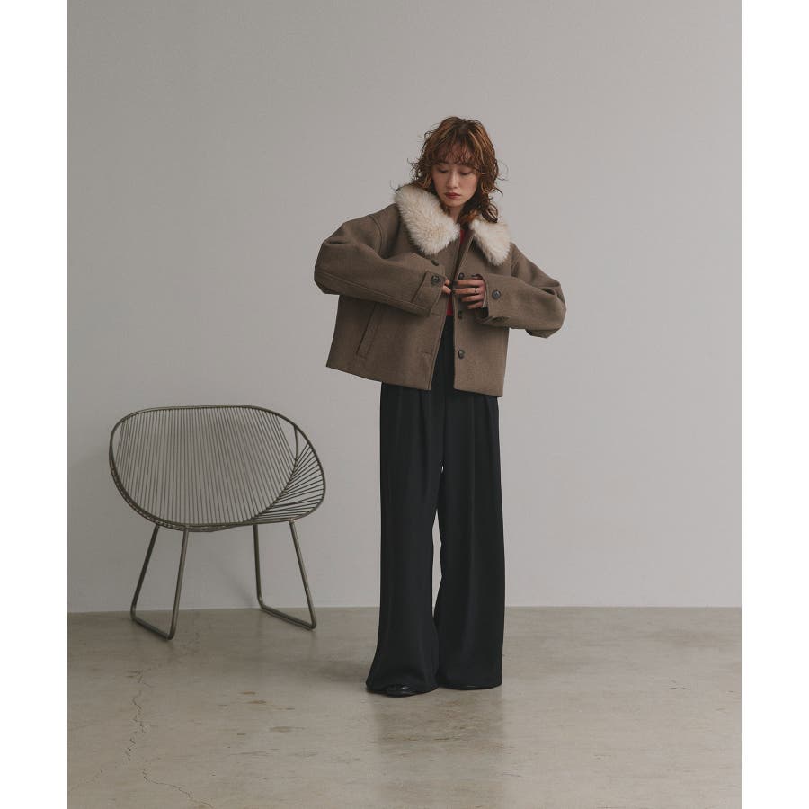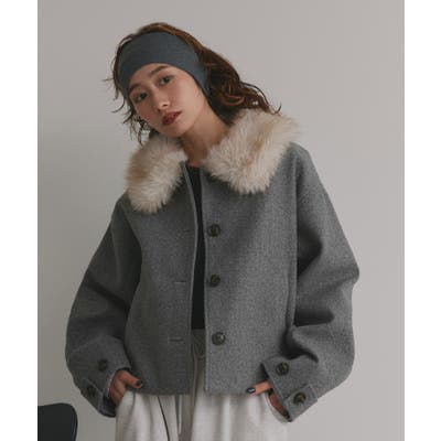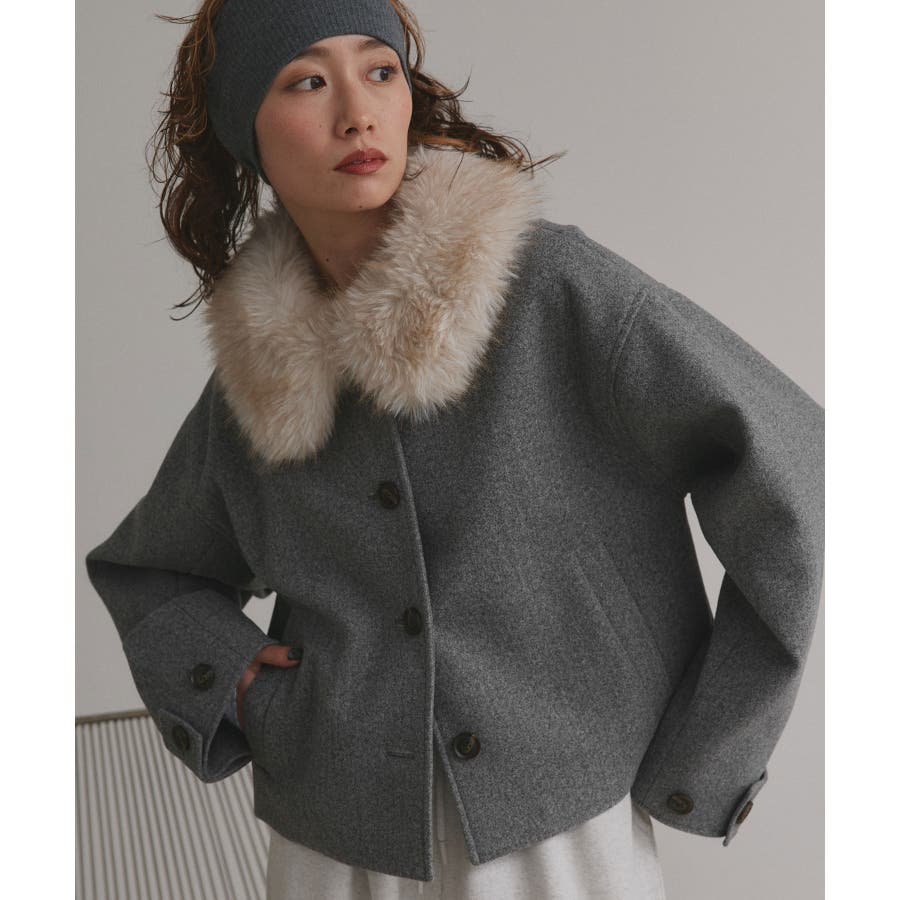 いつものトップスに羽織るだけでお洒落に決まるファーカラーフェイクウールジャケット。