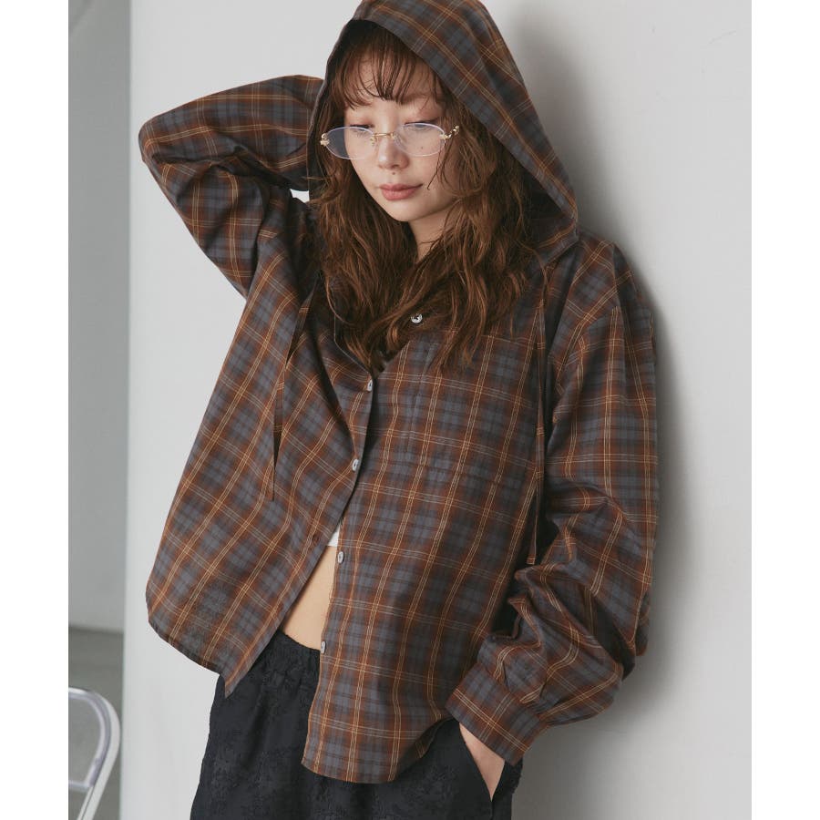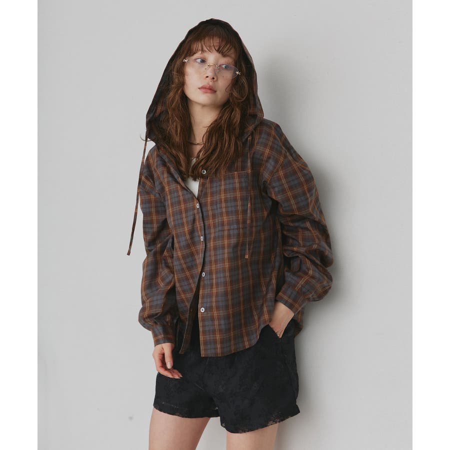1枚で着映えするフーディチェックシャツ