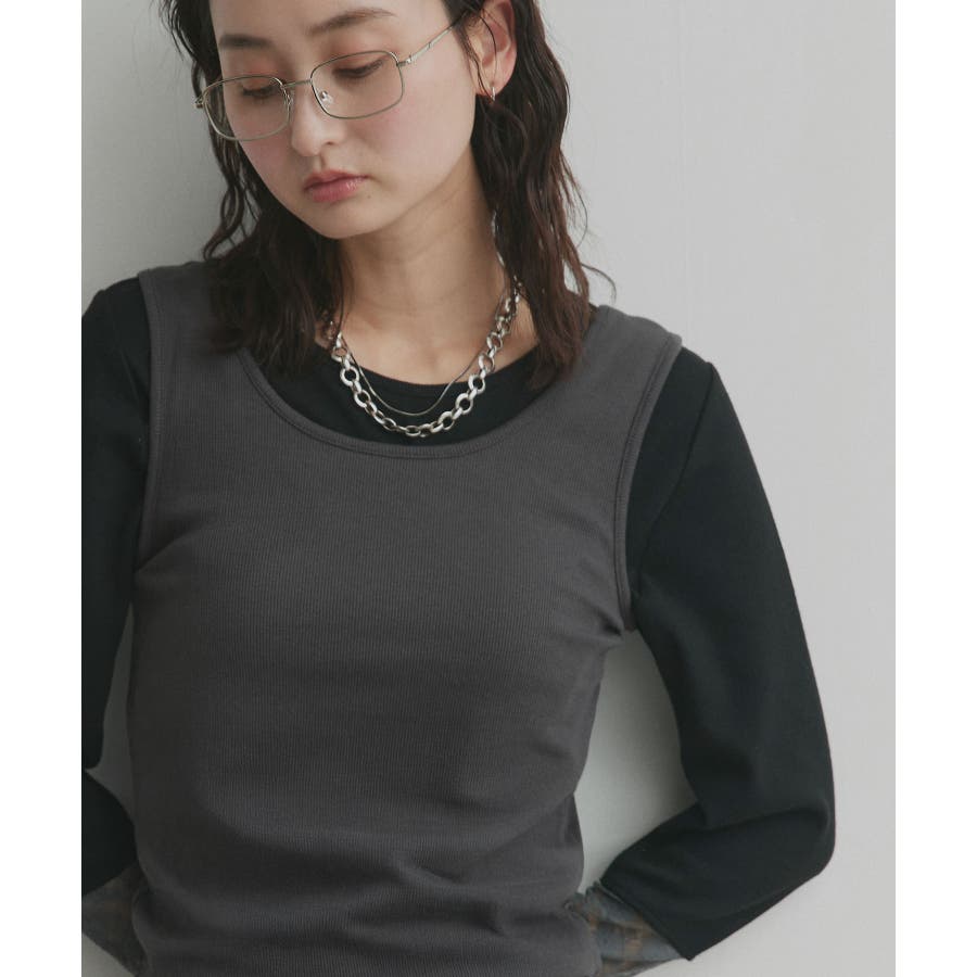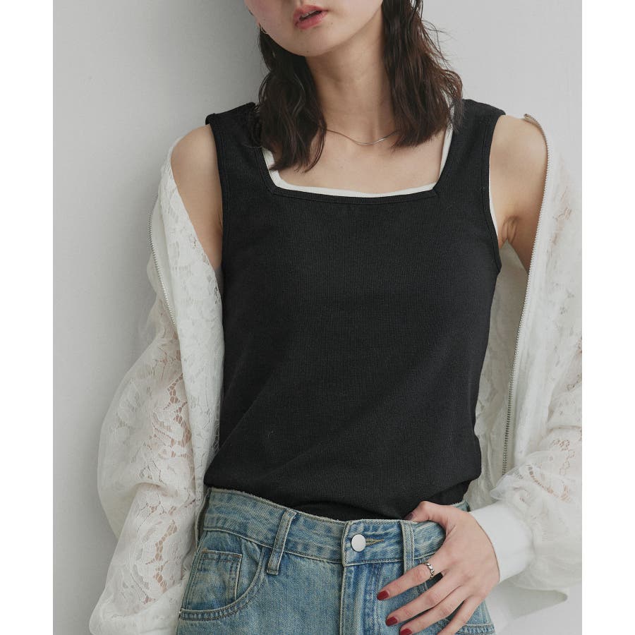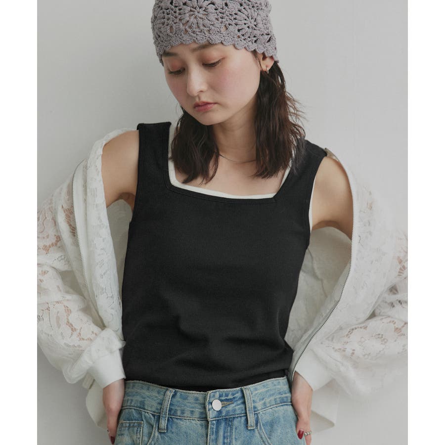 大人気のスクエアネックタンクと着回しやすさ抜群のクルーネックタンクが1枚になった優秀アイテム。
