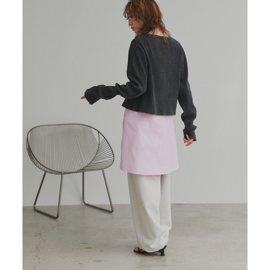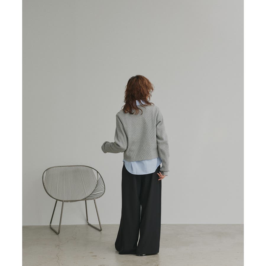ショート丈なのでプルオーバーとしてワイドパンツやスカートに合わせてカジュアルに仕上げたり、