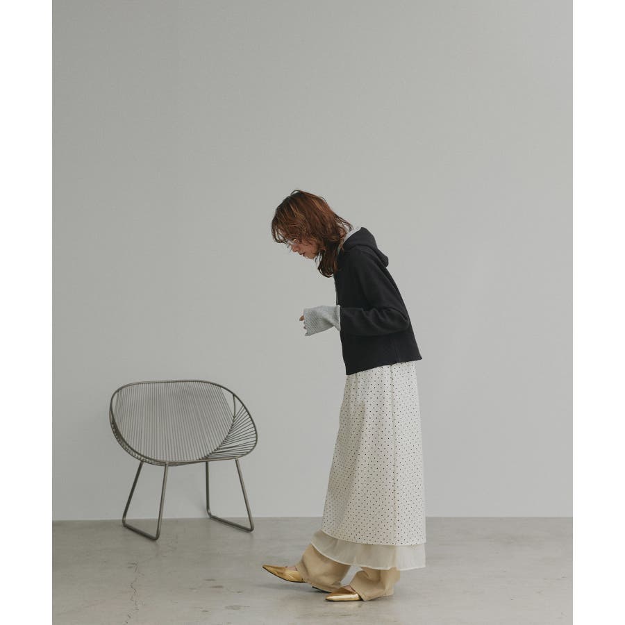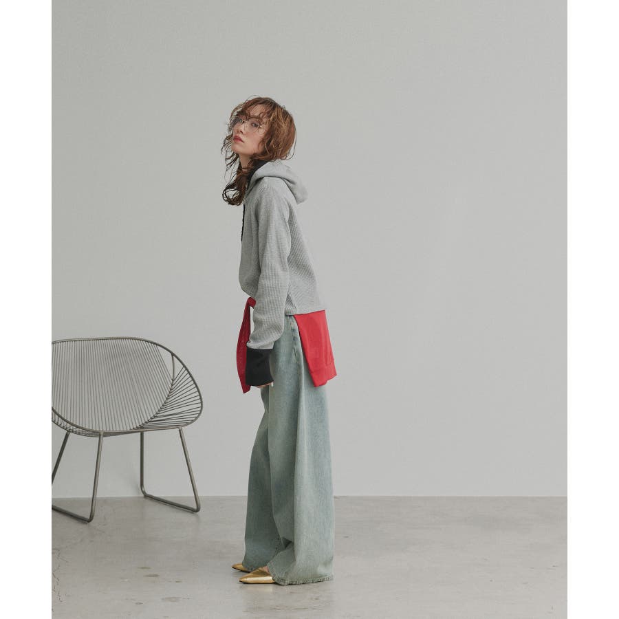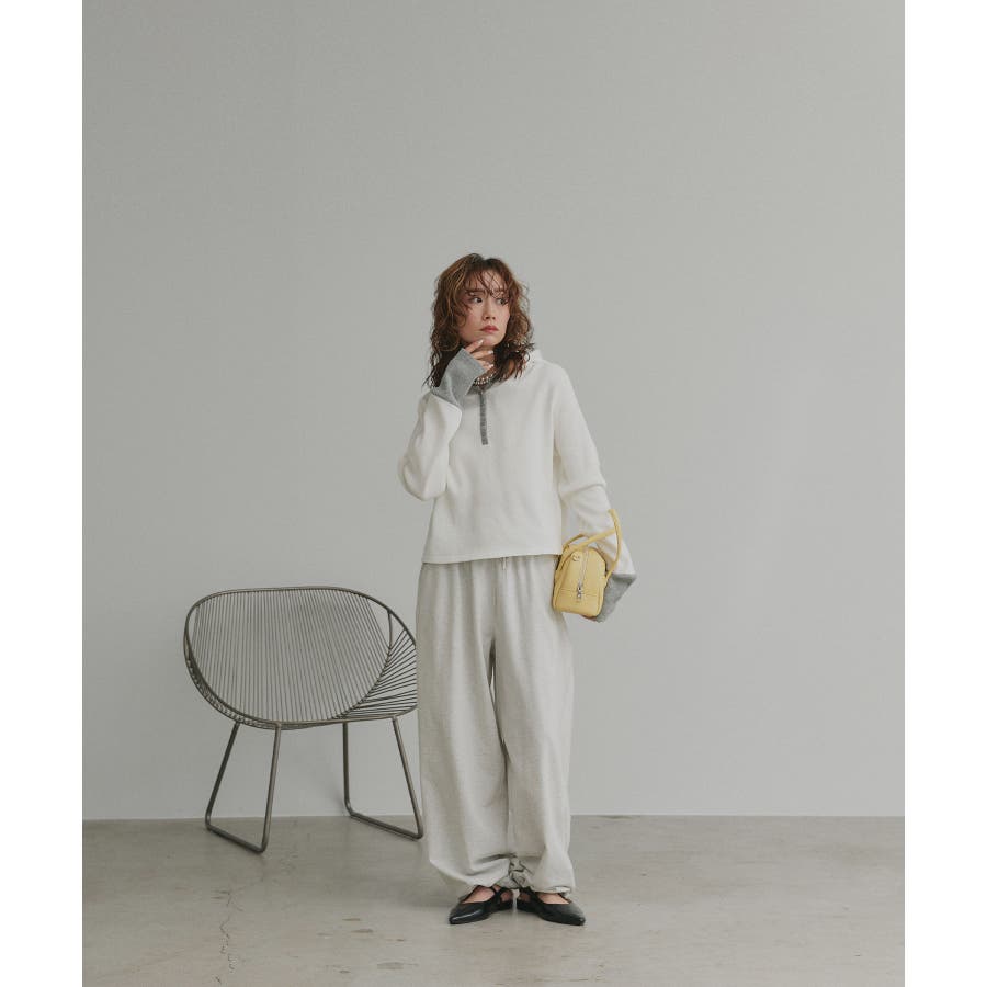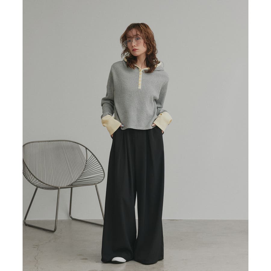 広めに取った袖口の配色がポイントになり、レイヤードスタイルもお洒落に仕上がります。