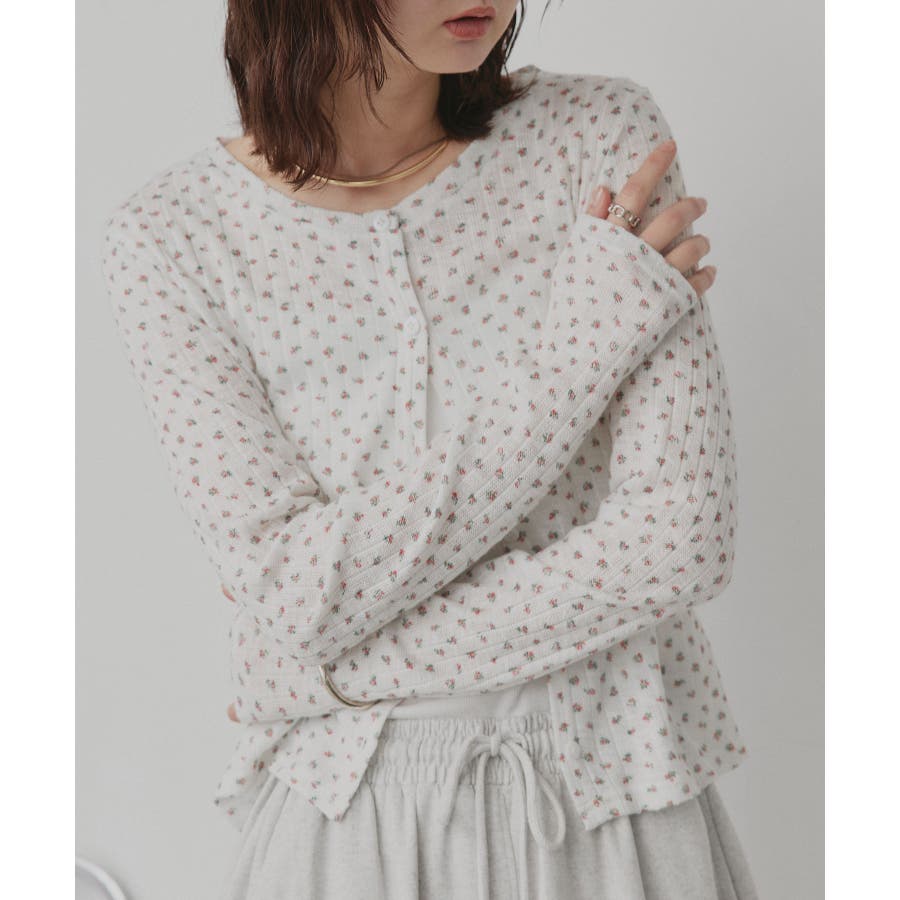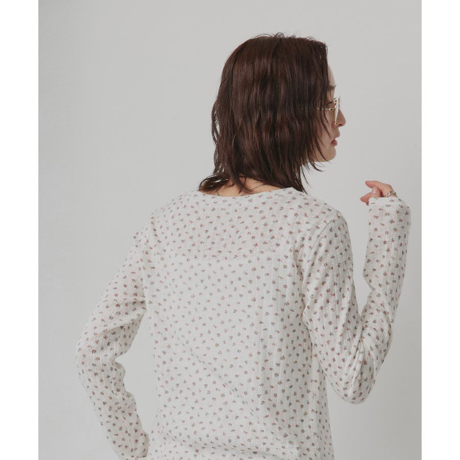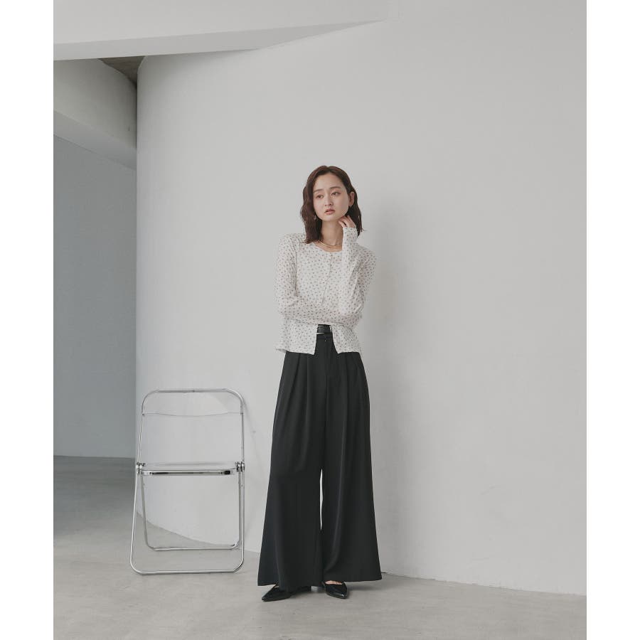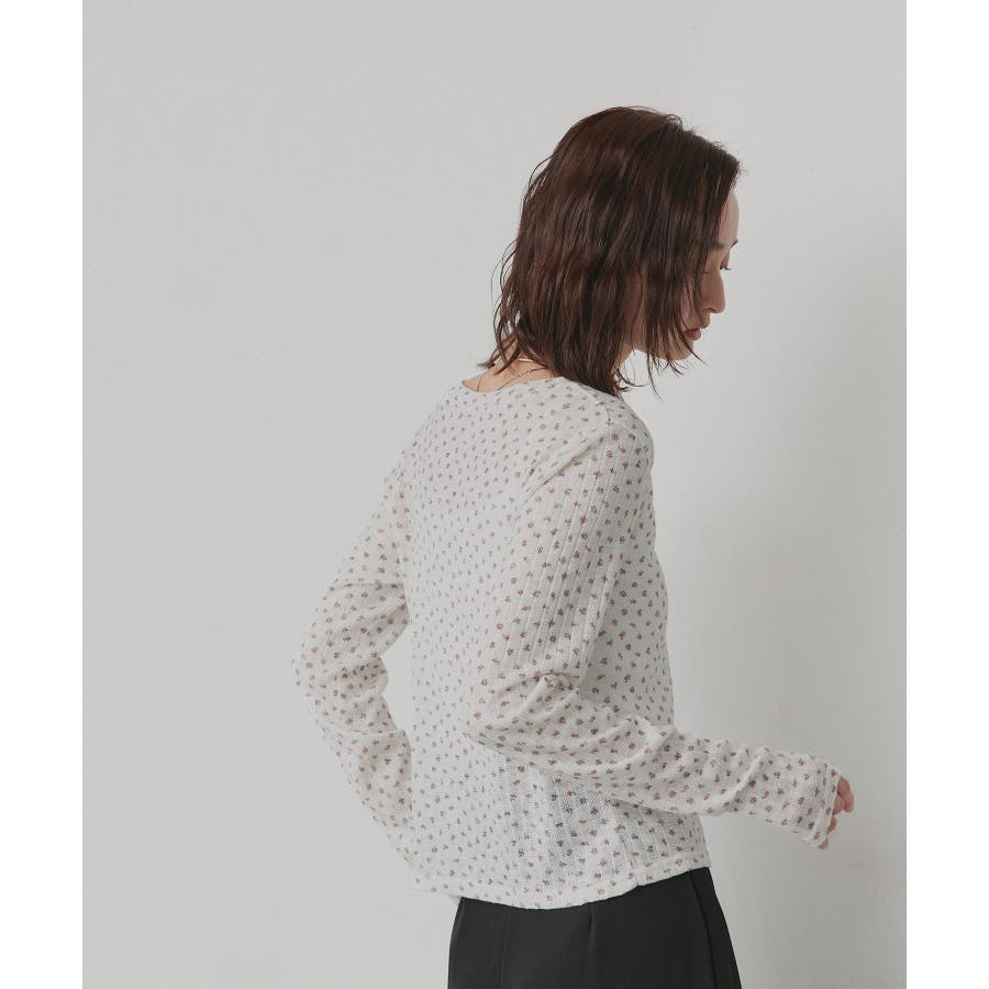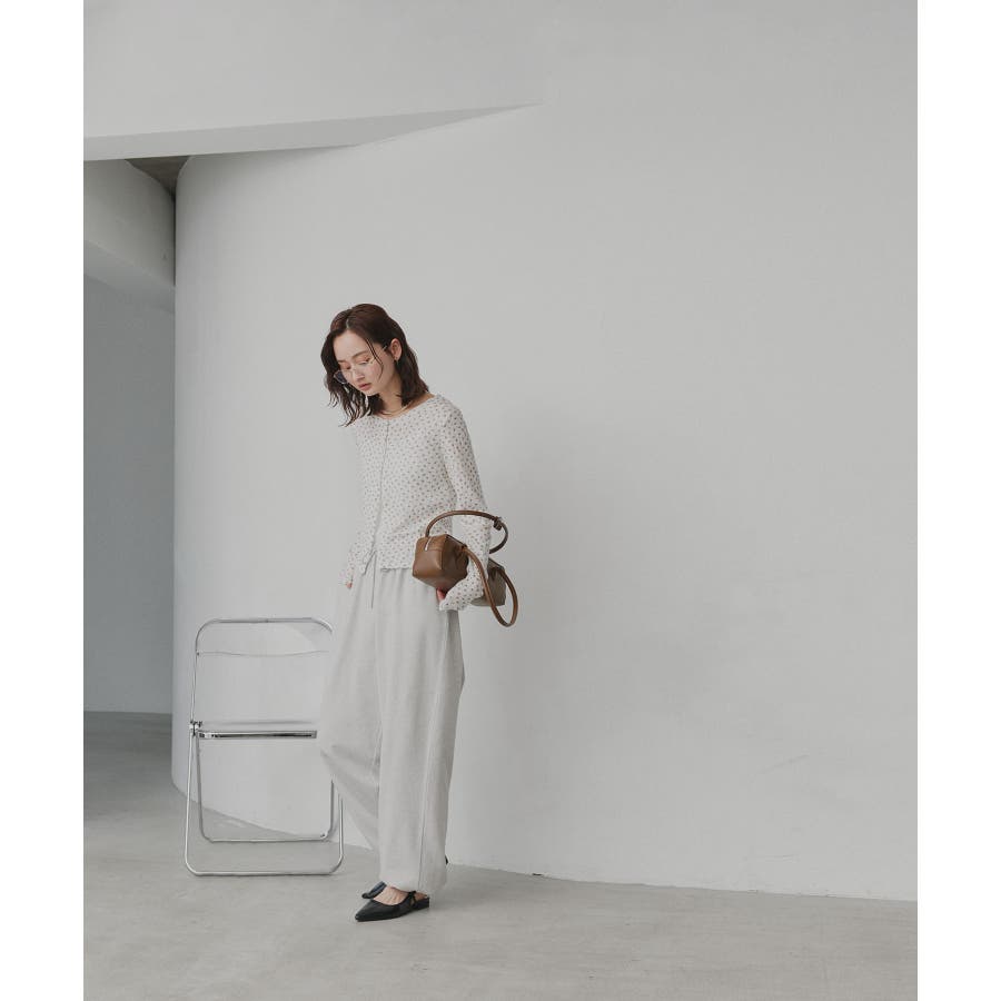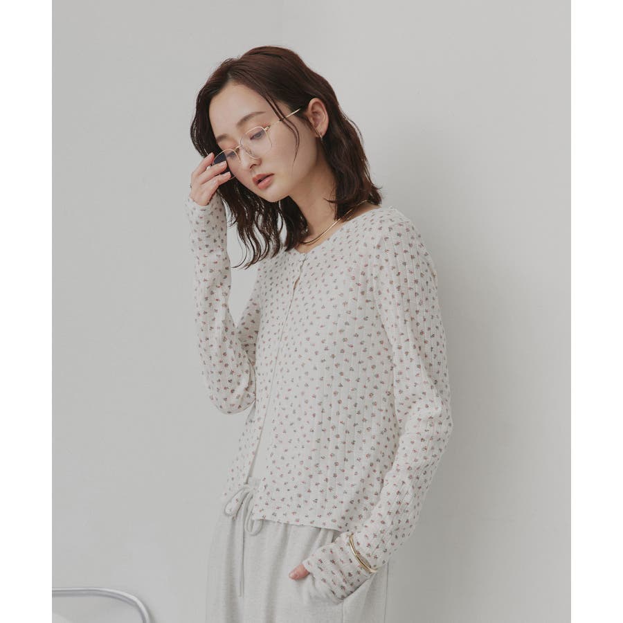 カーディガンは、春夏らしい小花柄の透かし編みデザインがポイント。