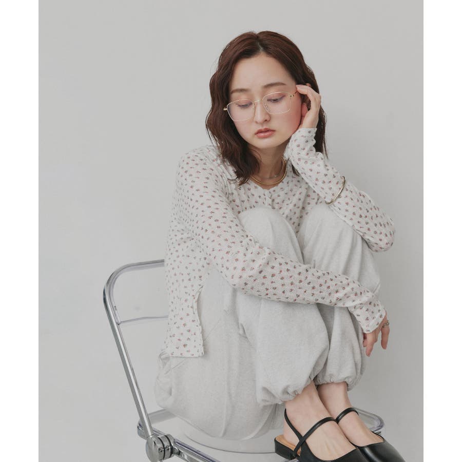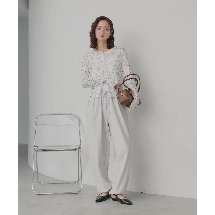 デニムやワイドパンツ、カーゴパンツと合わせれば甘さを少し抑えたカジュアルスタイルに。